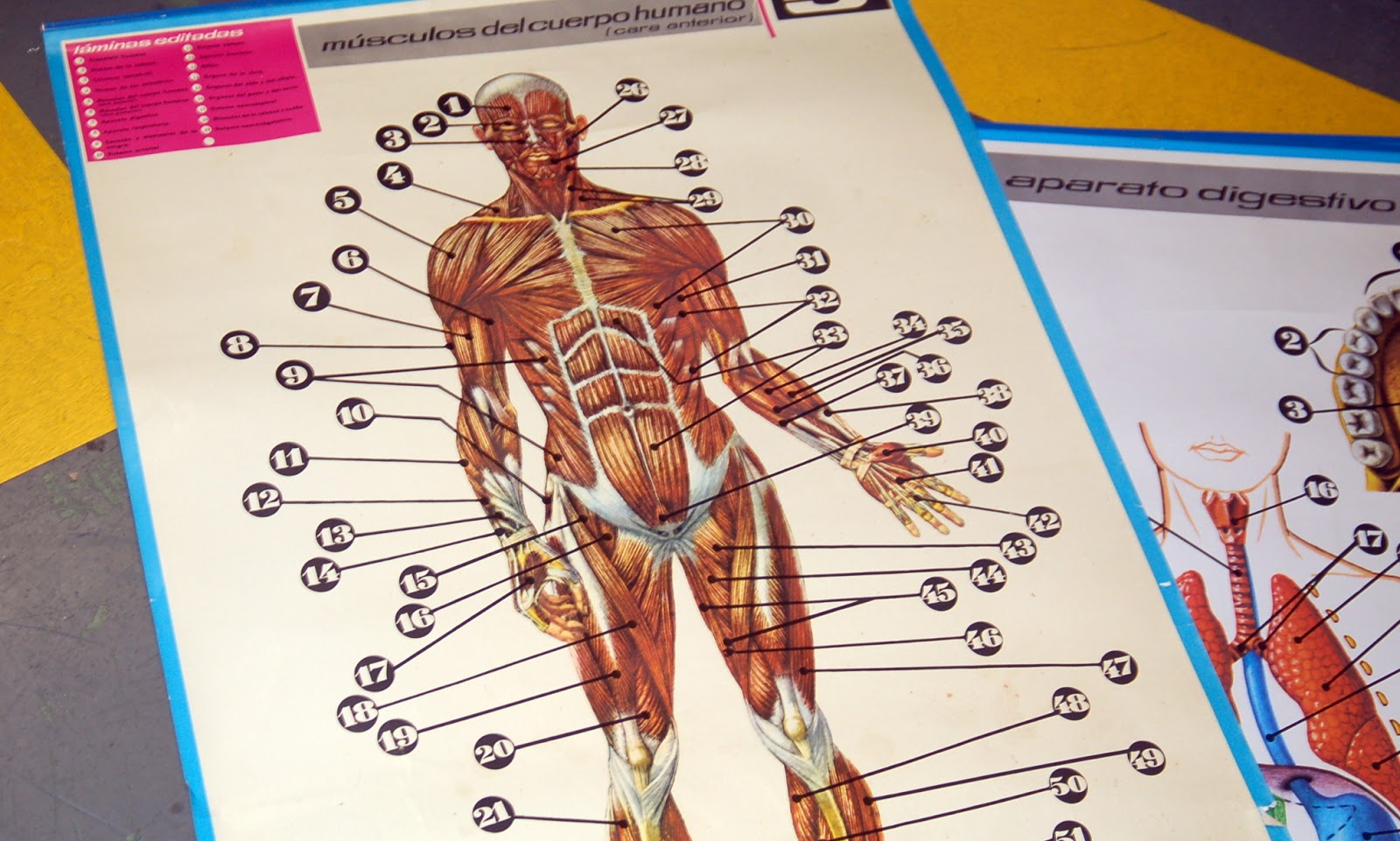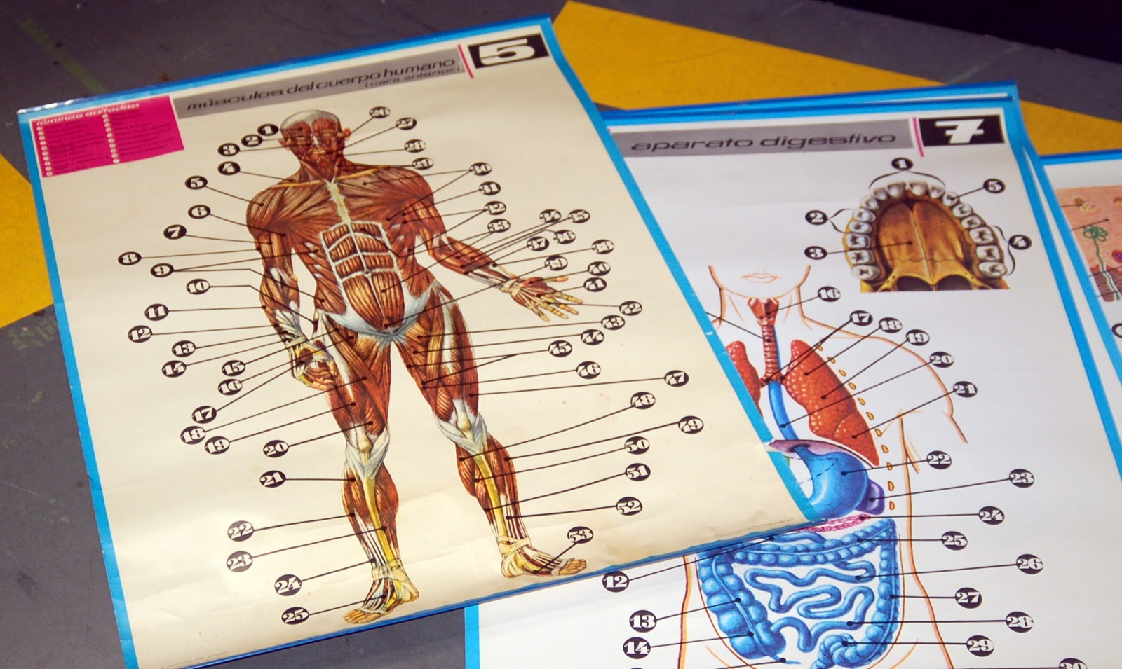 carteles de anatomia de los años 70, gran formato y muy buscados