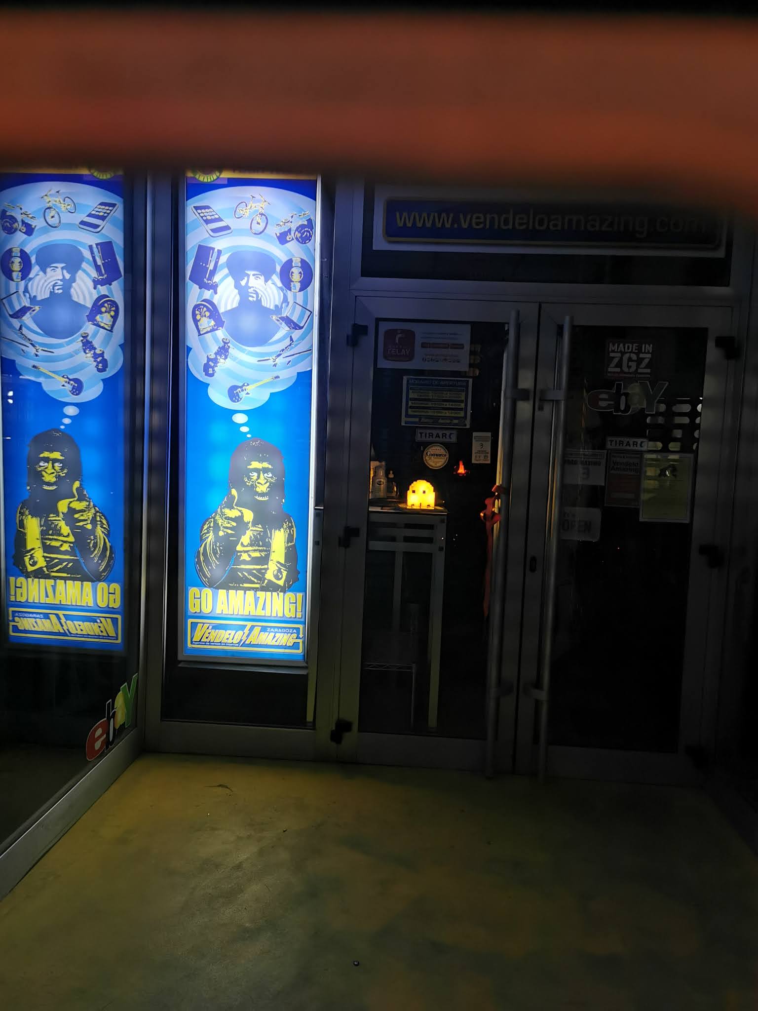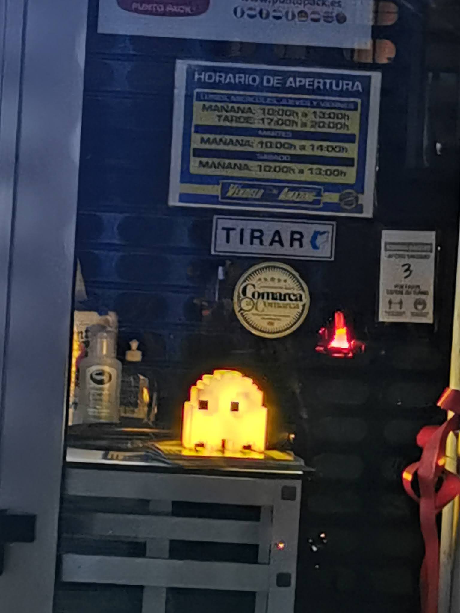 La tienda, cuando esta cerrada, PACMAN la vigila
