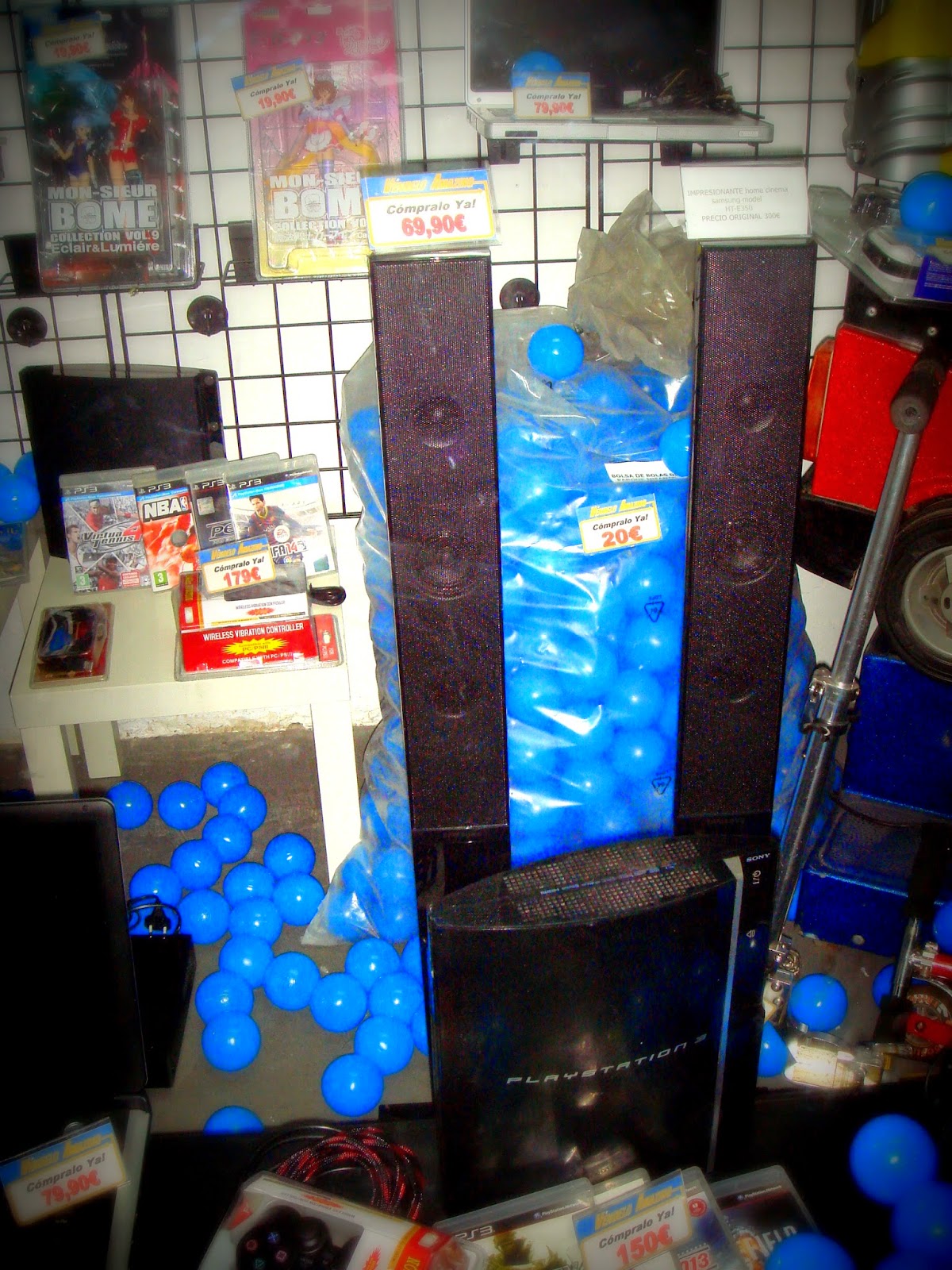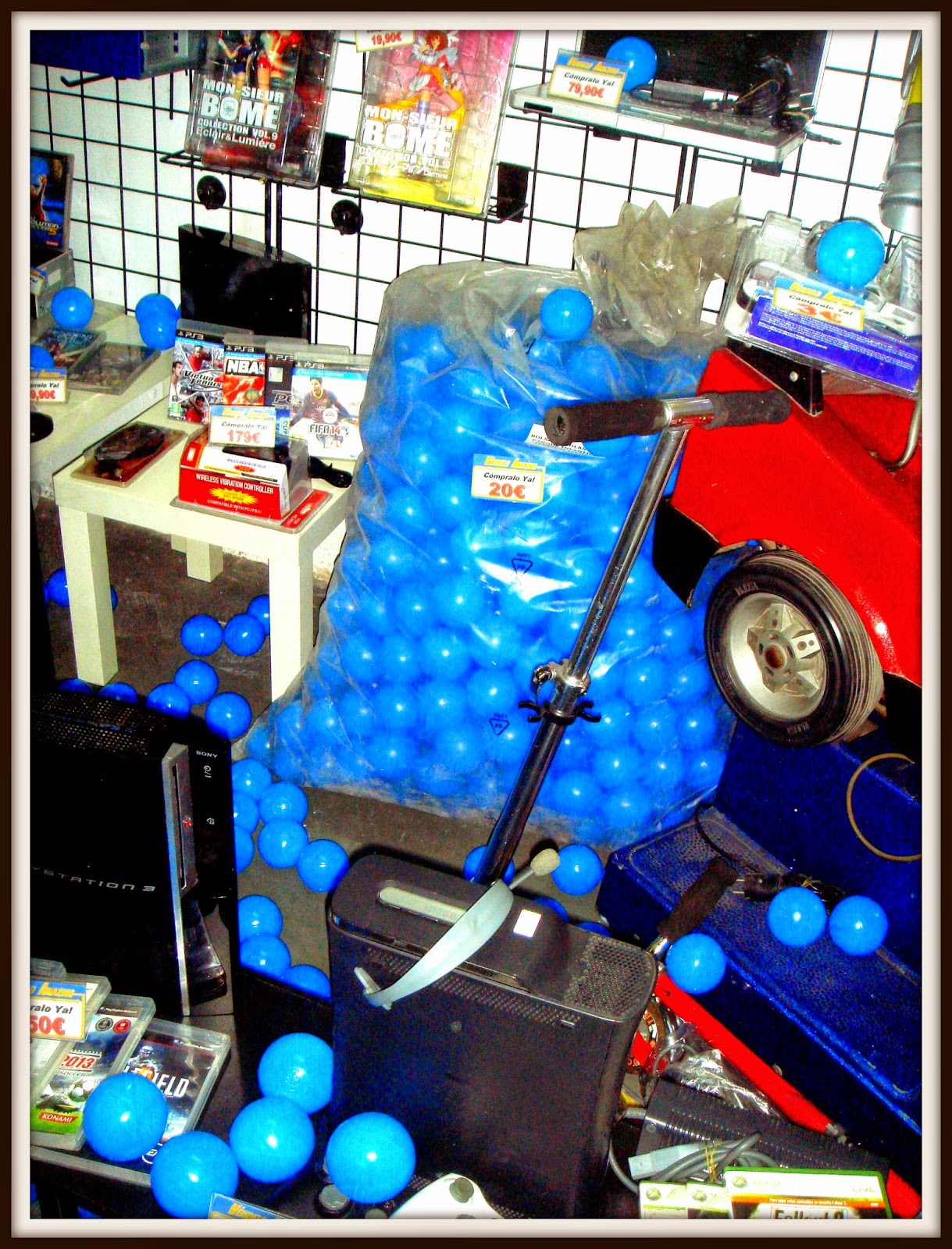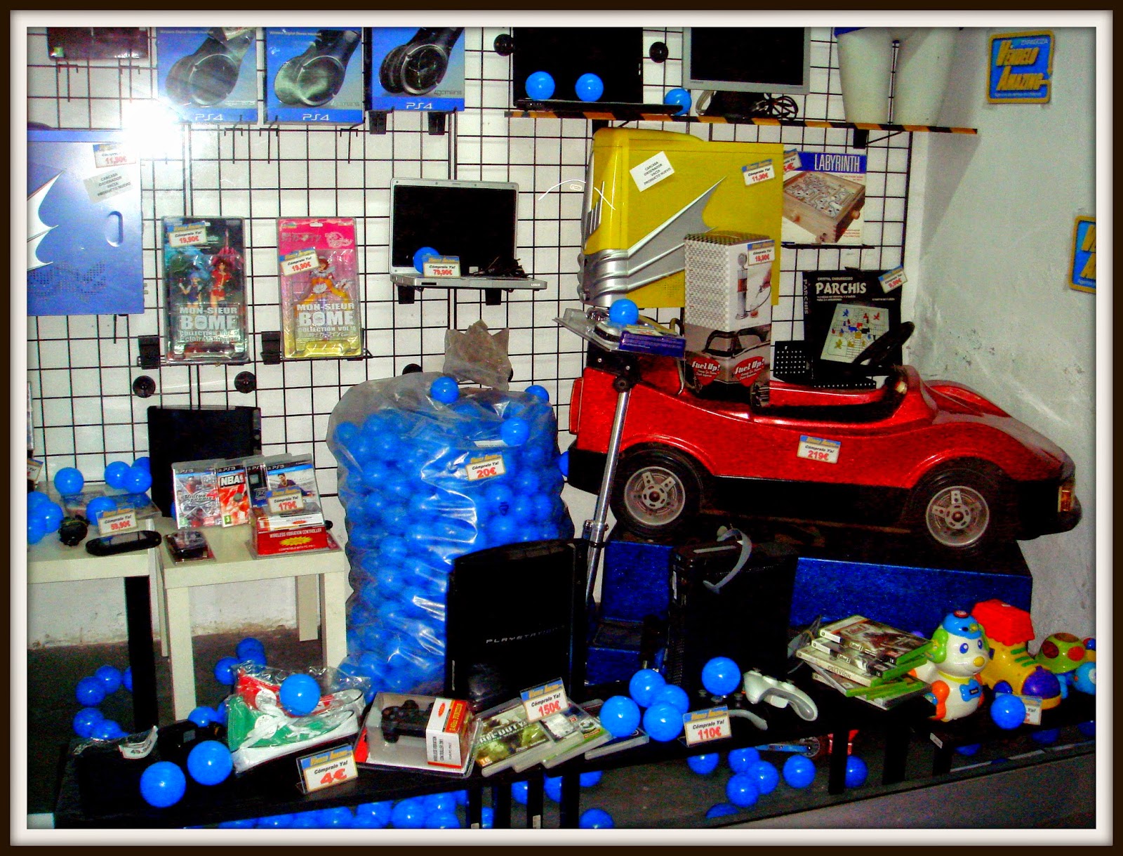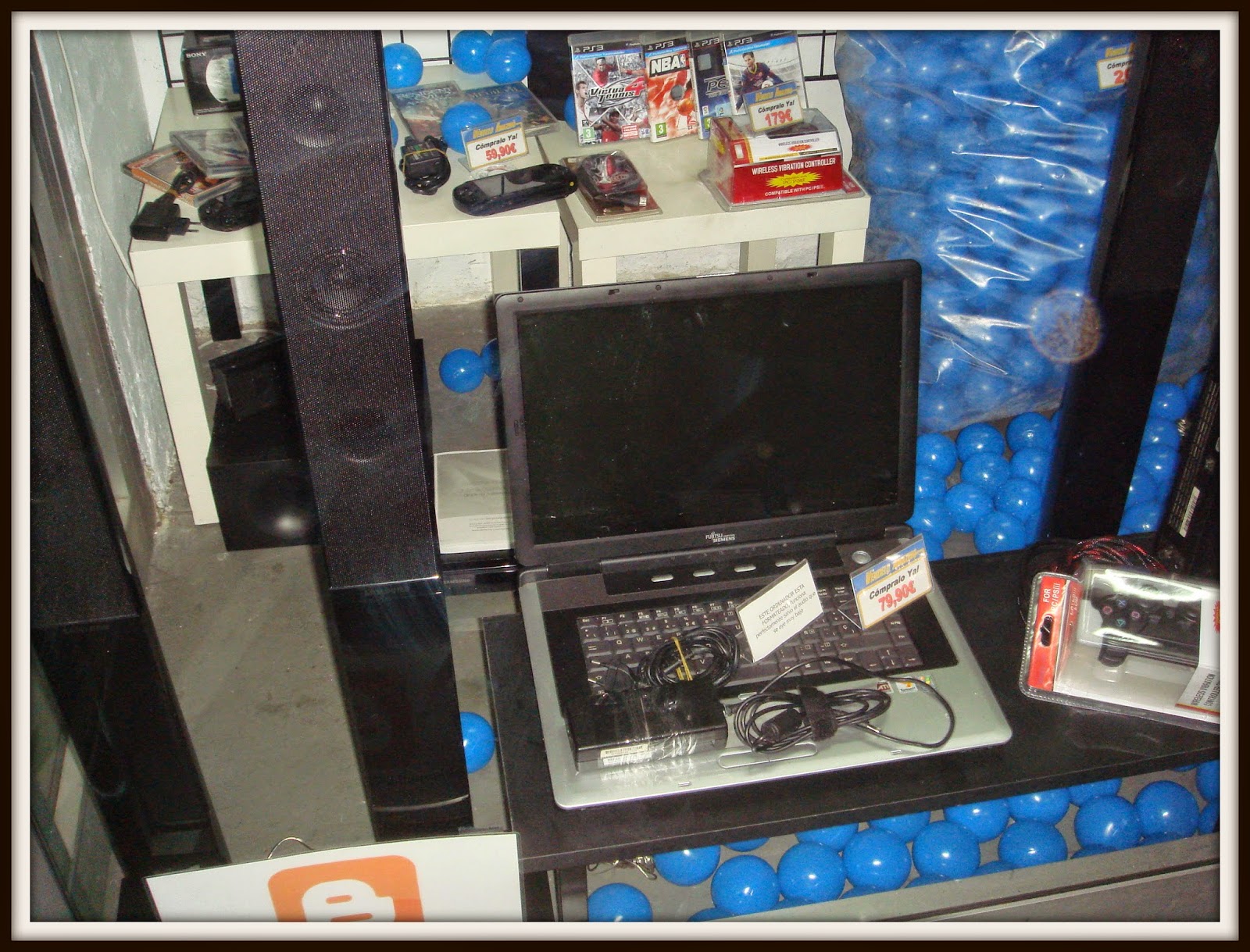 Nuevo mes, finalizando, y nuevo escaparate….tecnología, playstation 3, portatiles y..cochecito leré que funciona!!!y..bolsa con bolas de parque infantil!!!! y a 15€ cada bolsa con mas de 300 bolas homologadas, no me lo puedo creer!!!