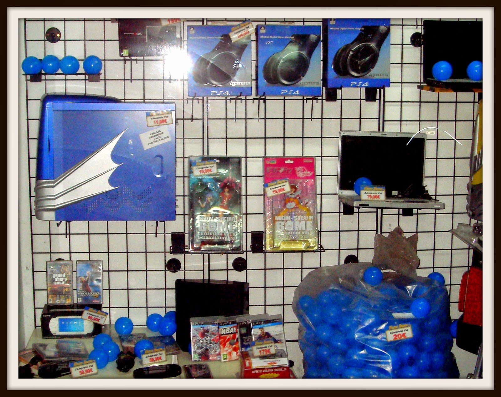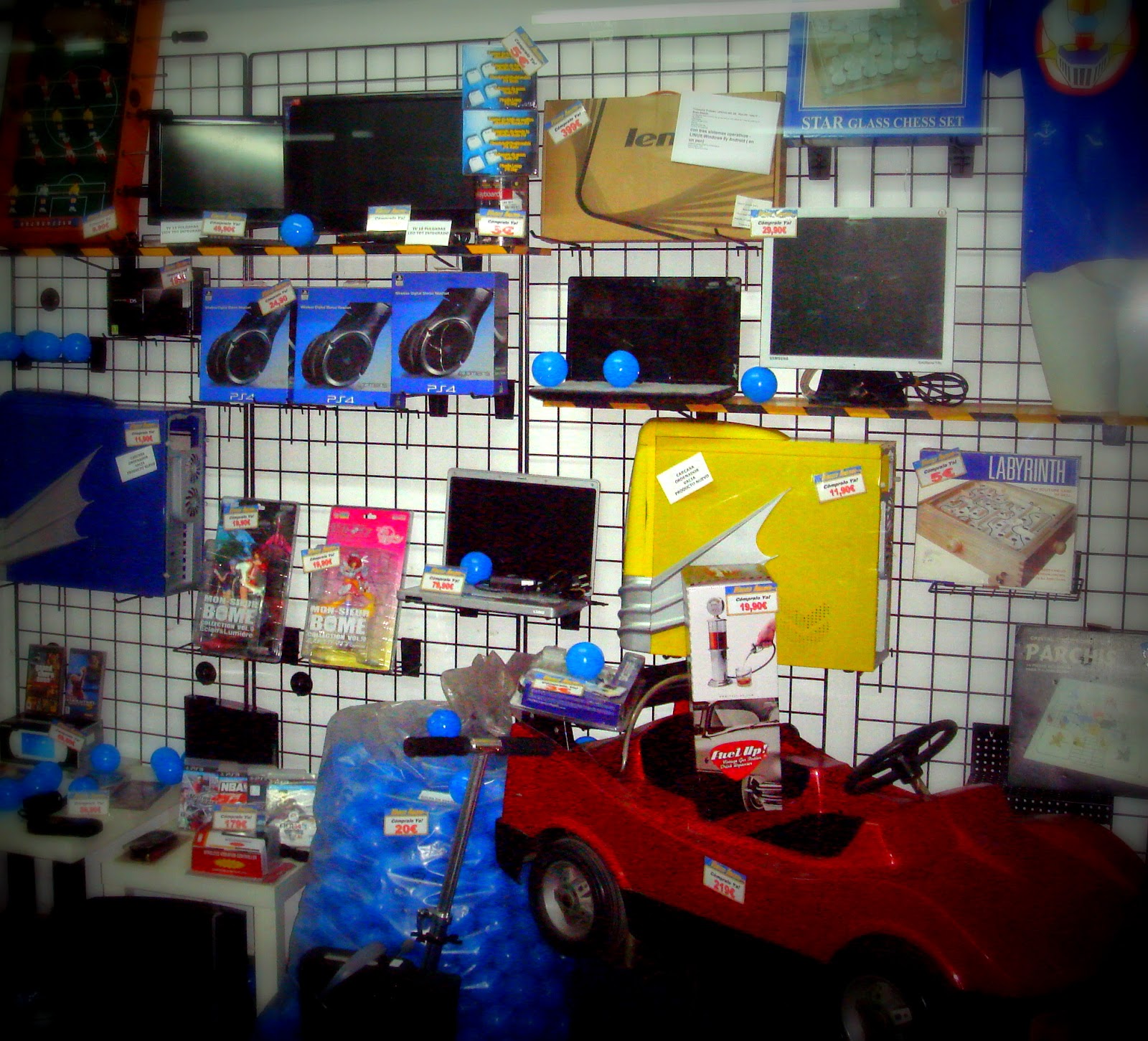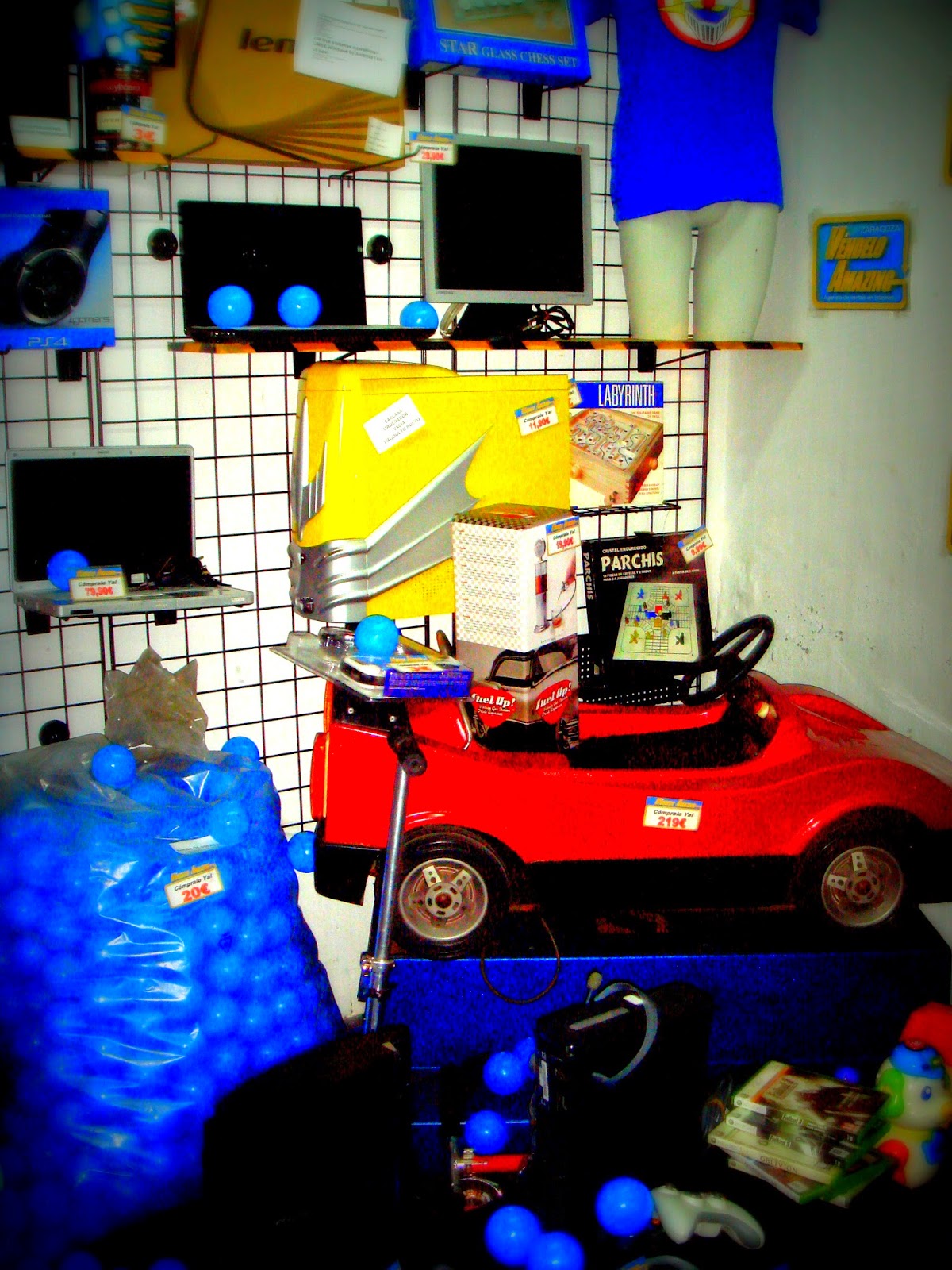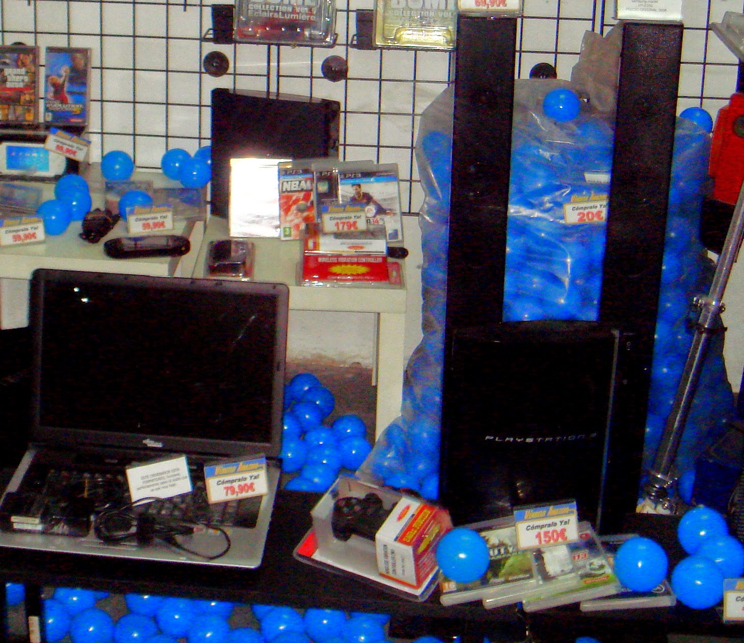 Nuevo mes, finalizando, y nuevo escaparate….tecnología, playstation 3, portatiles y..cochecito leré que funciona!!!y..bolsa con bolas de parque infantil!!!! y a 15€ cada bolsa con mas de 300 bolas homologadas, no me lo puedo creer!!!