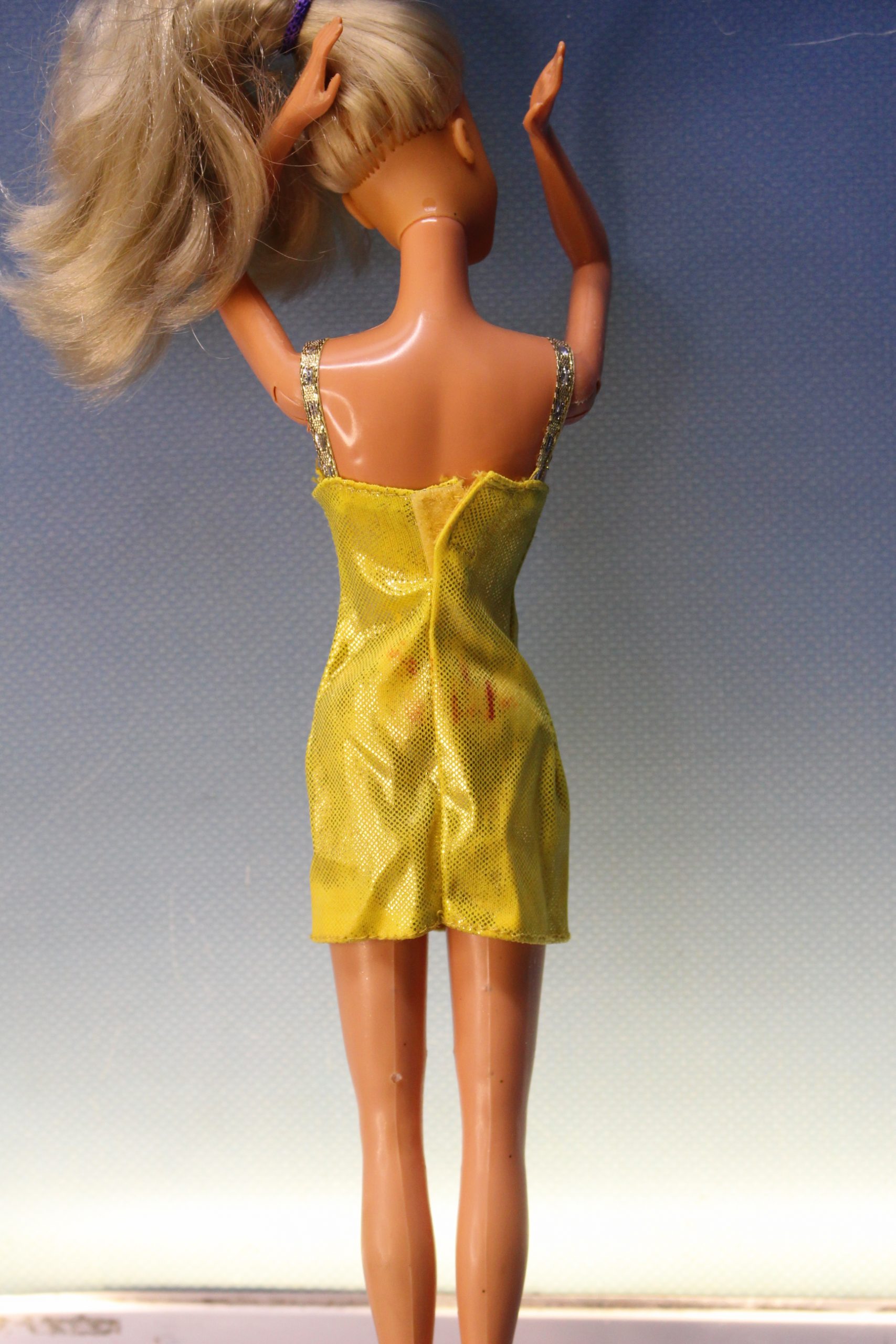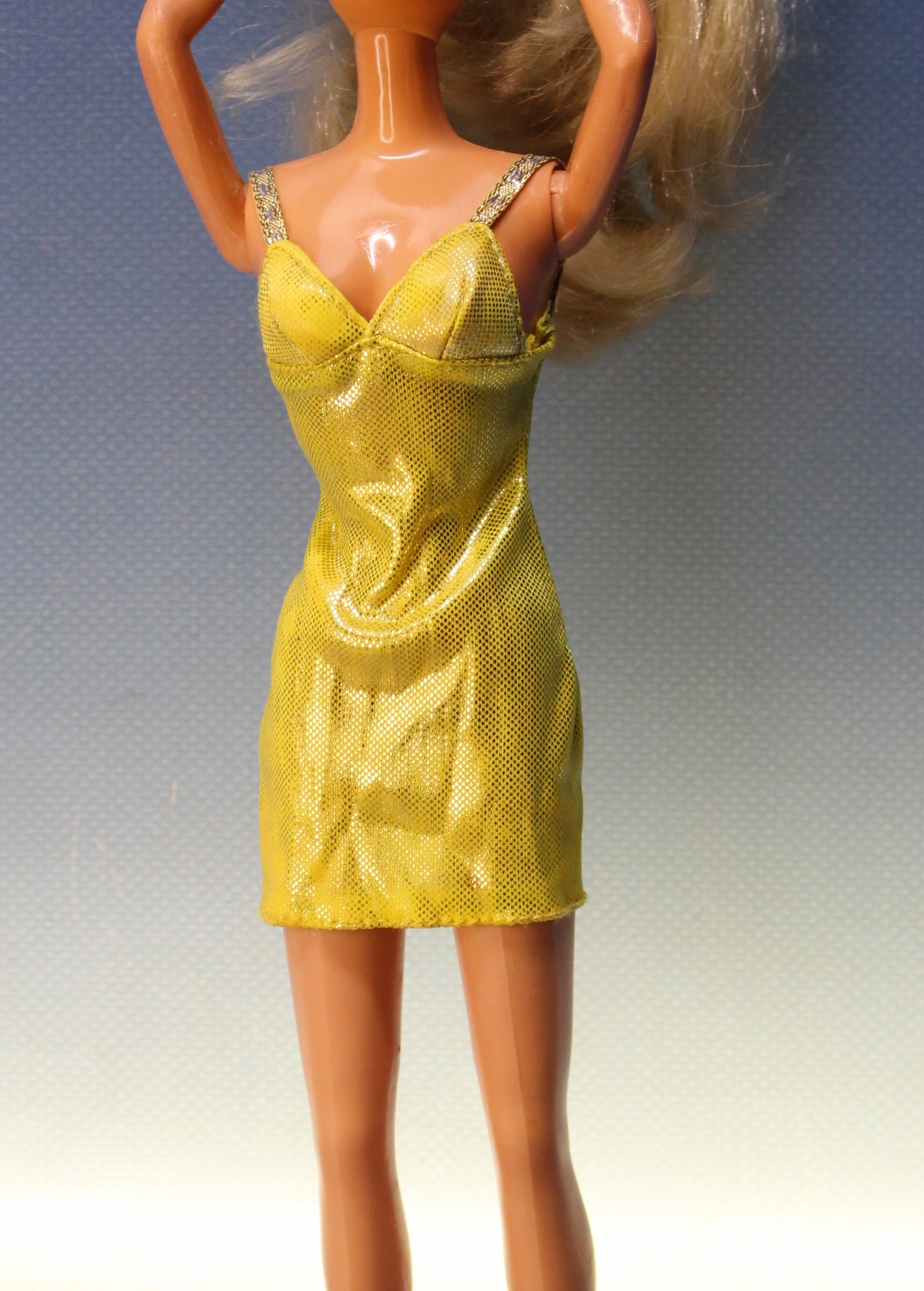 09. Vestido dorado tipo Barbie. Sin etiqueta.