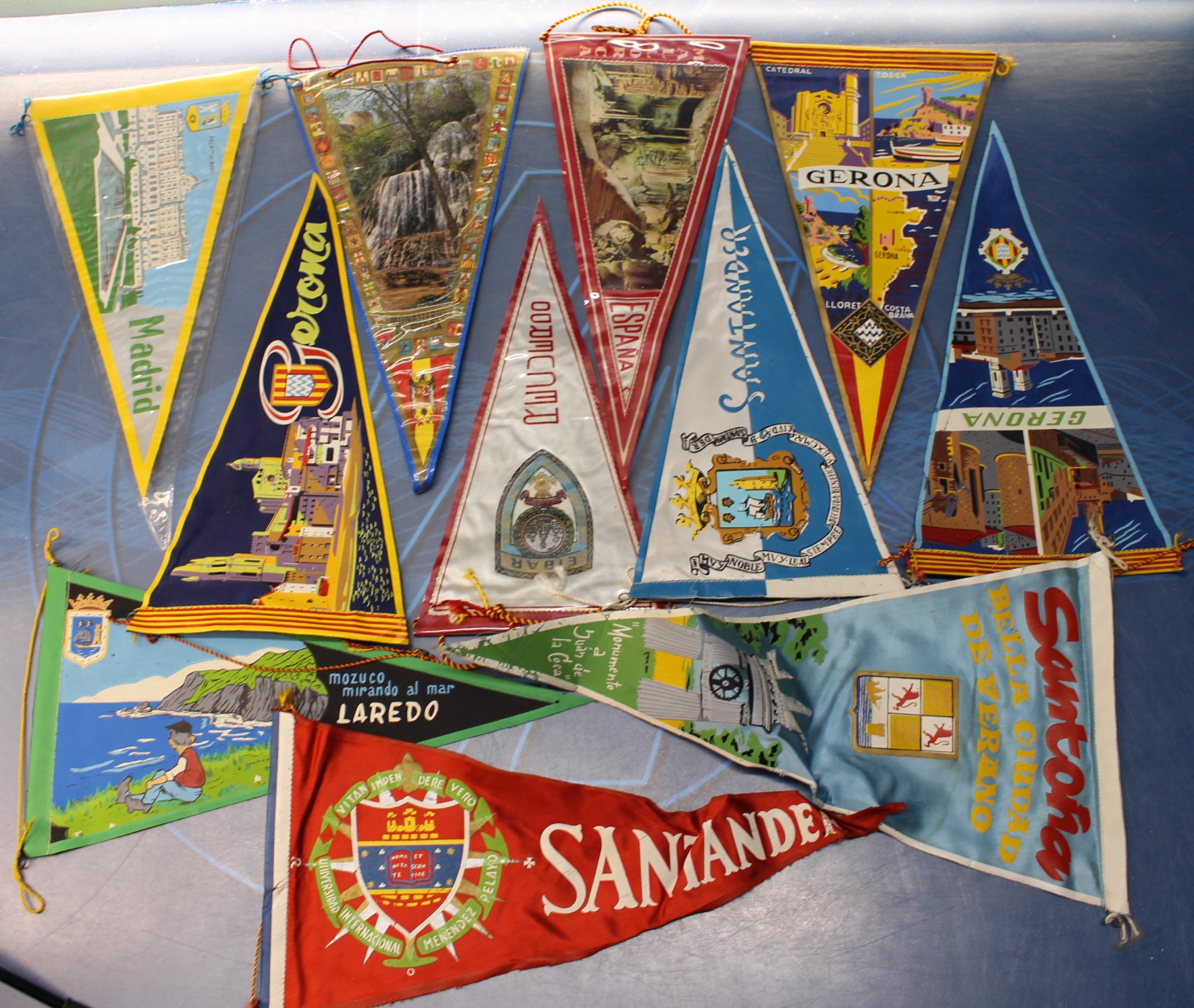 11 banderines recuerdo de ciudades de España, años 60.