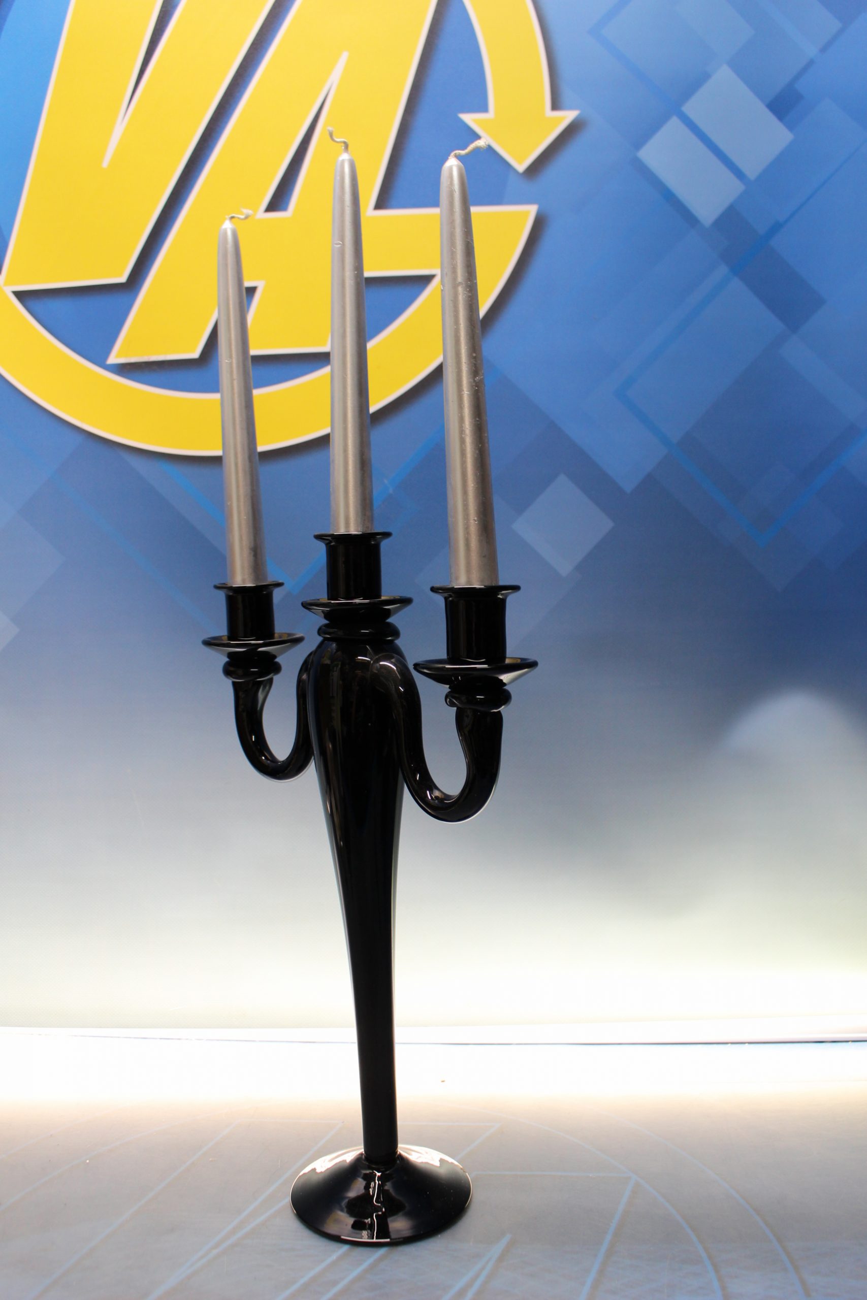 Candelabro de cristal negro 3 brazos.