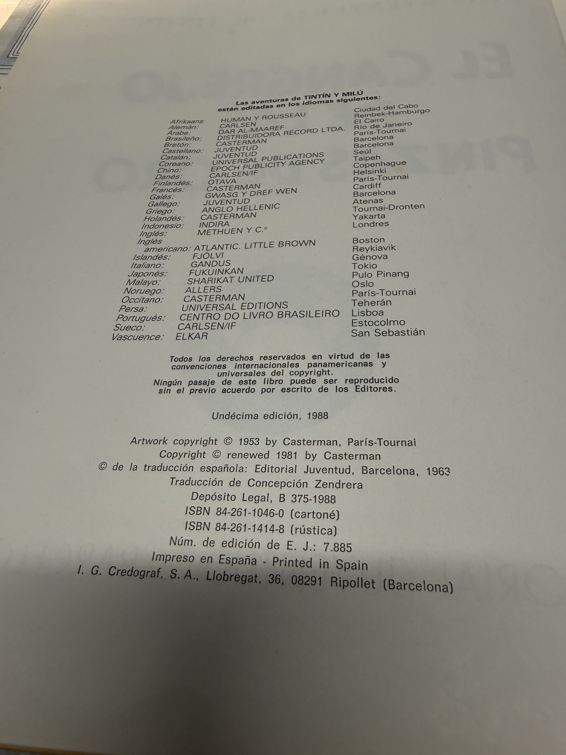 Las Aventuras de Tintí. El Cangrejo de las Pinzas de Oro. Hergé. Ed. Juventud, 1988.