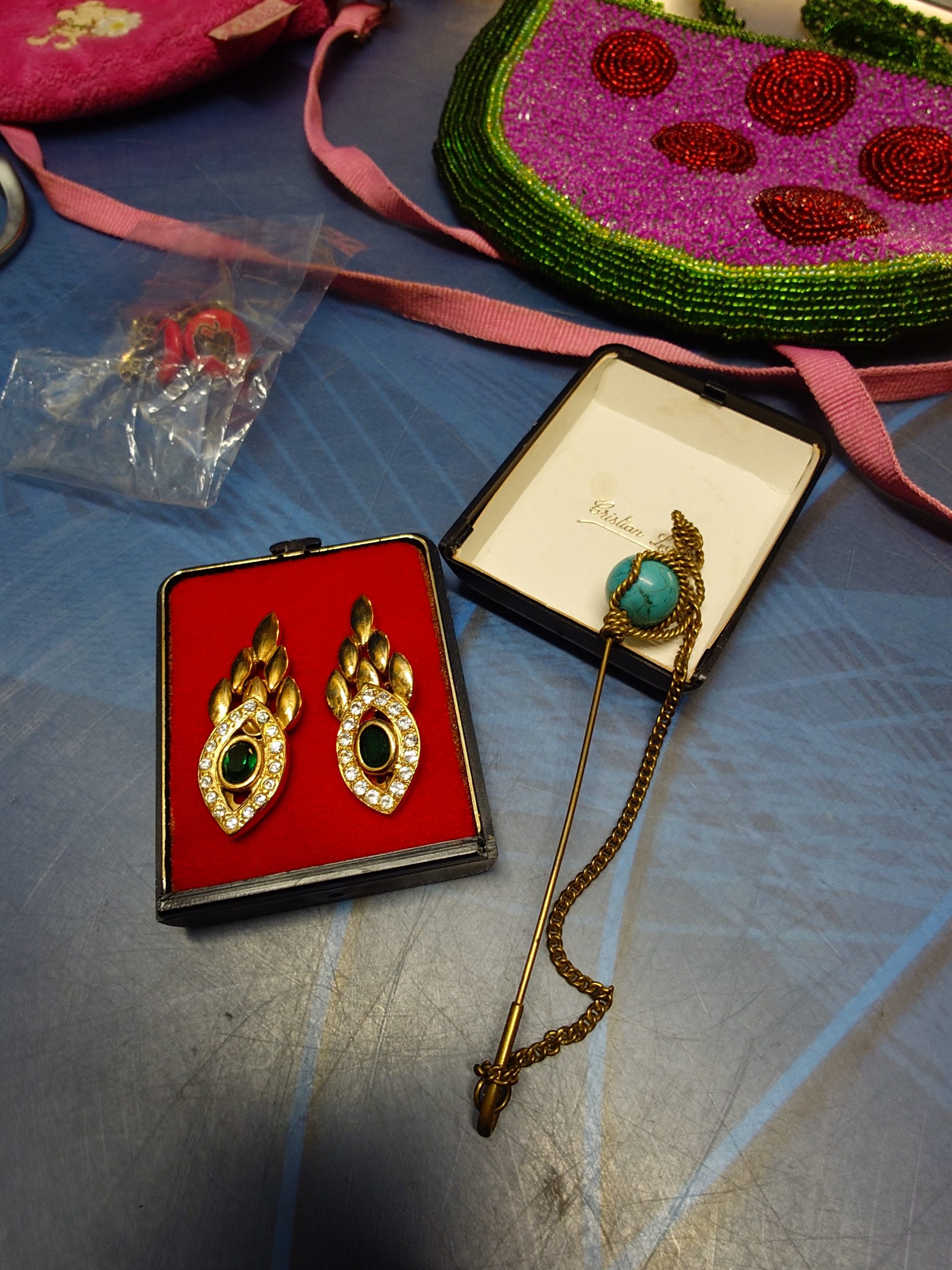 Juego, tres mini bolsos, cuaderno y bisutería