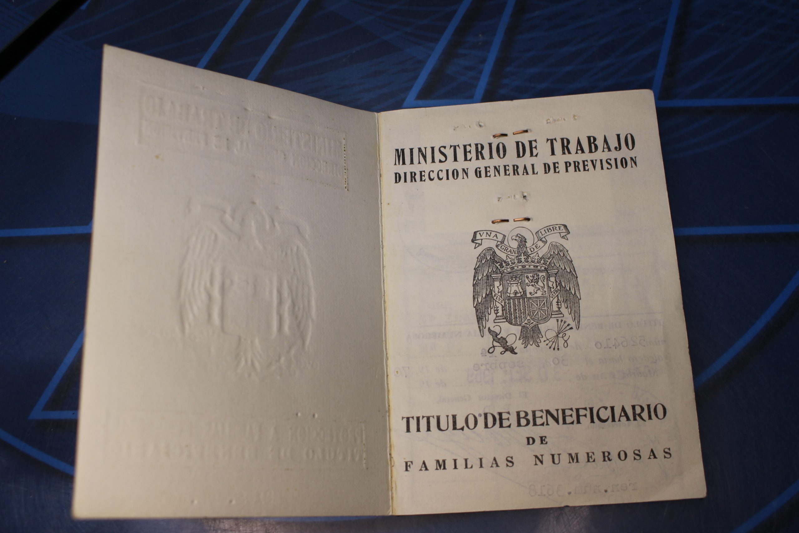 Protección a Familias Numerosas. Título de Beneficiario. 1968.