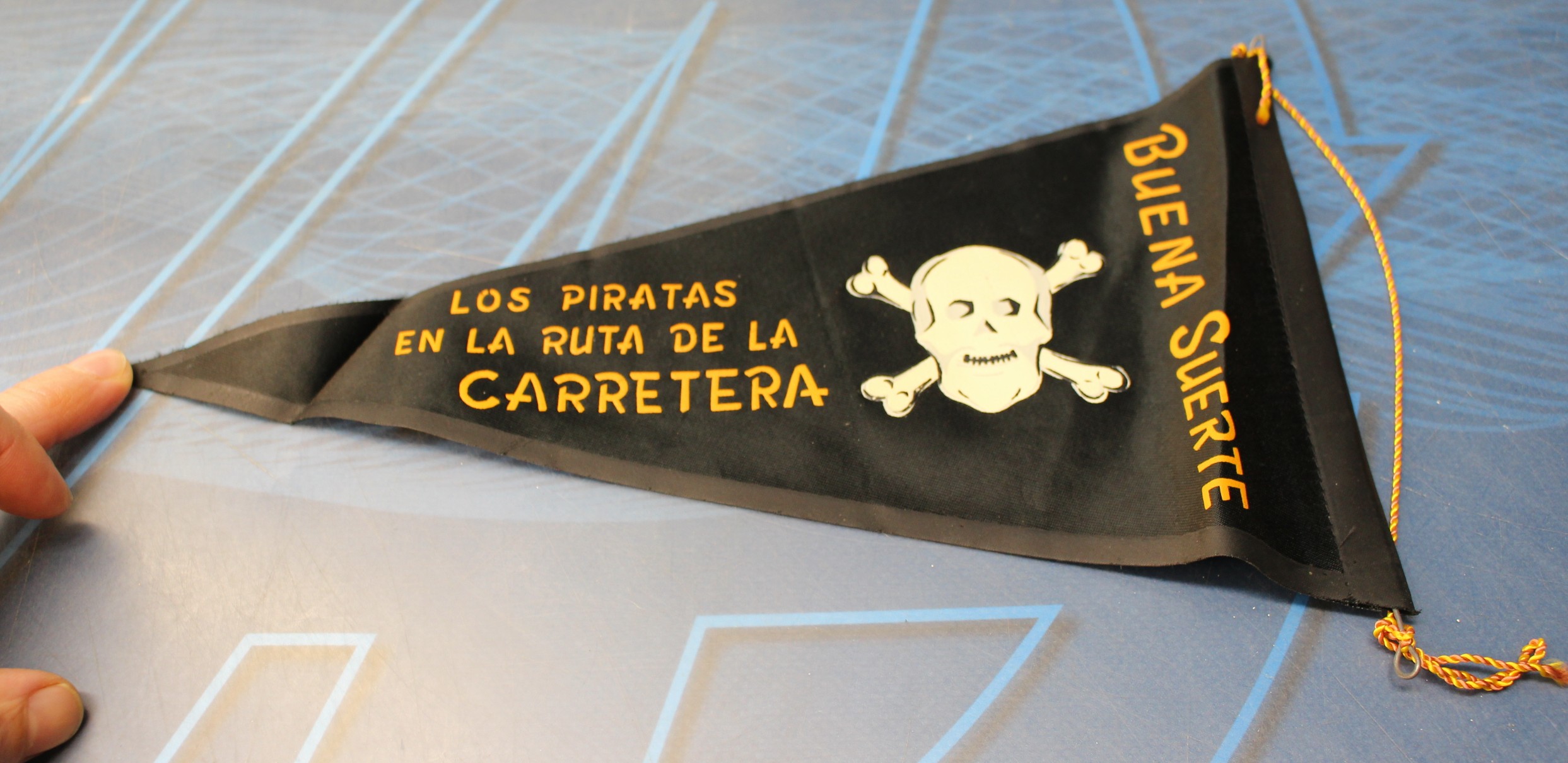 Banderín “Buena suerte. Los piratas en la ruta de la carretera”. Años 60.