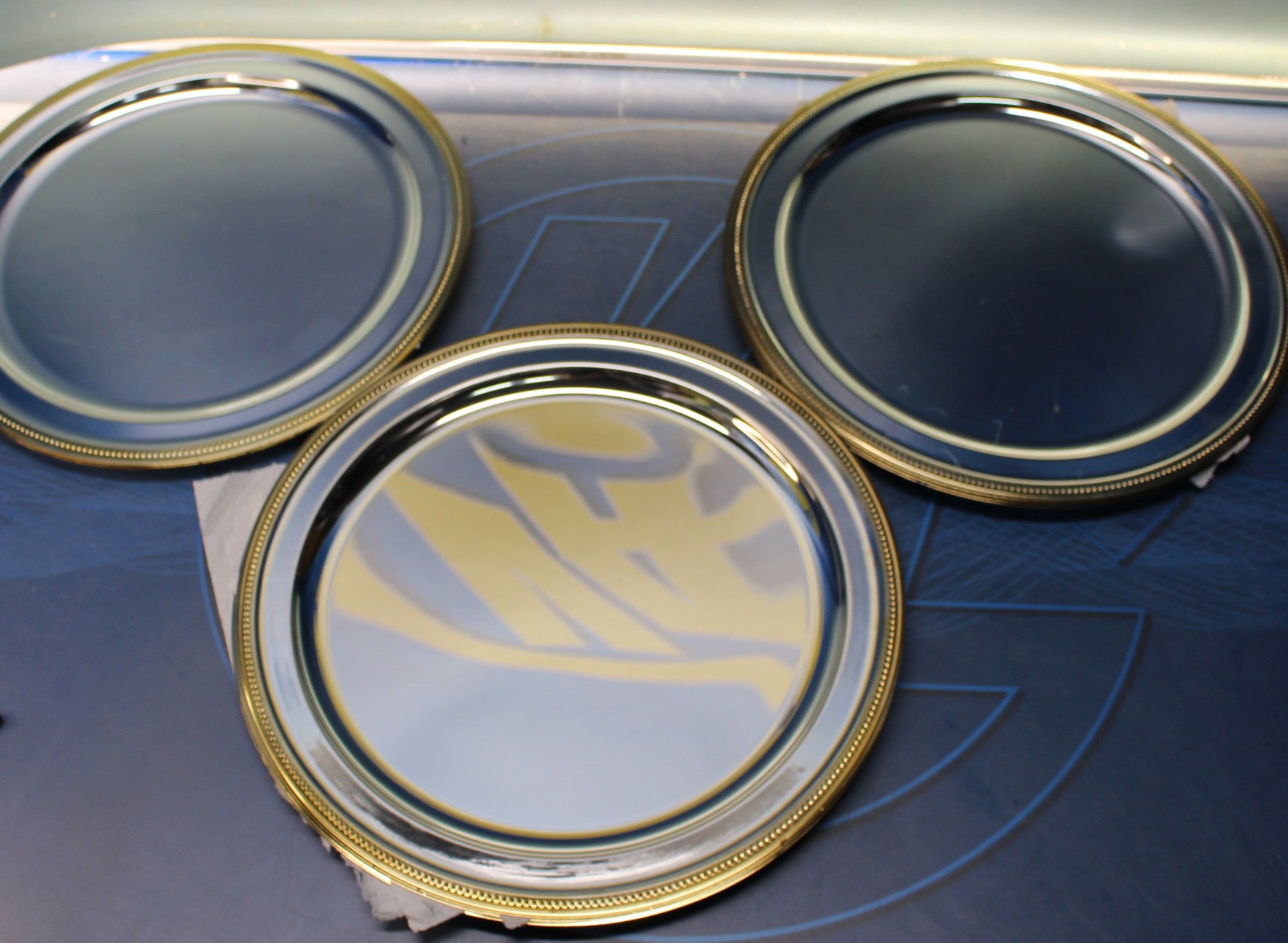 Plato decorativo de porcelana azul cobalto y oro.