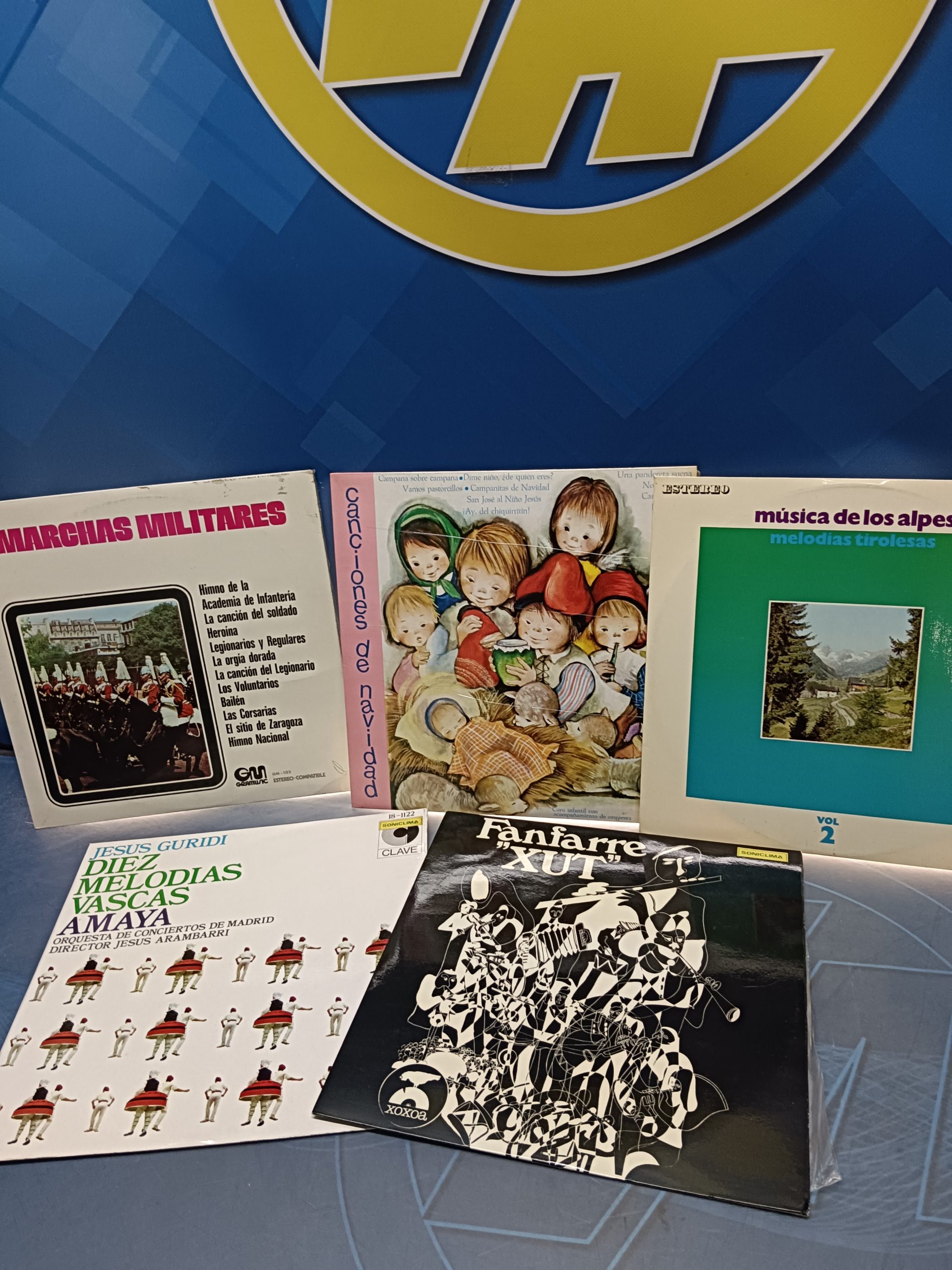 lote 5 vinilos, varios, villancicos + marchas militares + diez melodías vascas + música del alpes