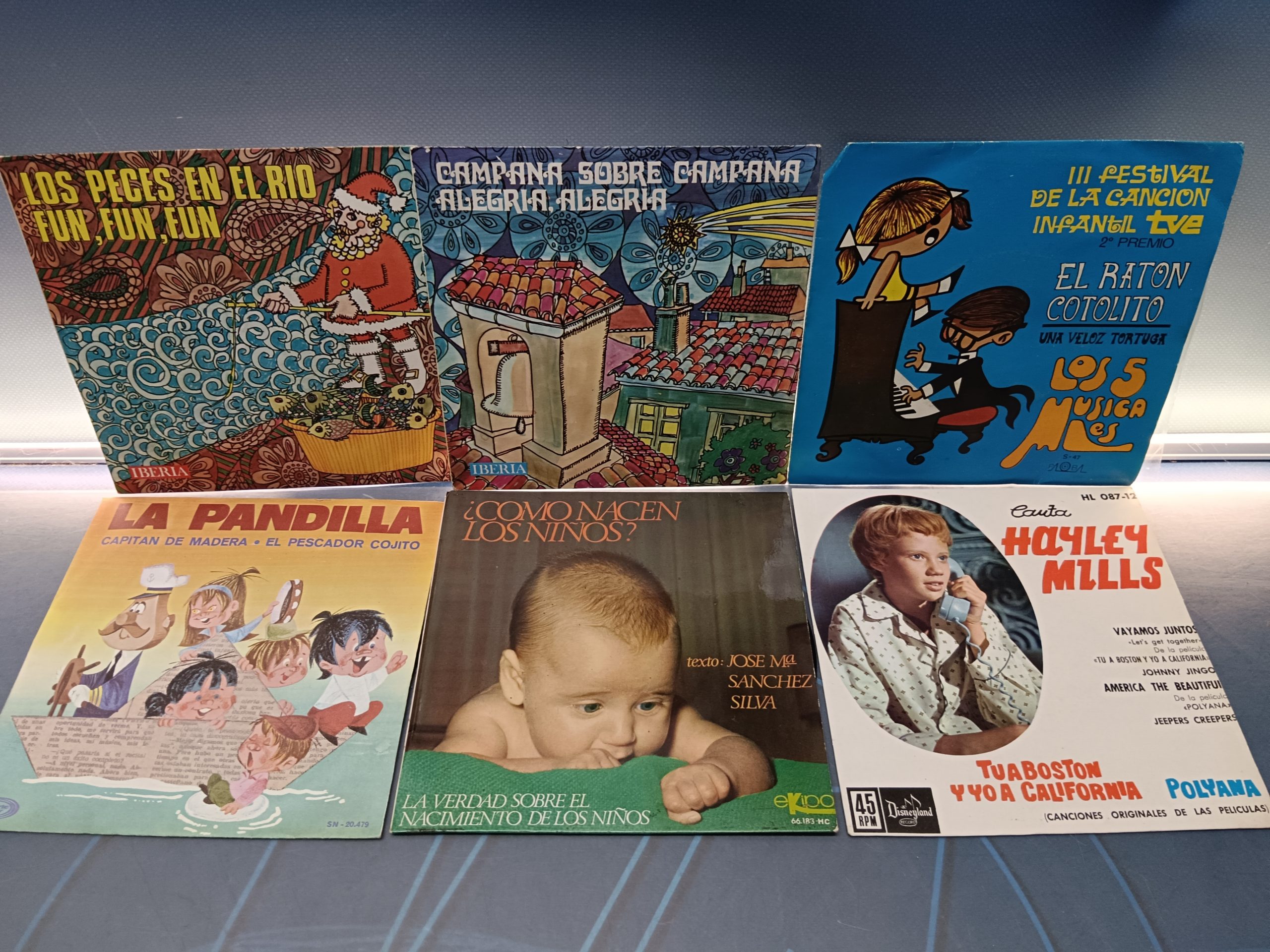 Lote 6 eps, vinilos, discos 7″, infantiles, La pandilla, villancicos, El ratón cotolito…