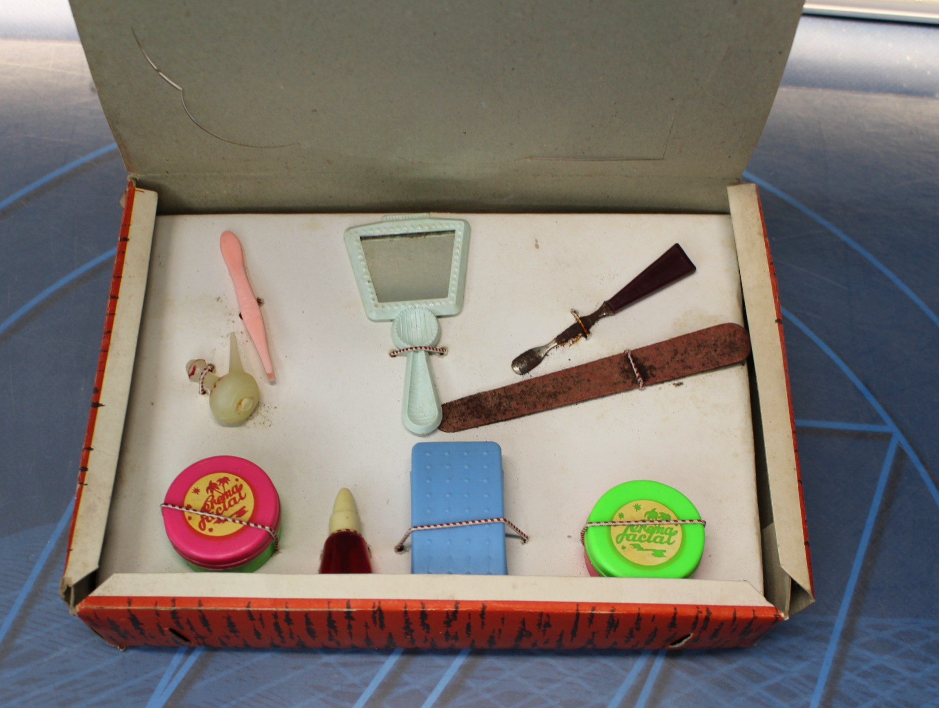 01. Coqueta, para tu muñeca. Caja con productos de tocador de juguete. Años 60.