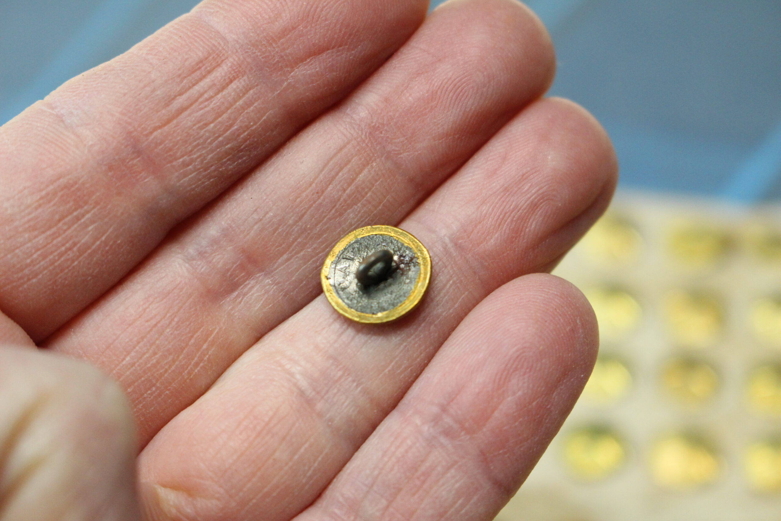 02. Antiguos botones metálicos dorados con estrella o flor en relieve.