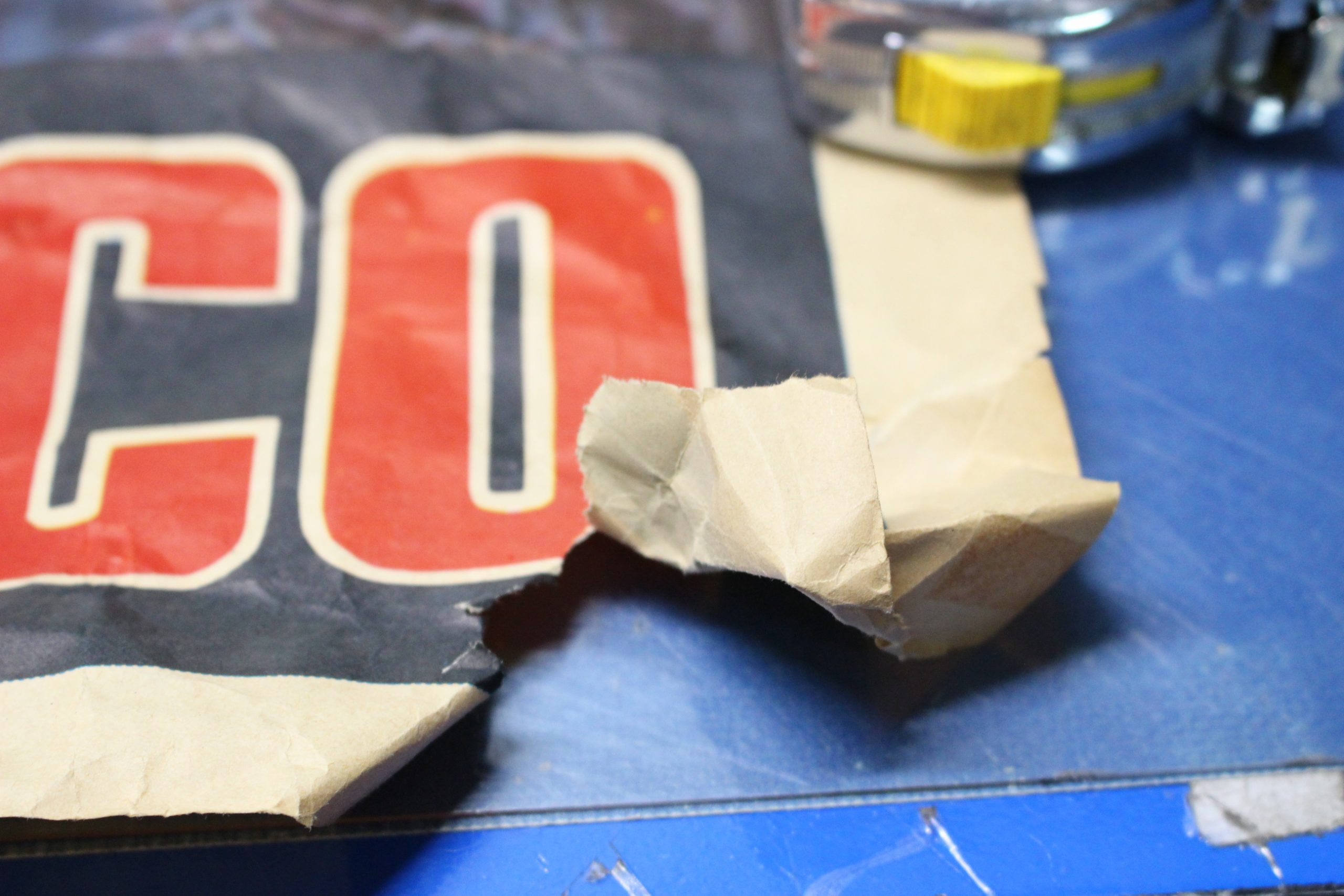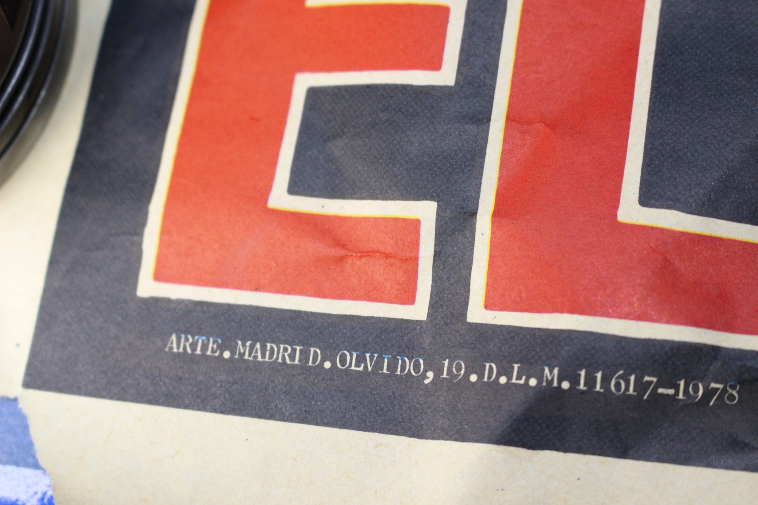 Serigrafía en buen estado, rotura en la esquina inferior y algunas marcas.