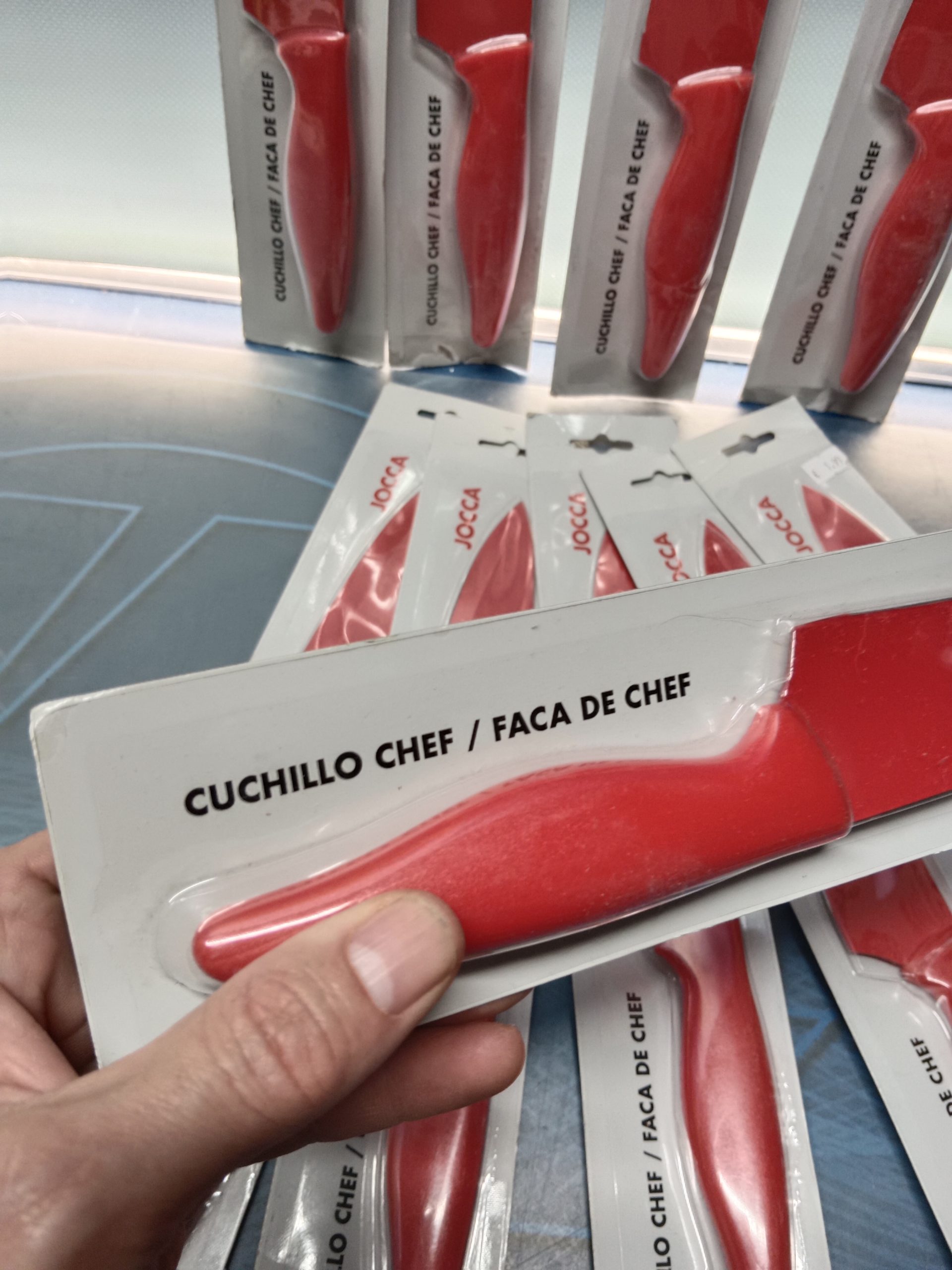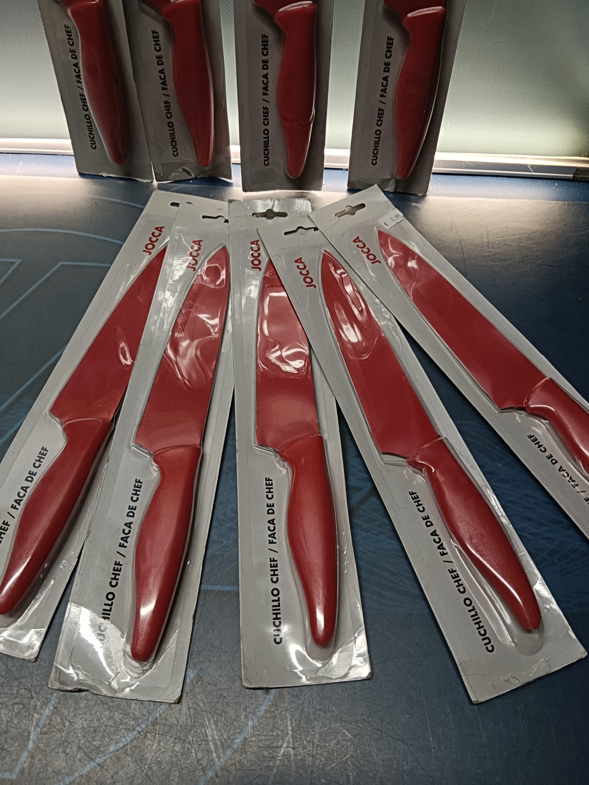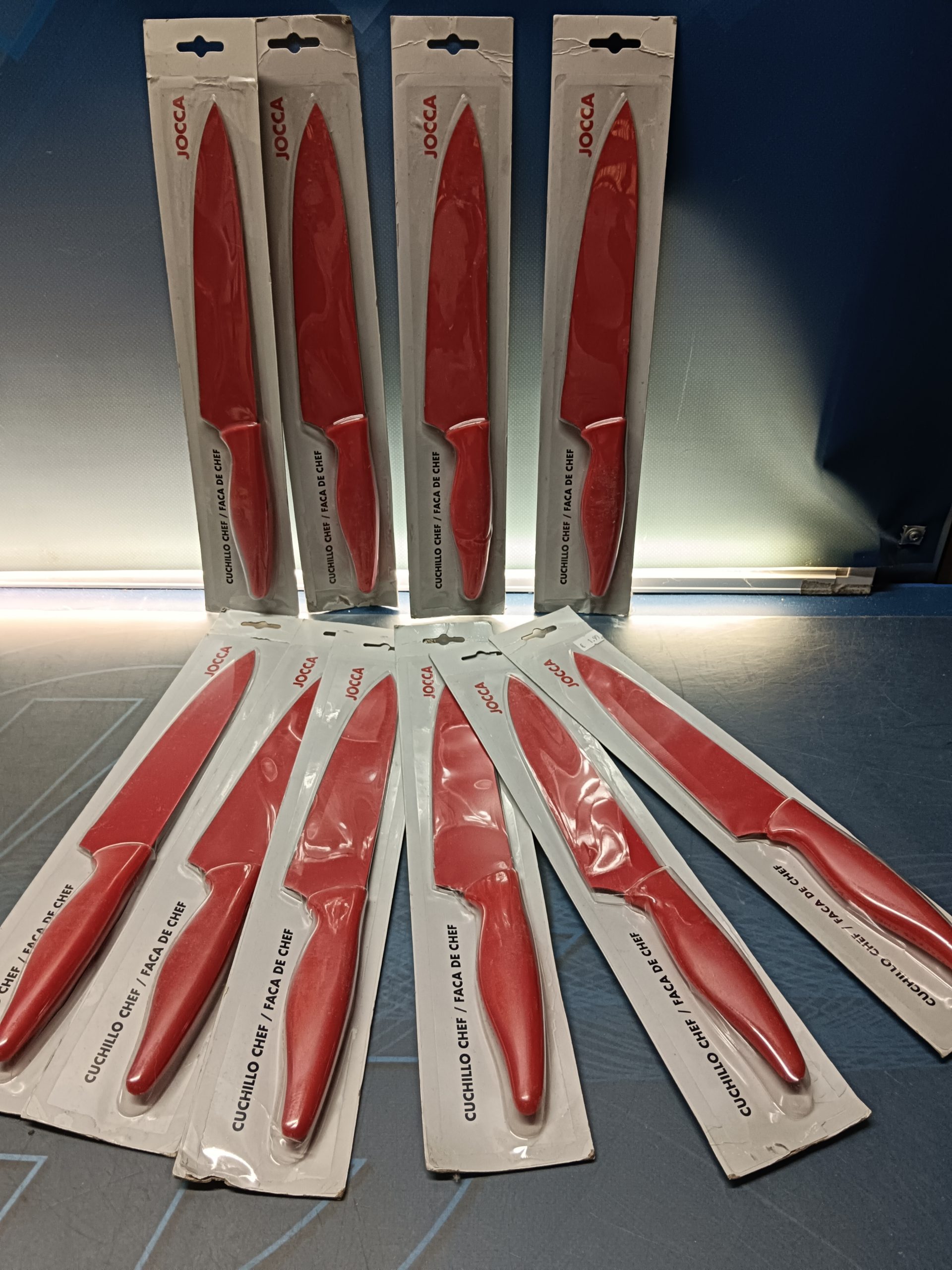 lote de 10 cuchillos de la marca jocca, nuevos sin uso, de 31 cm y de color rojo