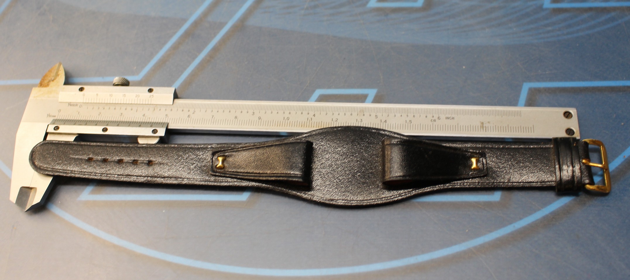 13. Correa de cuero negro tipo sudadera, militar. 18 mm. Años 70, stock de relojería.