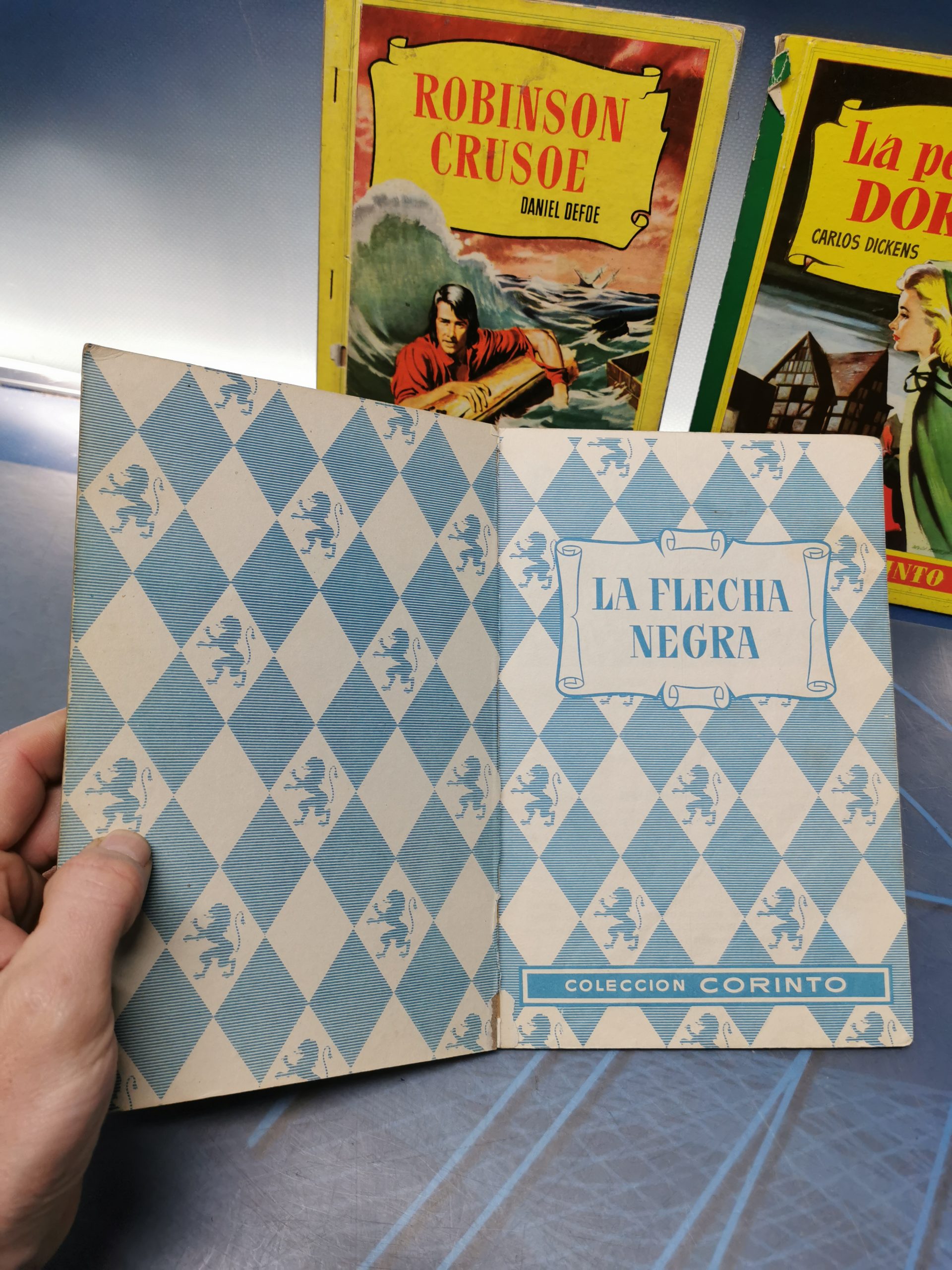 3 tomos, coleccion Corinto , ed. Bruguera Robinson Crusoe-La perla Negra-La pequeña Dorrit