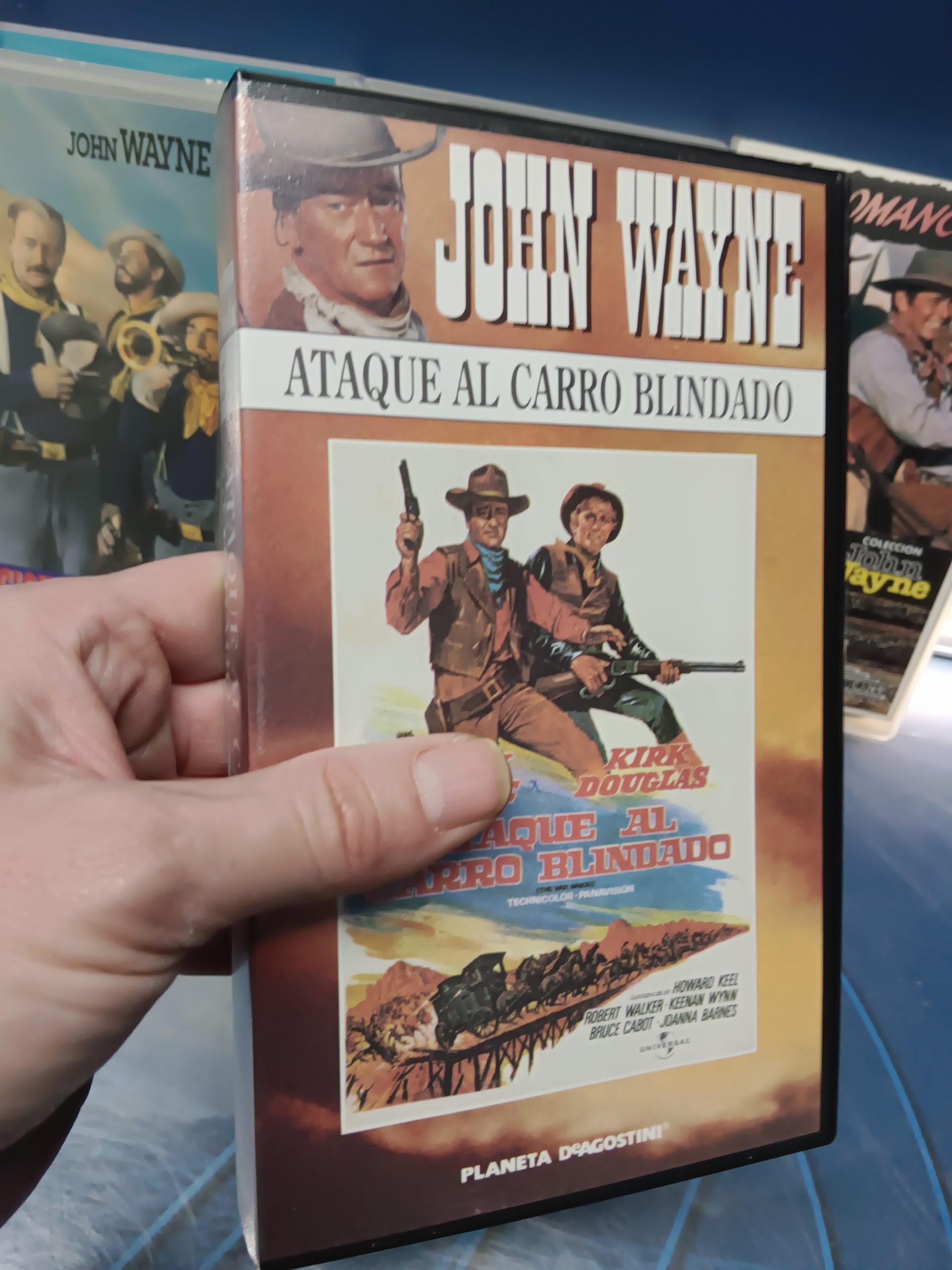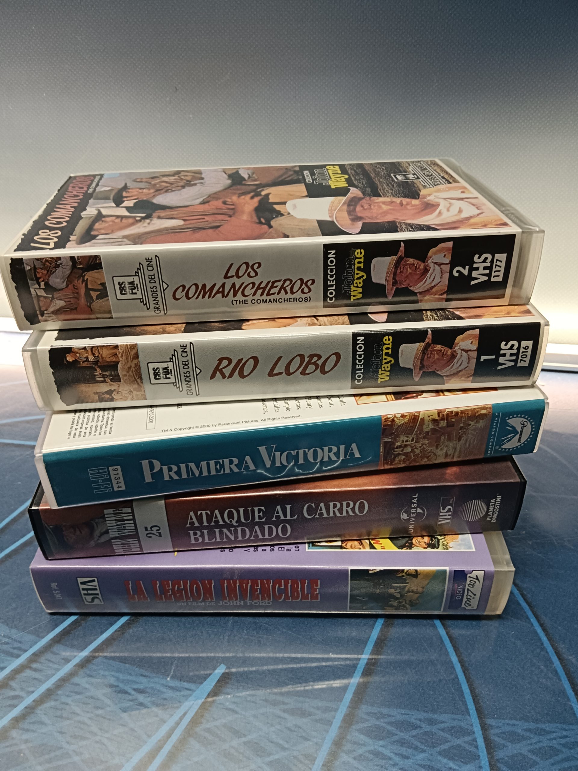 5 cintas VHS , JOHN WAYNE, primera victoria, Rio Lobo, Los comancheros, ataque al carro blindado, La legion invencible