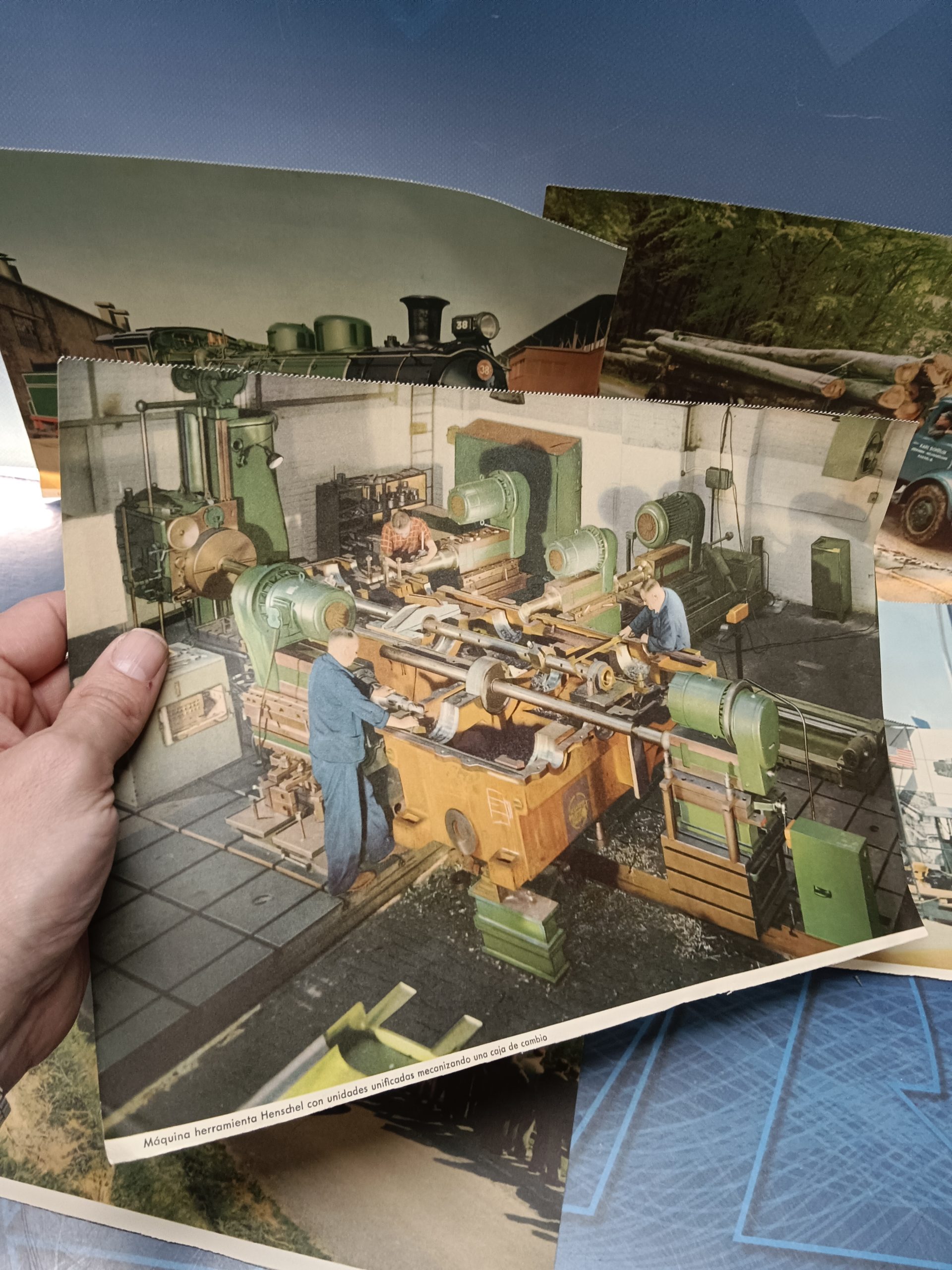 6 láminas fotos industriales, maquinaria, locomotoras, etc, 24×34 cm