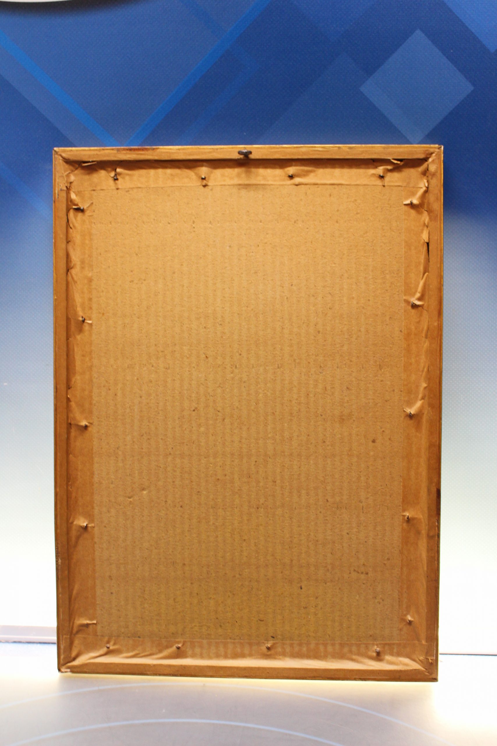 , dada a D. Tomás Dupla y familia. Fino marco de madera tallada dorada 36 x 26 cm. Años 50.