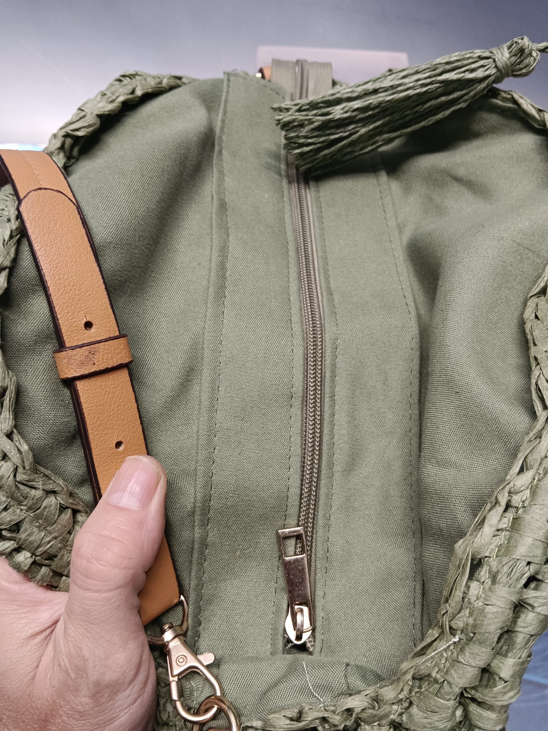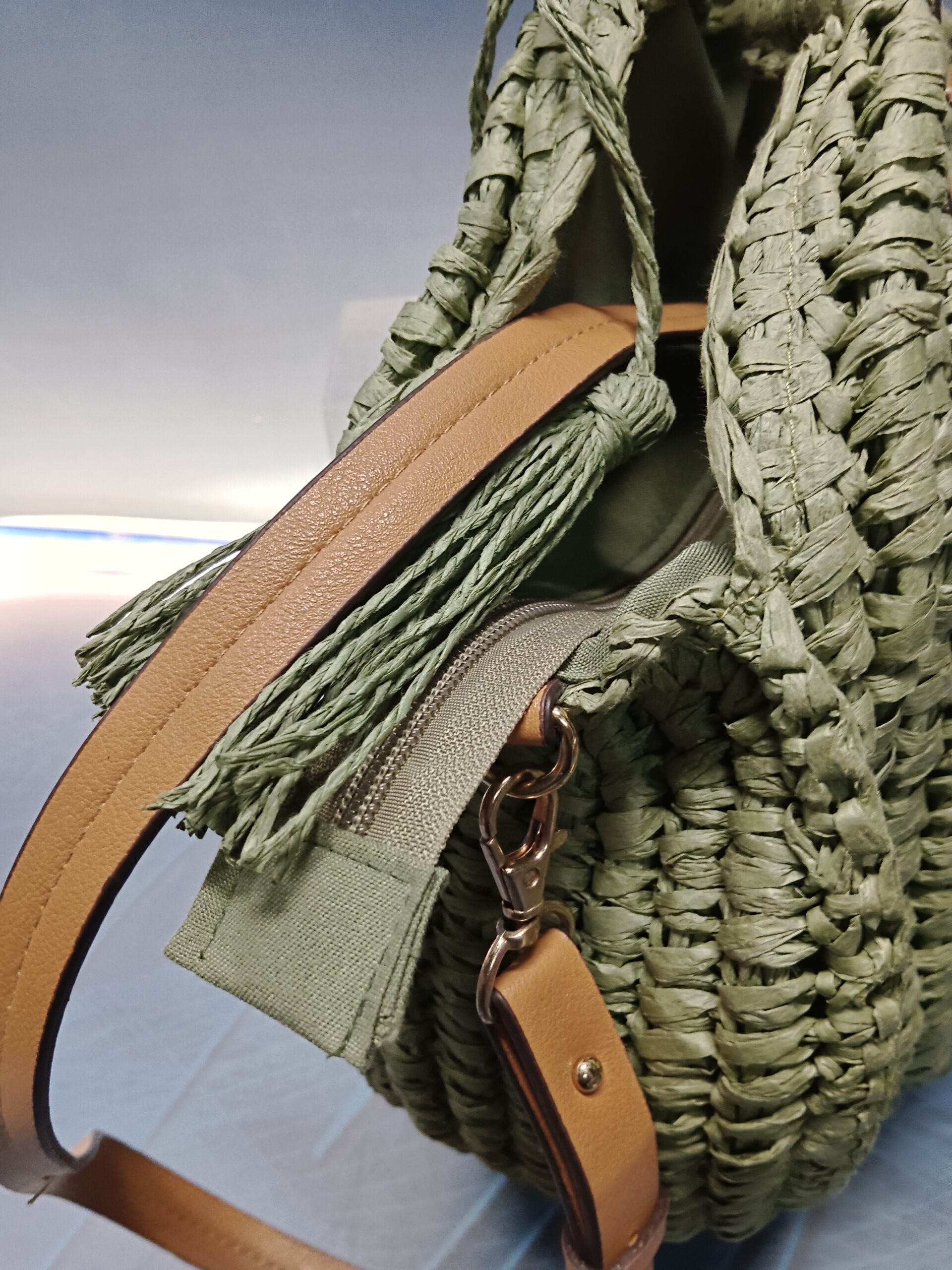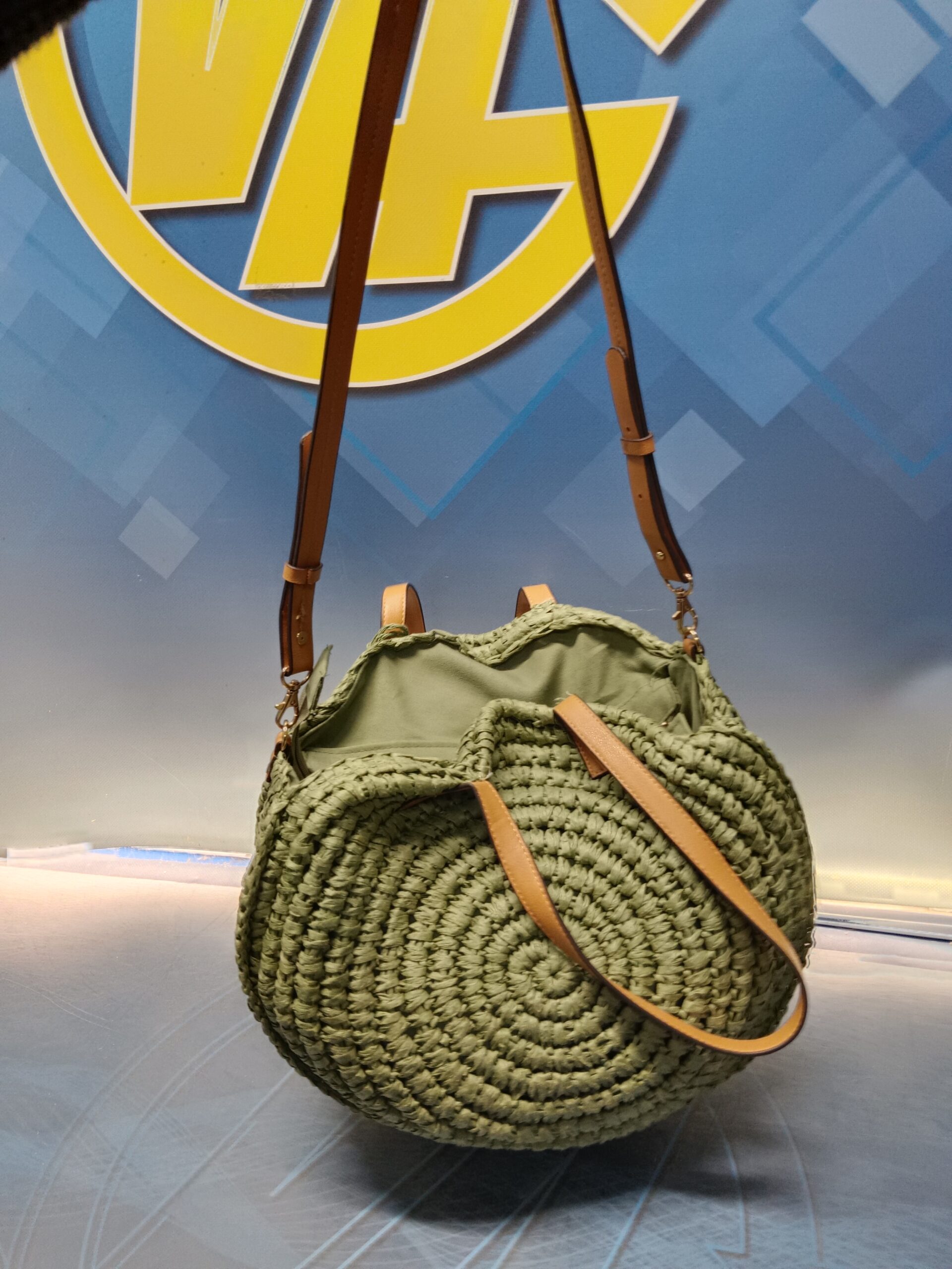 Bolso redondo poliéster de color verde en perfecto estado