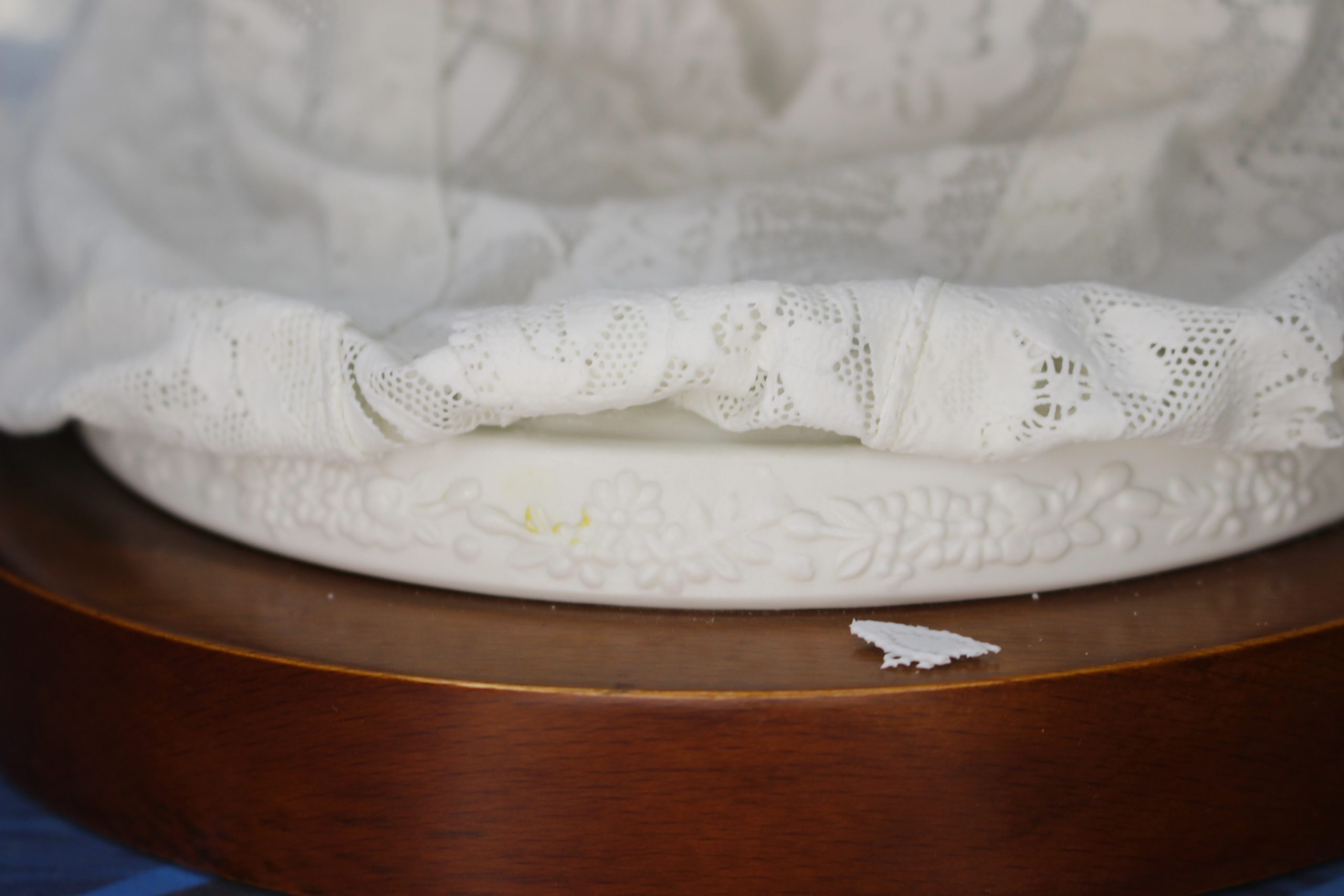 Extremadamente delicado, tiene pequeñas faltas en la mantilla. No se envía.