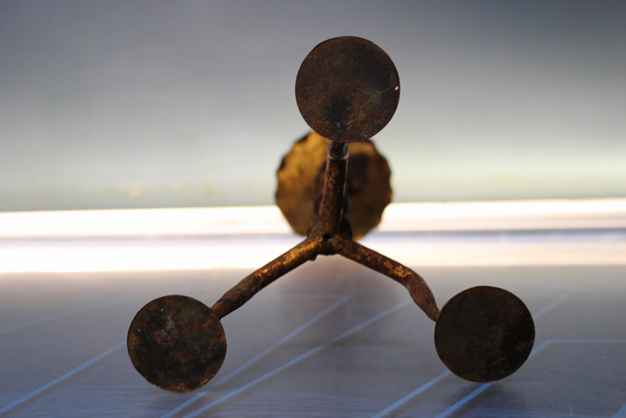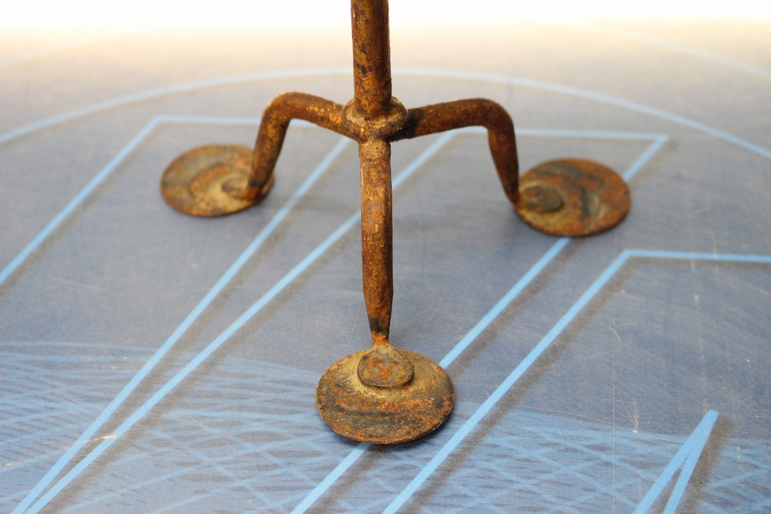 Candelabro antiguo artesanal, forja. Preciosa pátina dorada.
