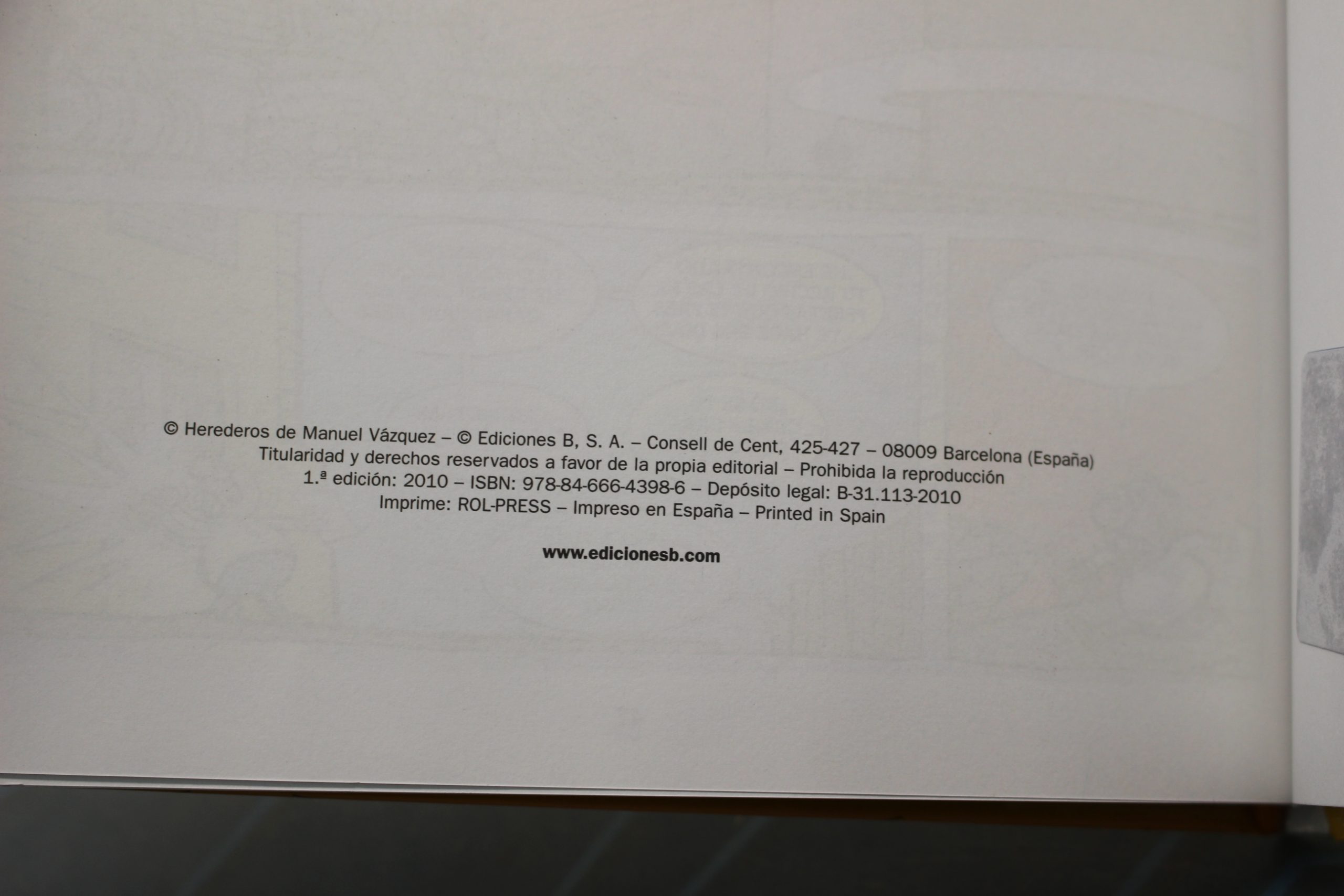 Ediciones B, 2010. Tapa dura, muy buen estado salvo unas manchas de tinta en las tapas.