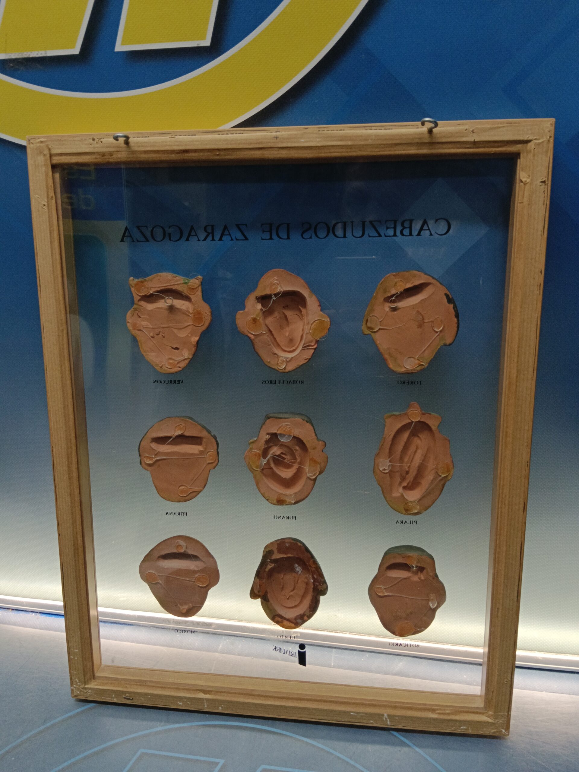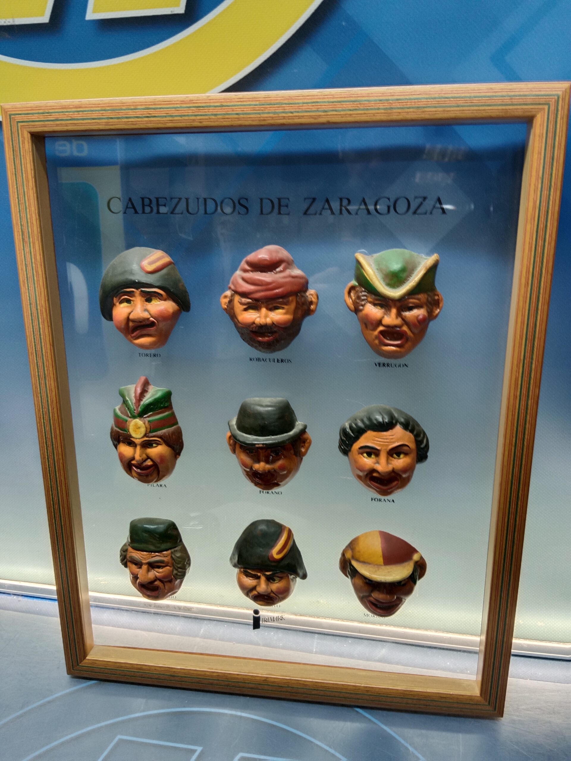 cuadro, LOS CABEZUDOS DE ZARAGOZA enmarcados, CERÁMICA PINTADA, marco de alto 48 x 37,5 x 03 cm