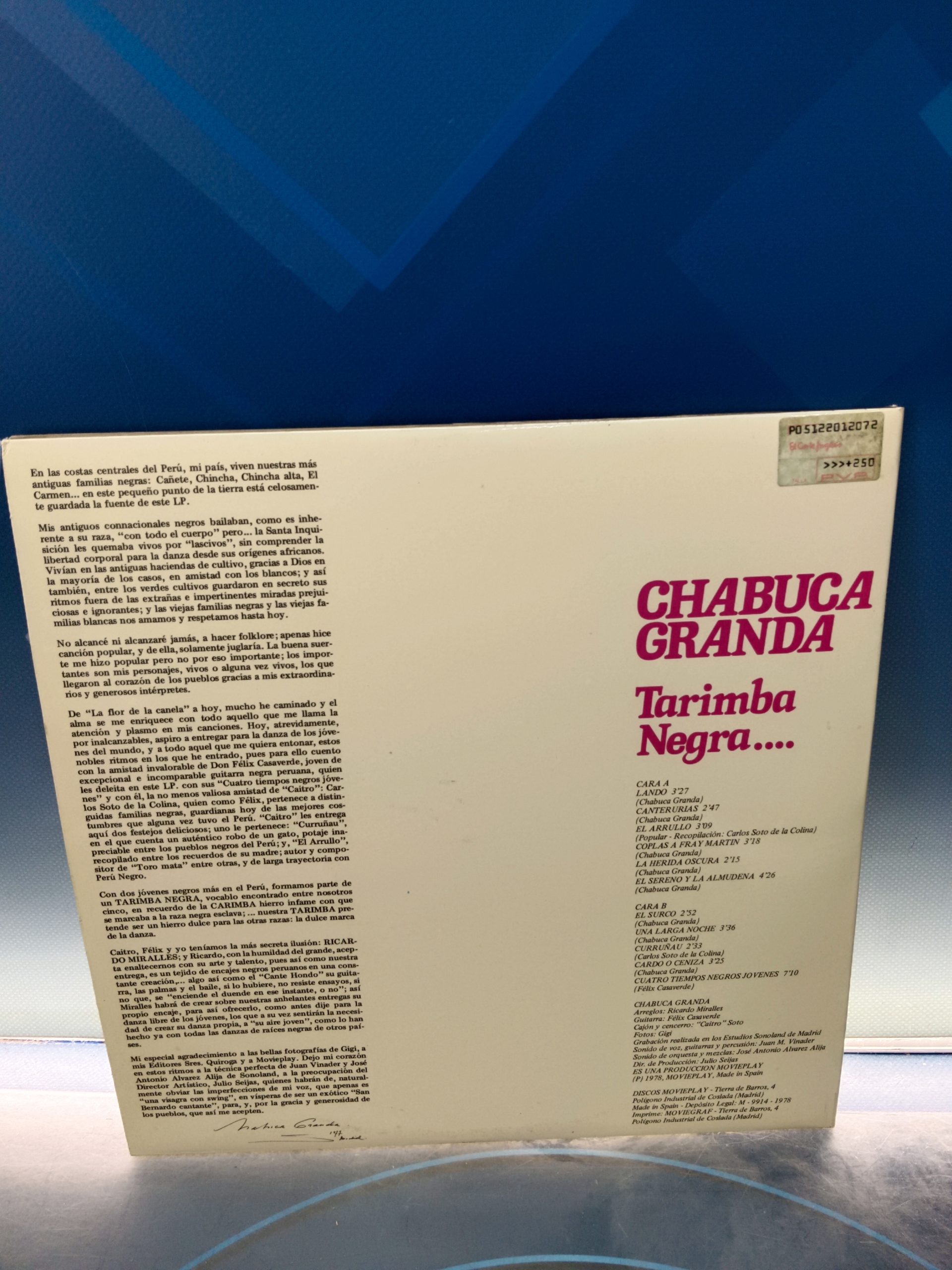 disco LP vinilo, Chabuca Granda Con Félix Casaverde, Caitro Soto Y Ricardo Miralles – Tarimba Negra – LP, Album 1978, Spain