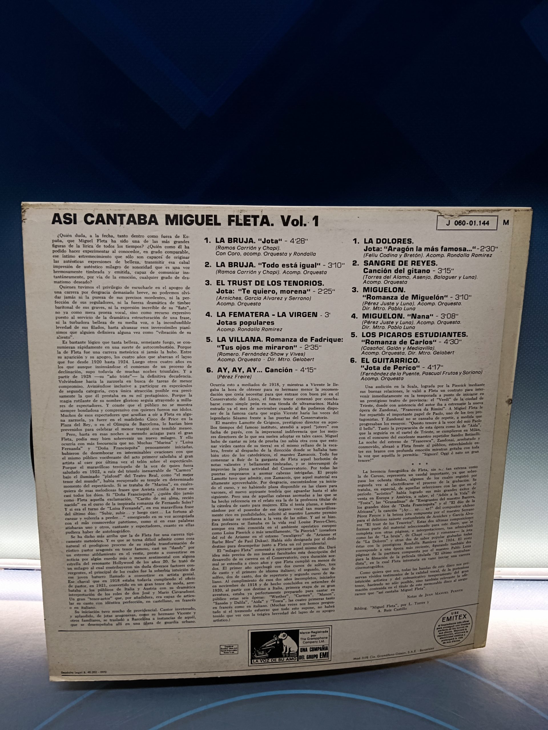 disco LP, vinilo, Miguel Fleta – Así Cantaba Miguel Fleta. Vol. 1 ,1970, Spain