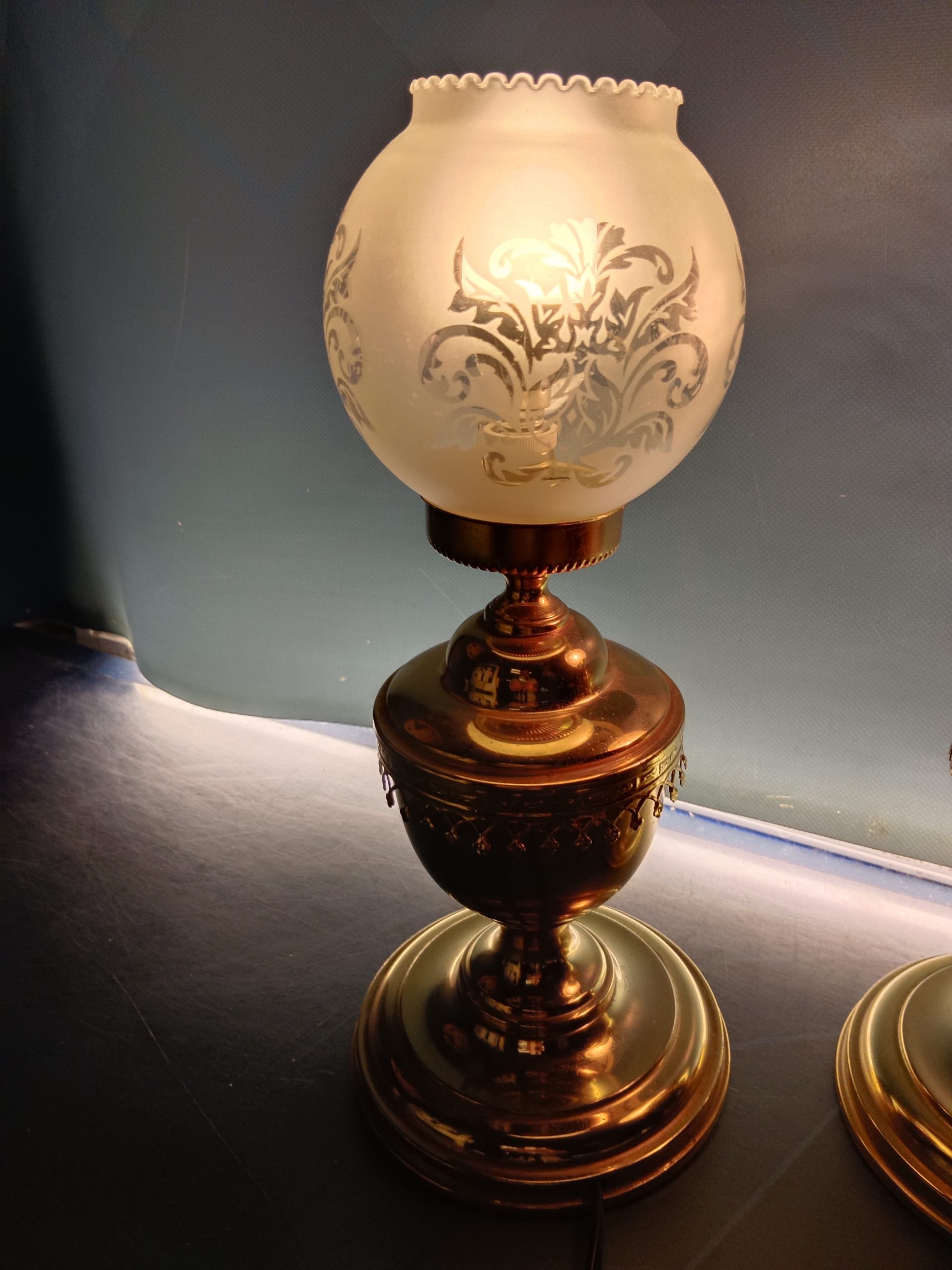 Dos lamparas de mesilla 36×14 cm, base dorada, mid century
