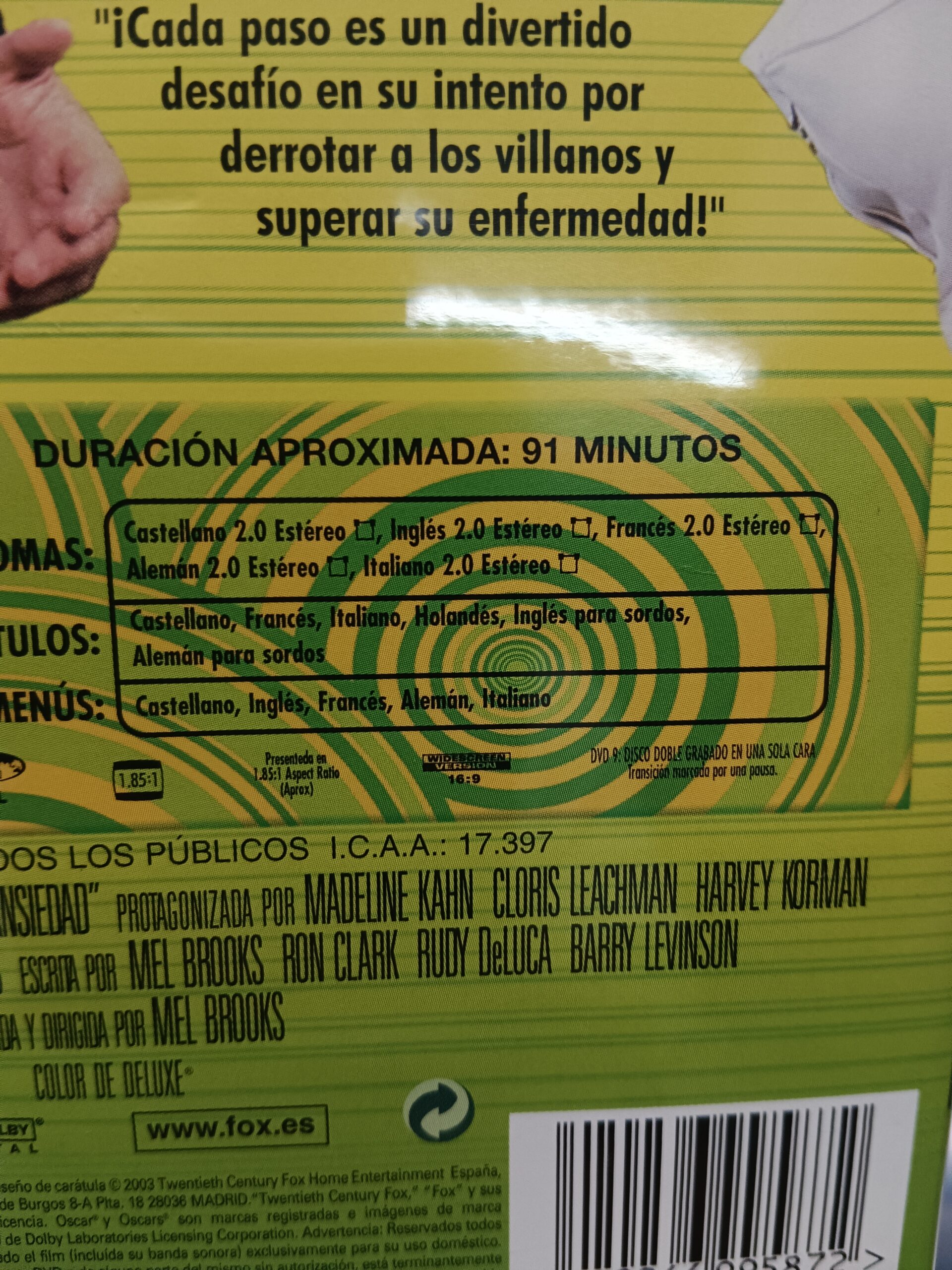 Dvd, MAXIMA ANSIEDAD, de MEL BROOKS,
