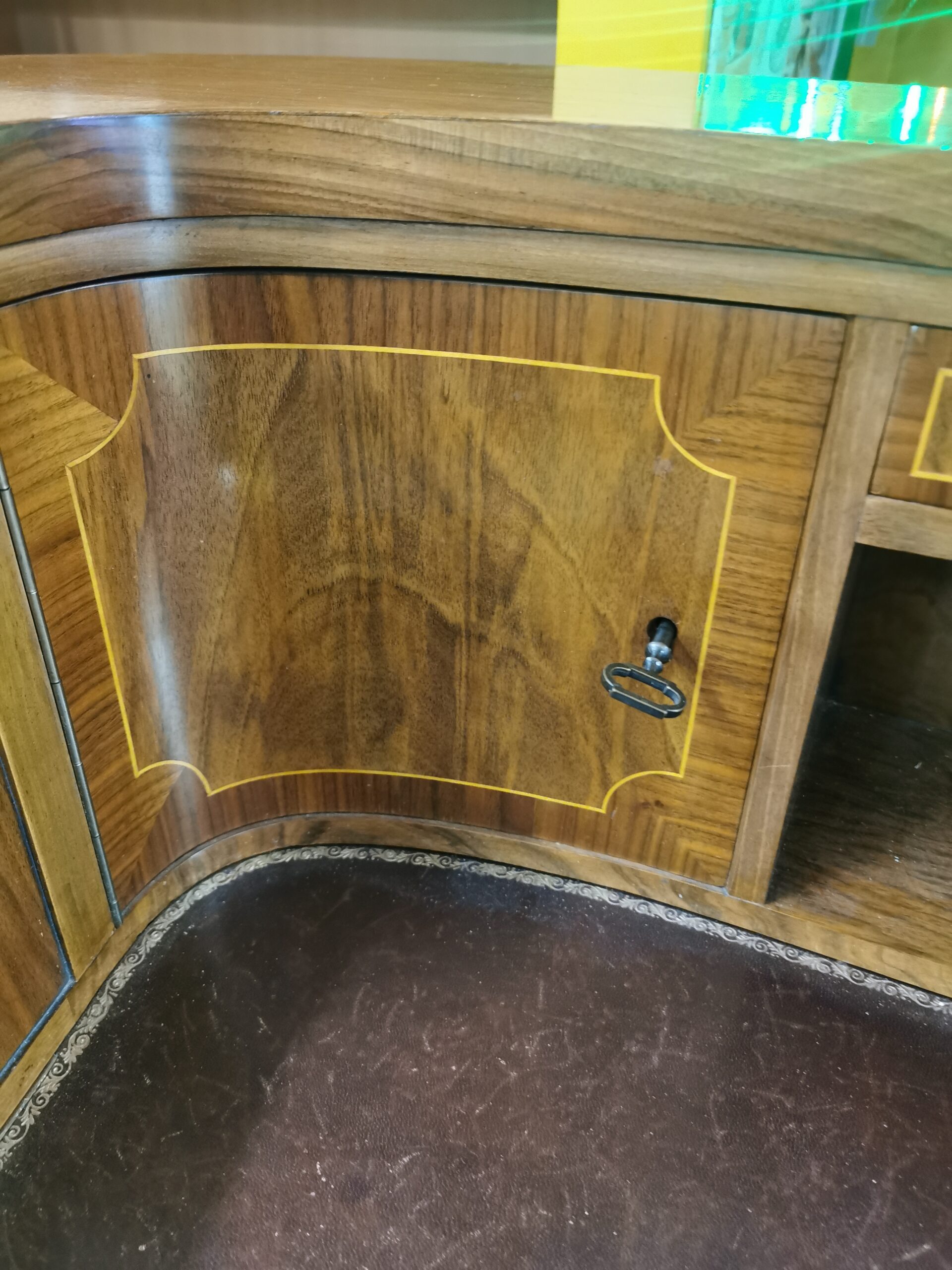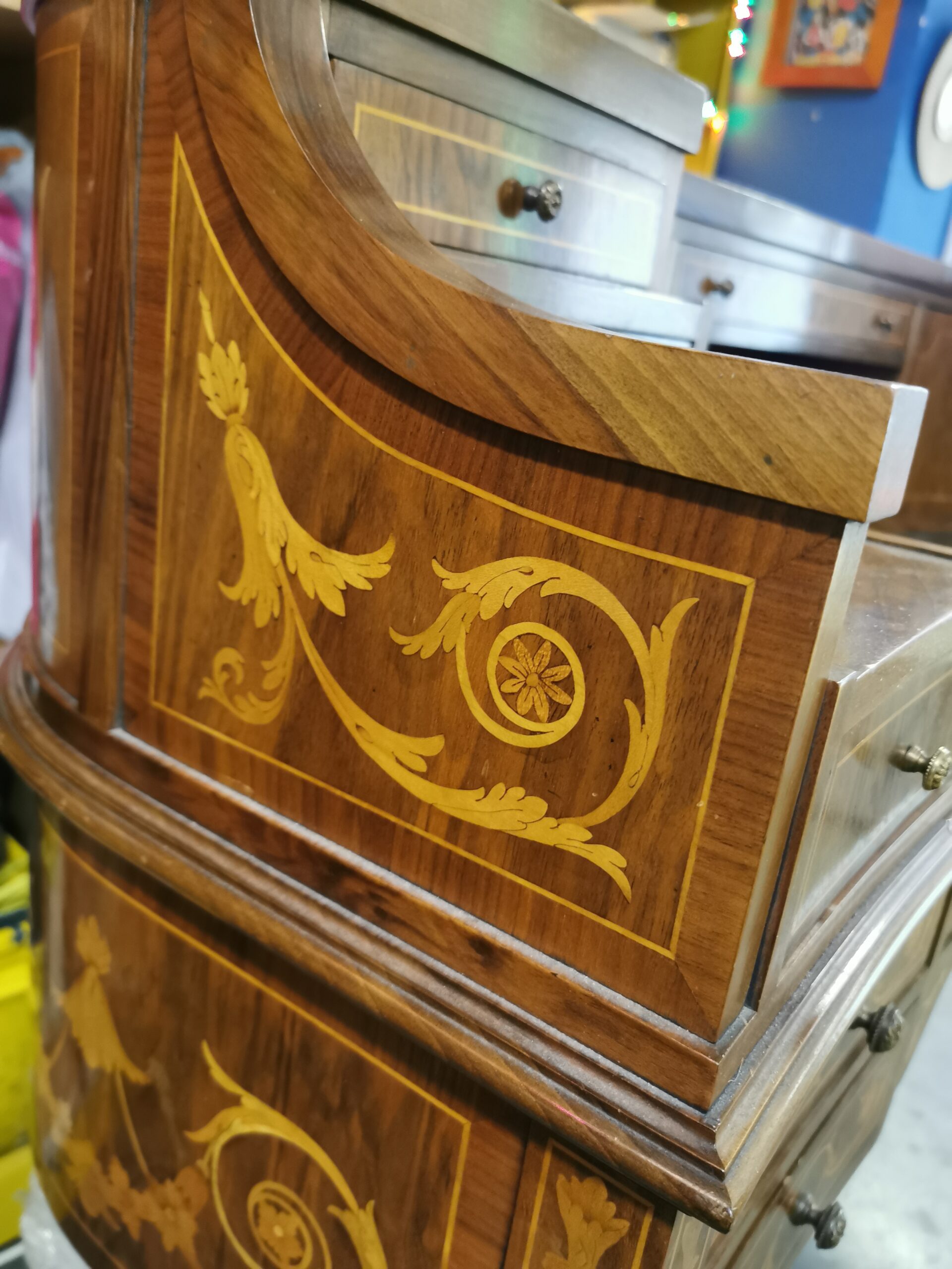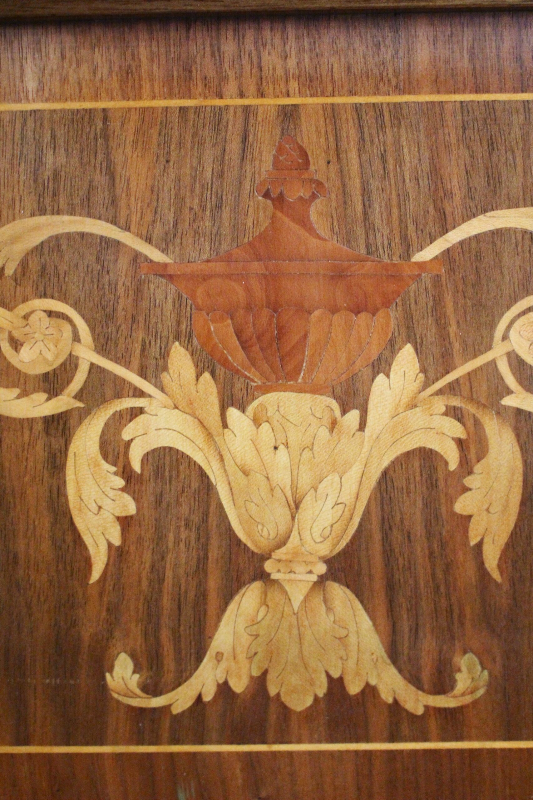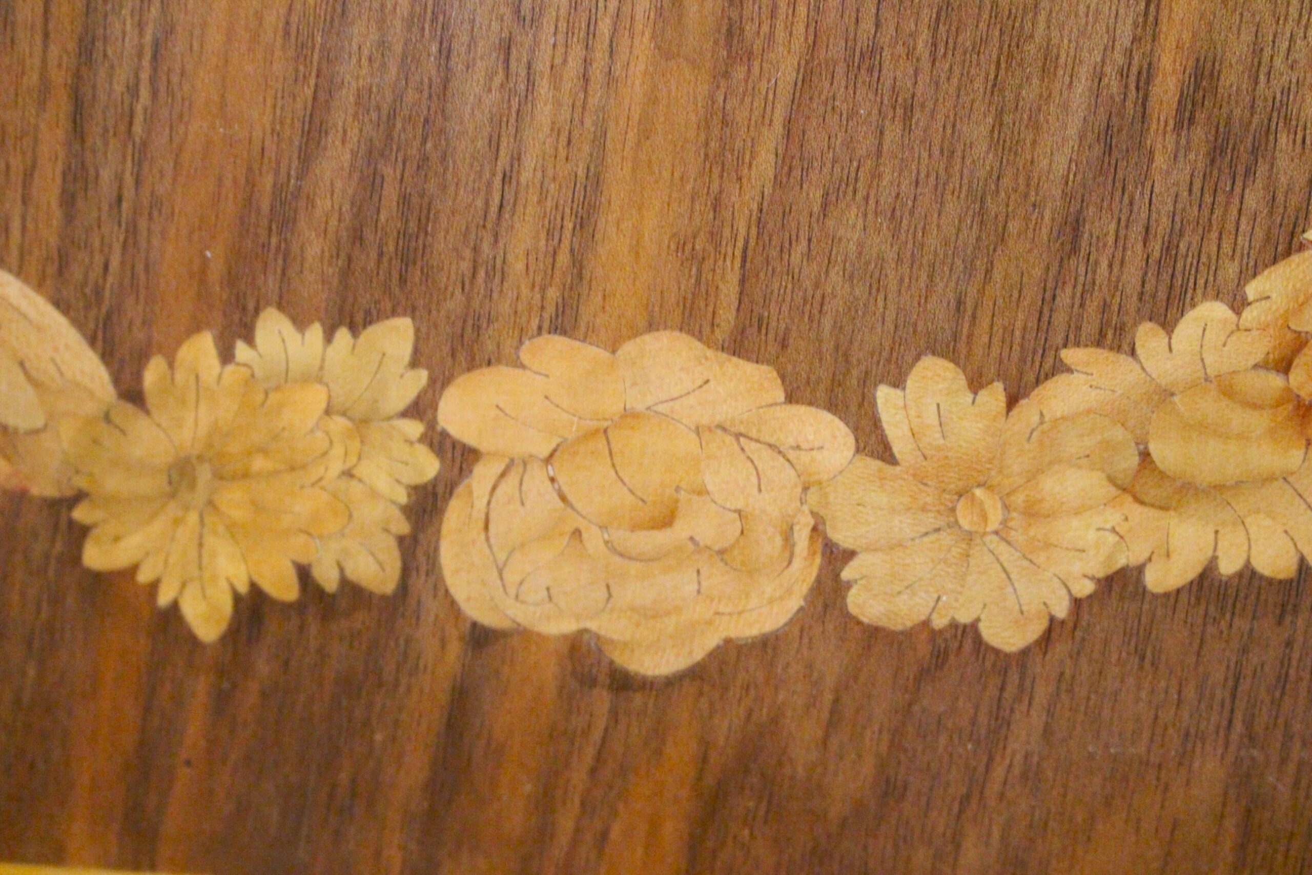 Delicada marquetería de limoncillo sobre nogal.