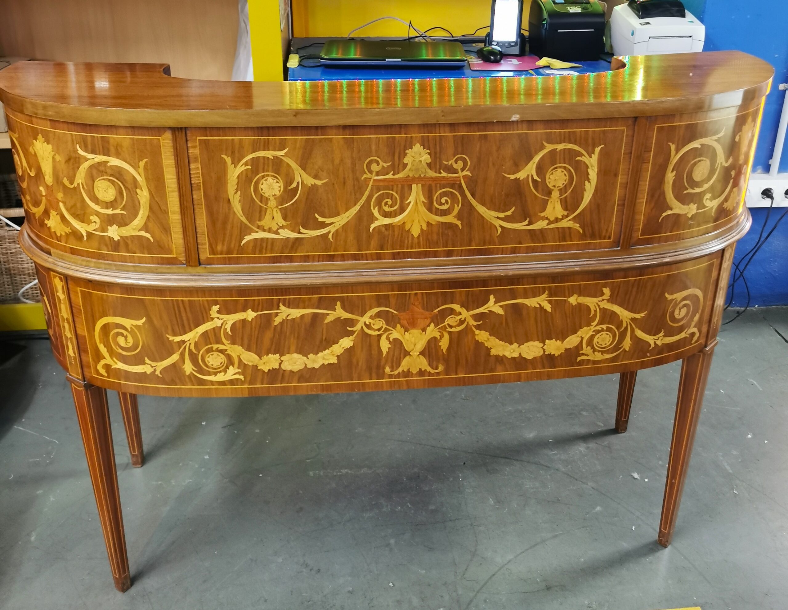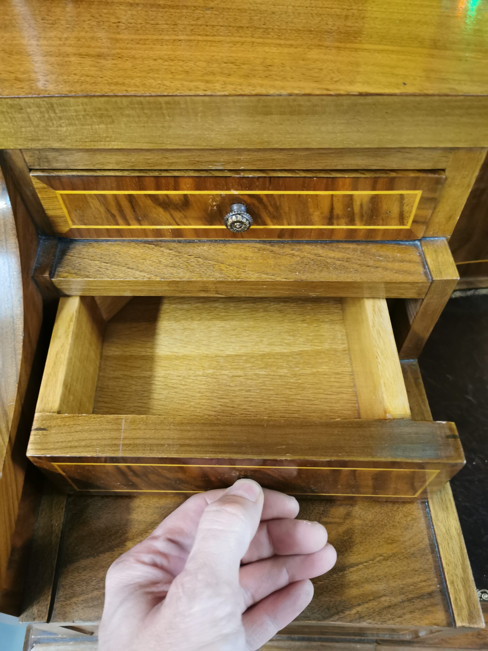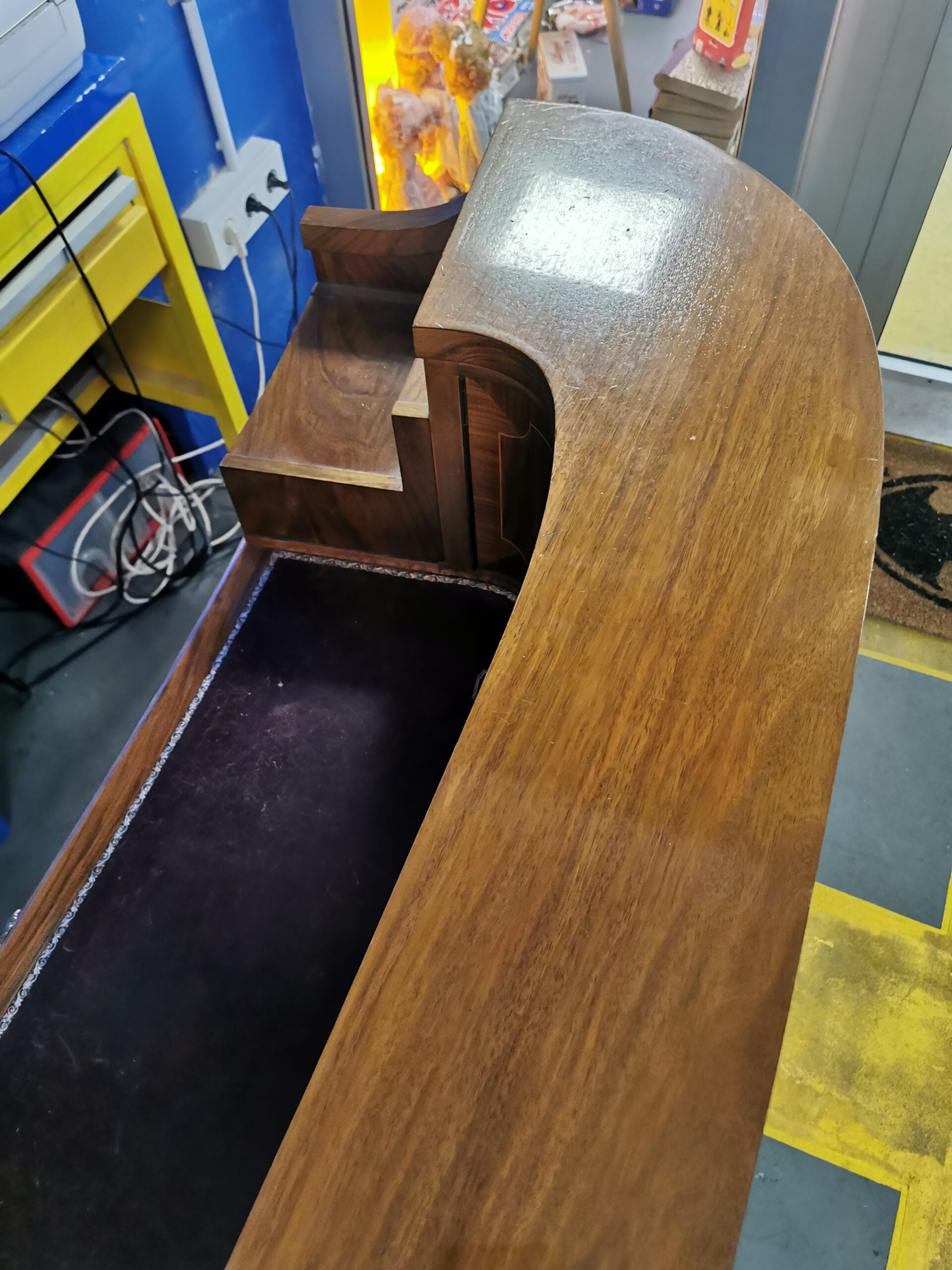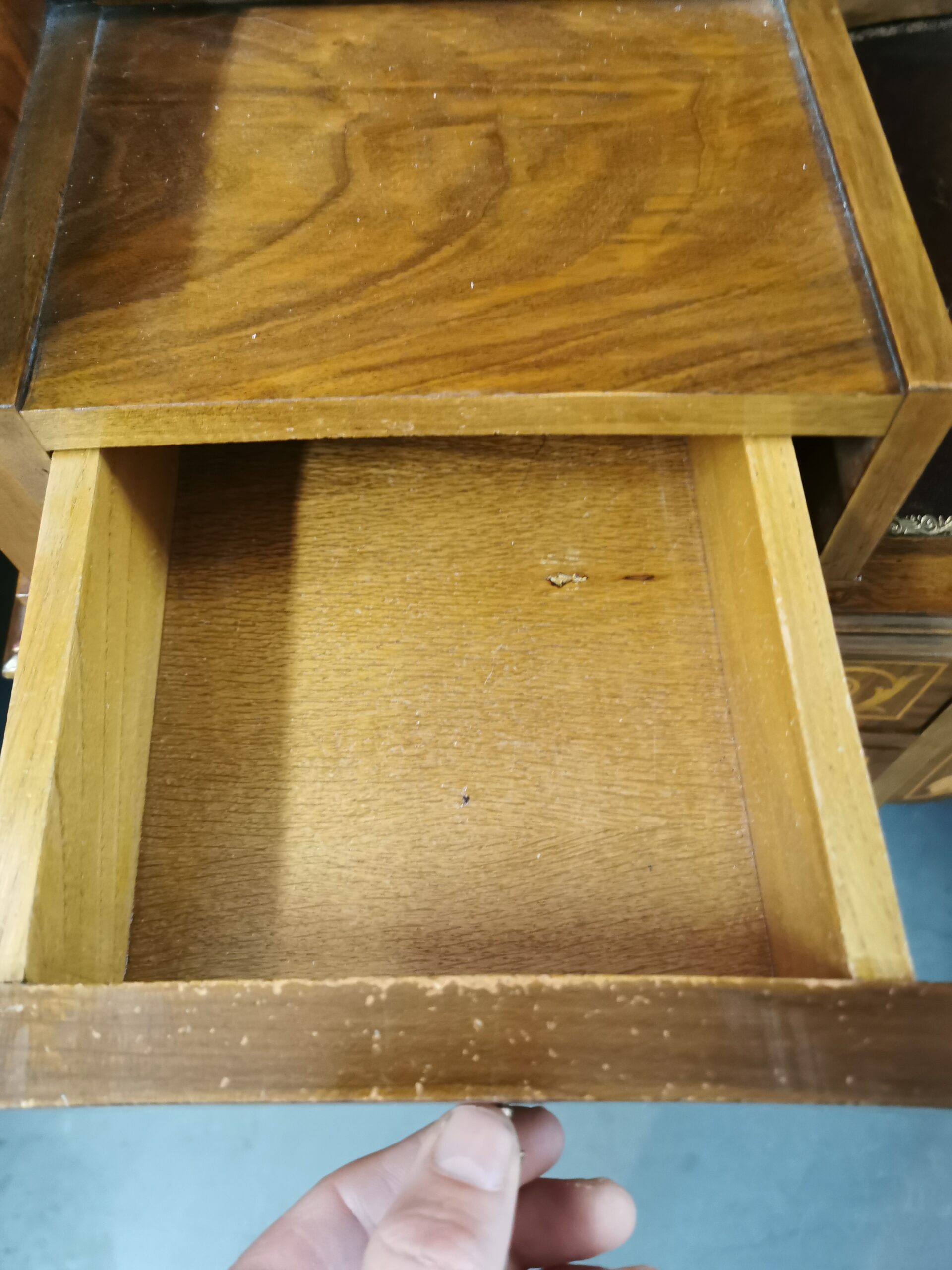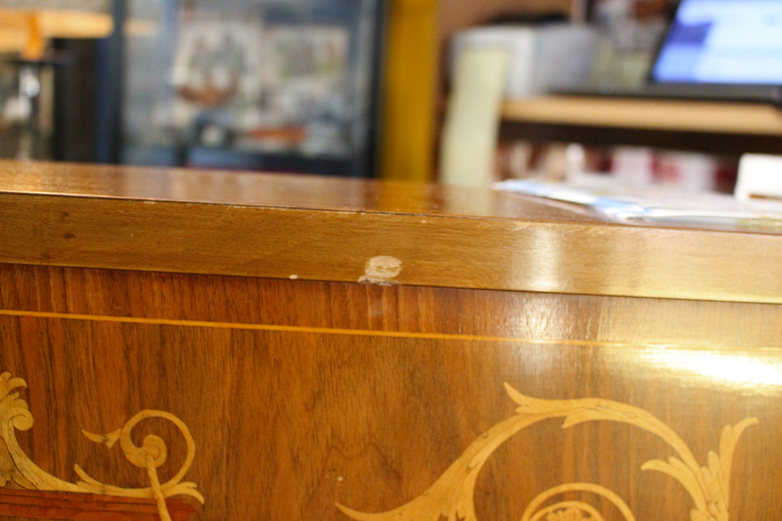 Delicada marquetería de limoncillo sobre nogal.