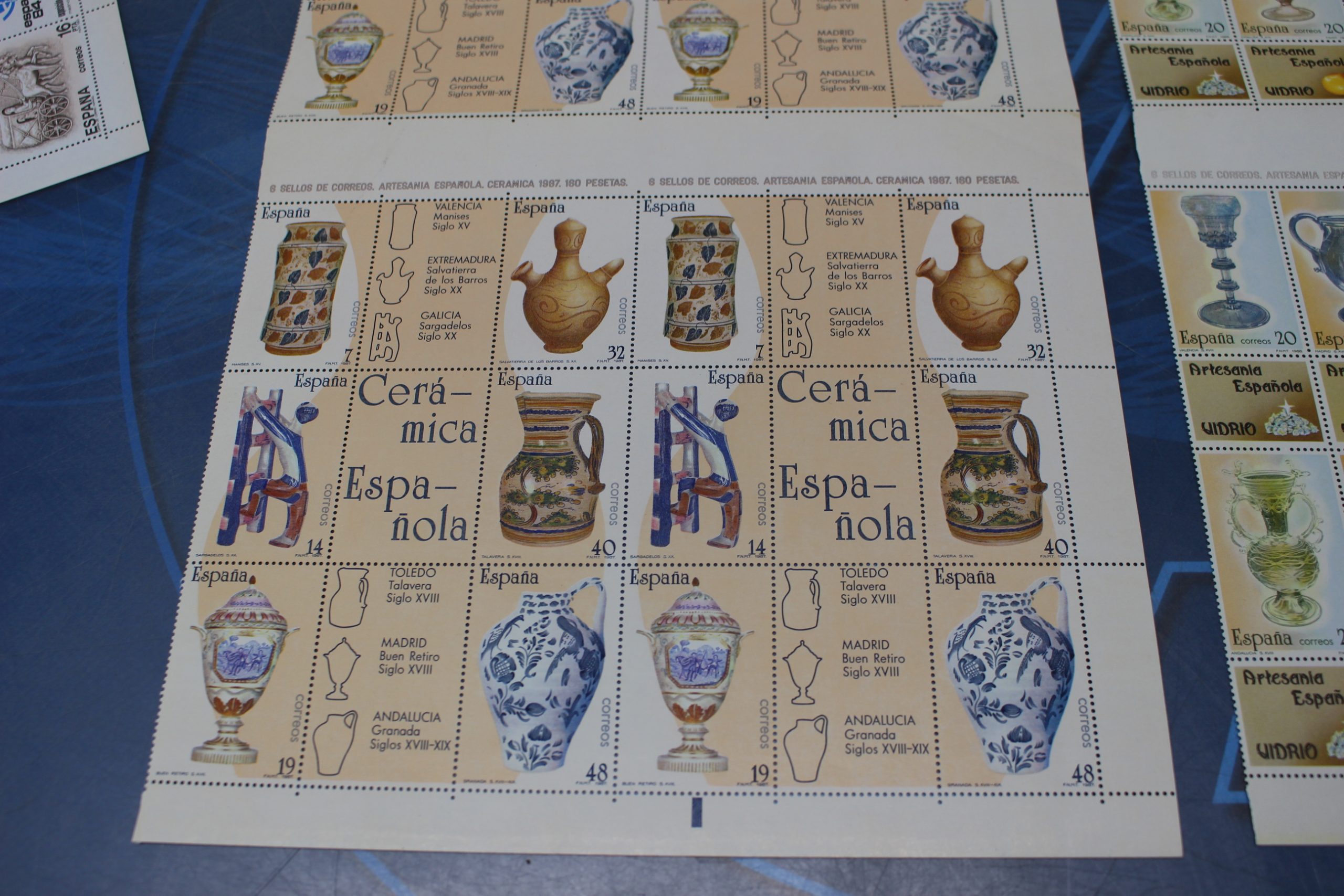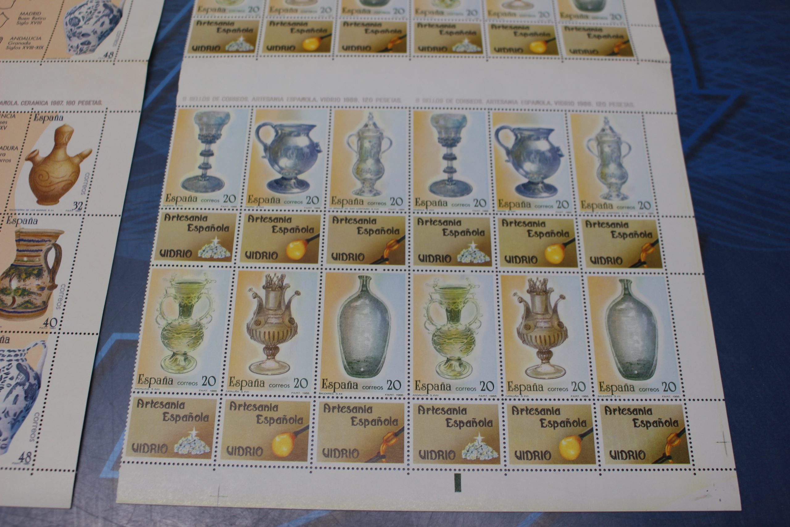 Hojas de sellos Artesanía Española 1987, 1988 (cerámica y vidrio).