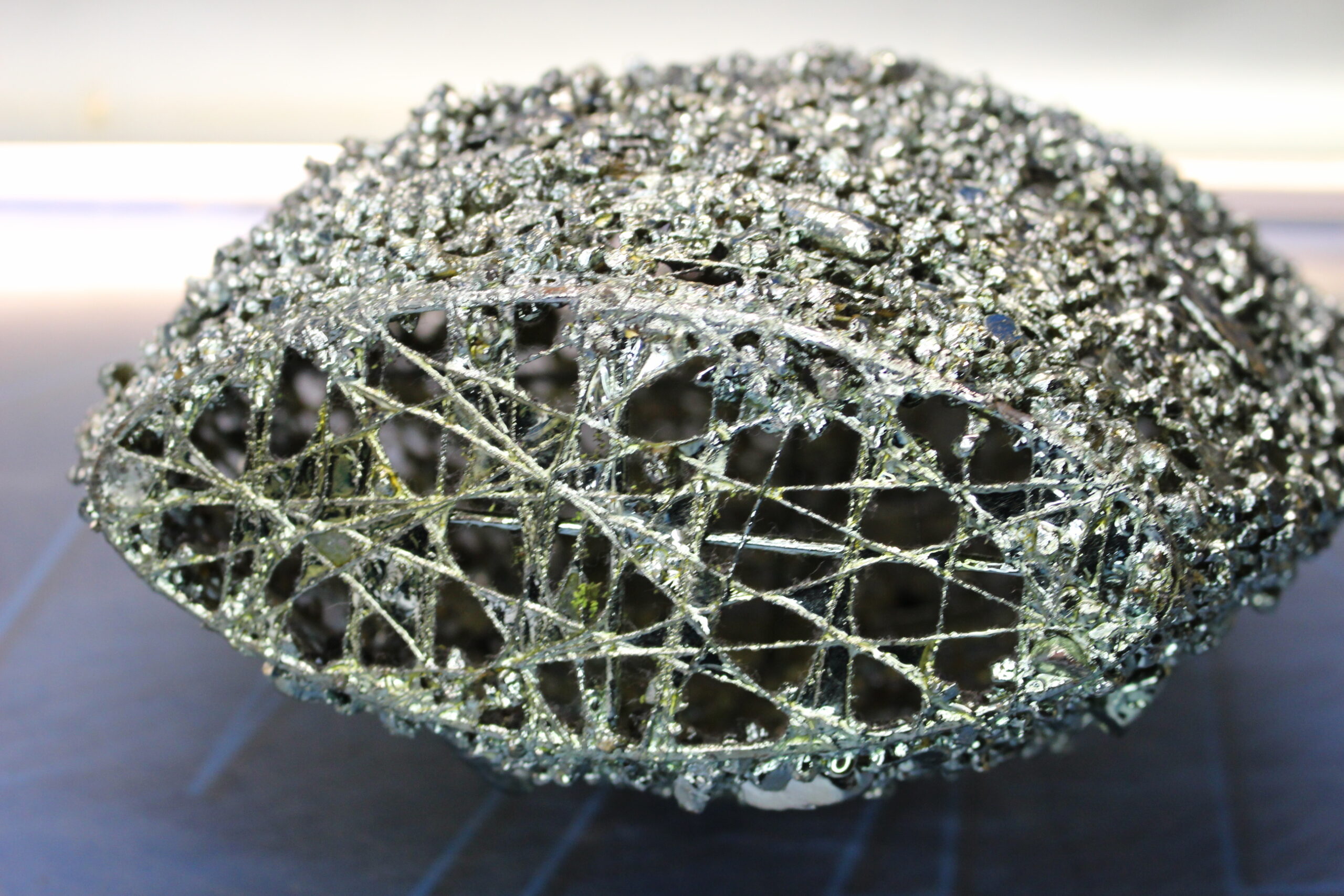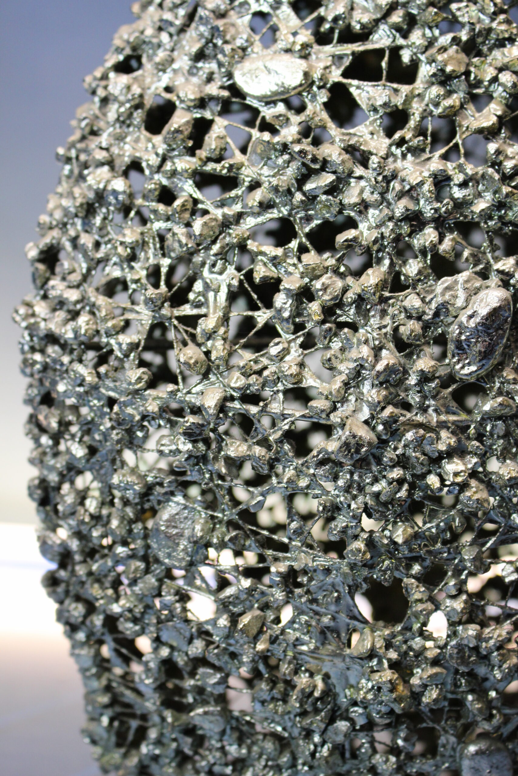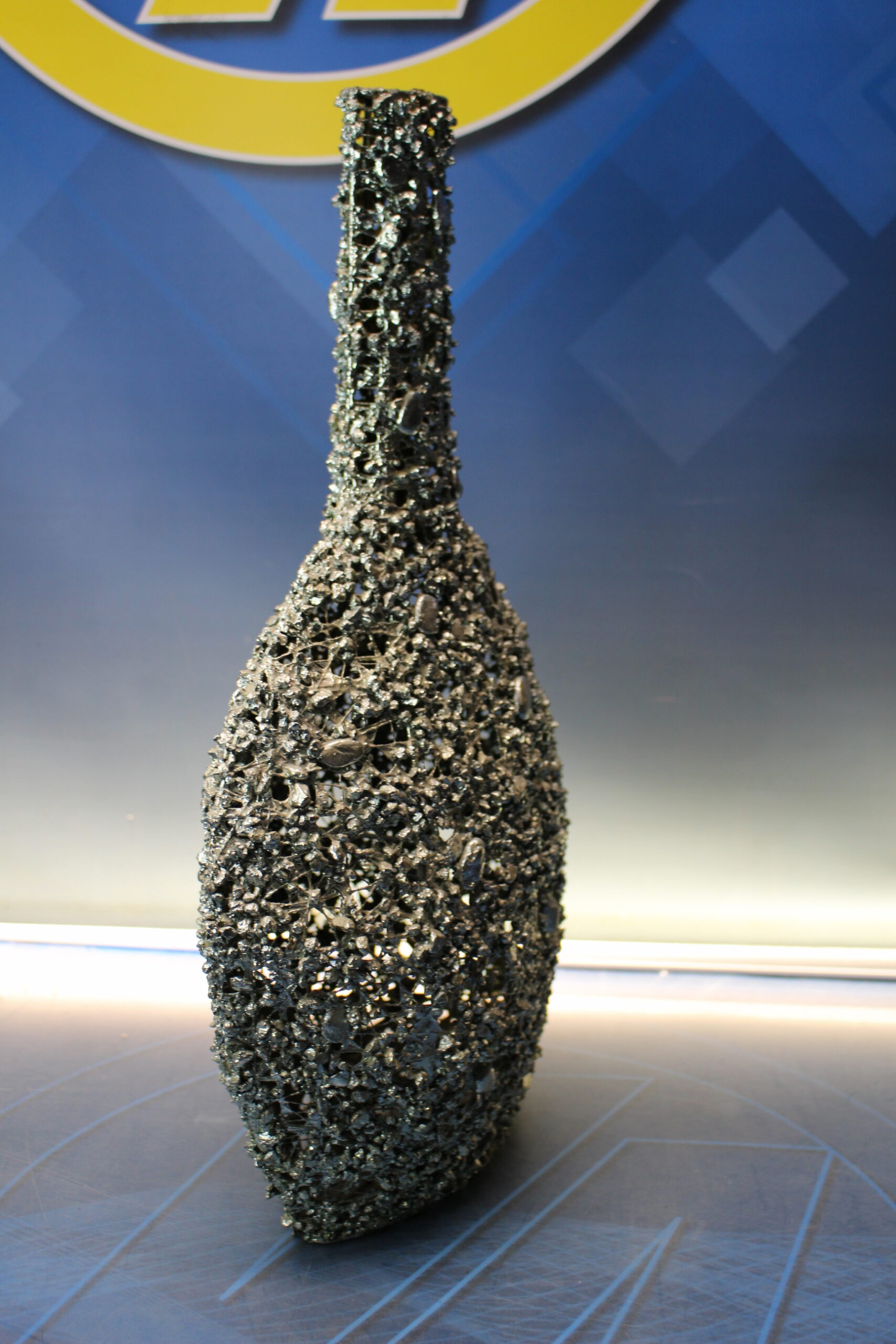 Jarrón escultura. Encaje de metal soldado con piedrecitas.