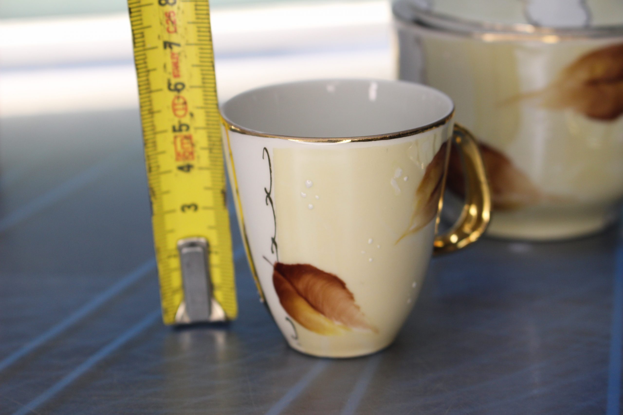 10 tazas, 10 platos, jarra para leche, azucarero y cafetera/tetera.