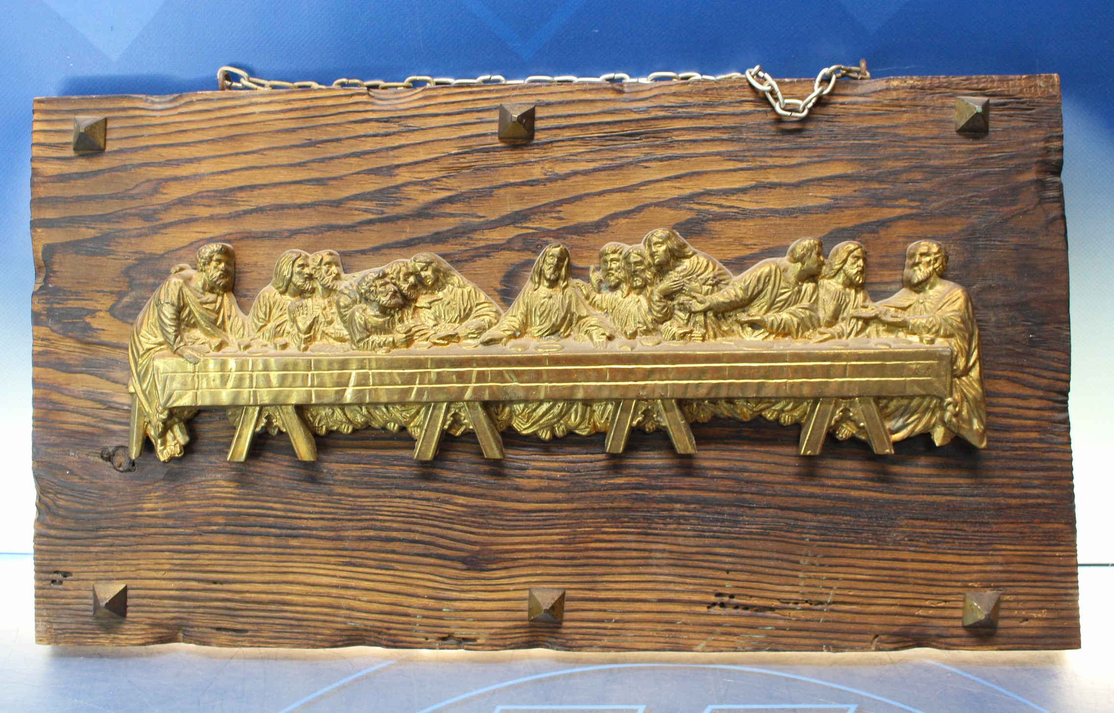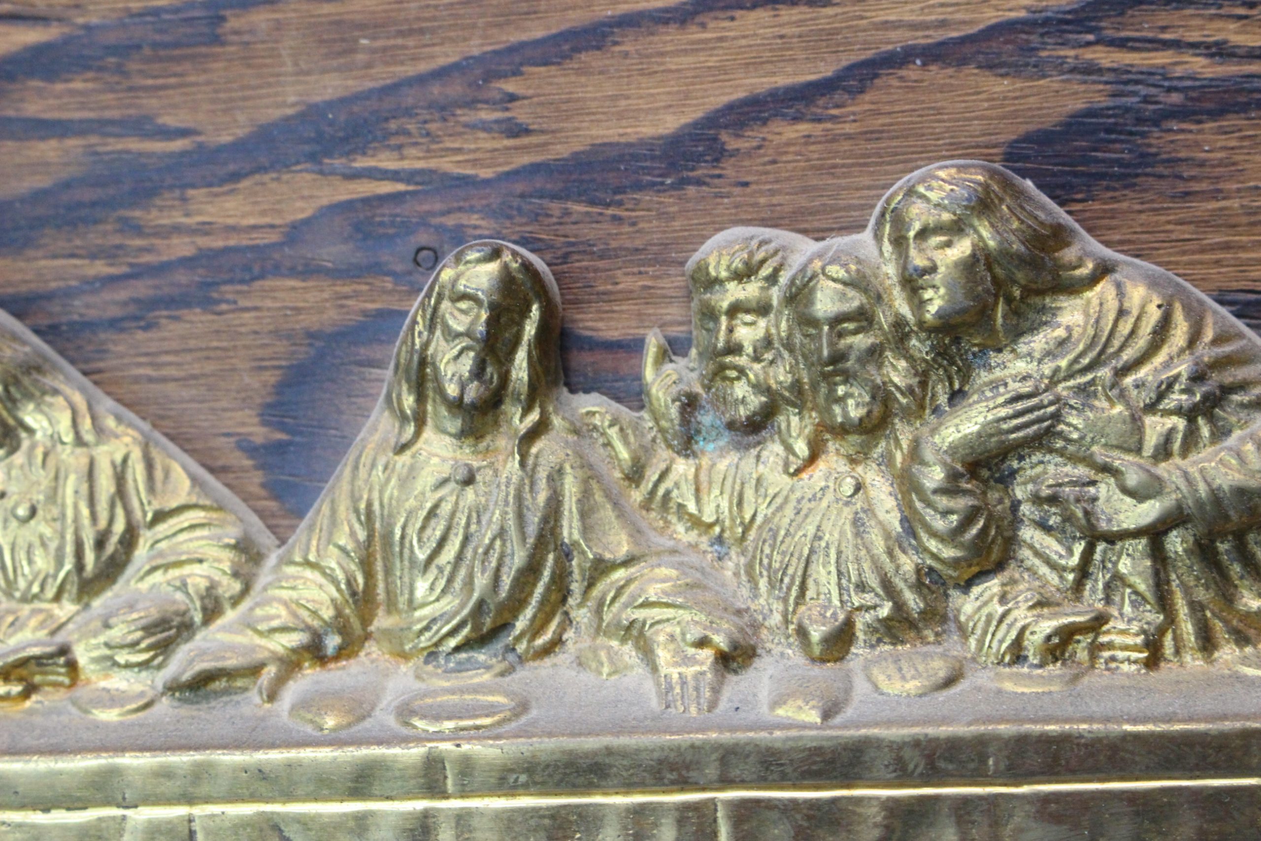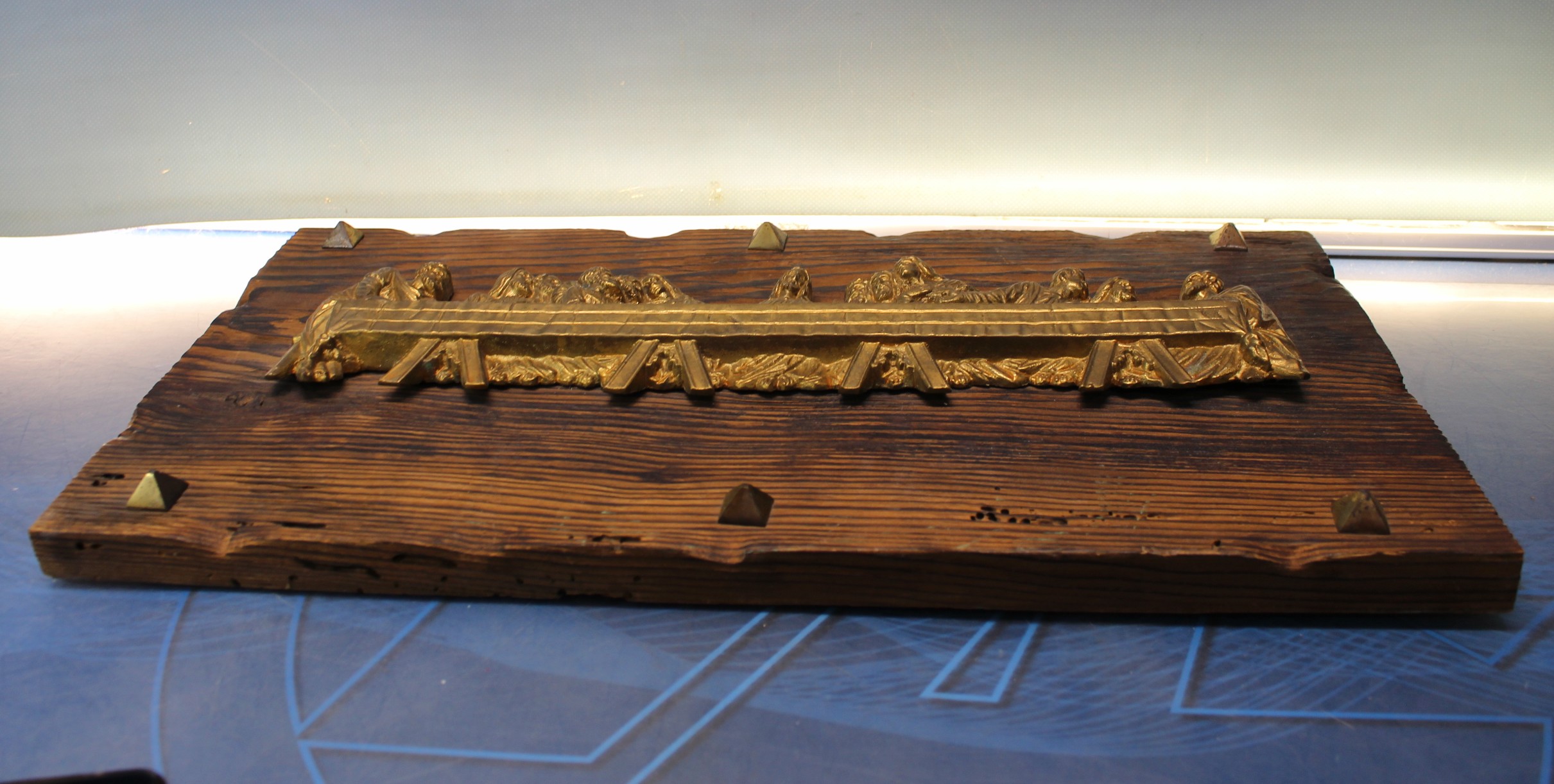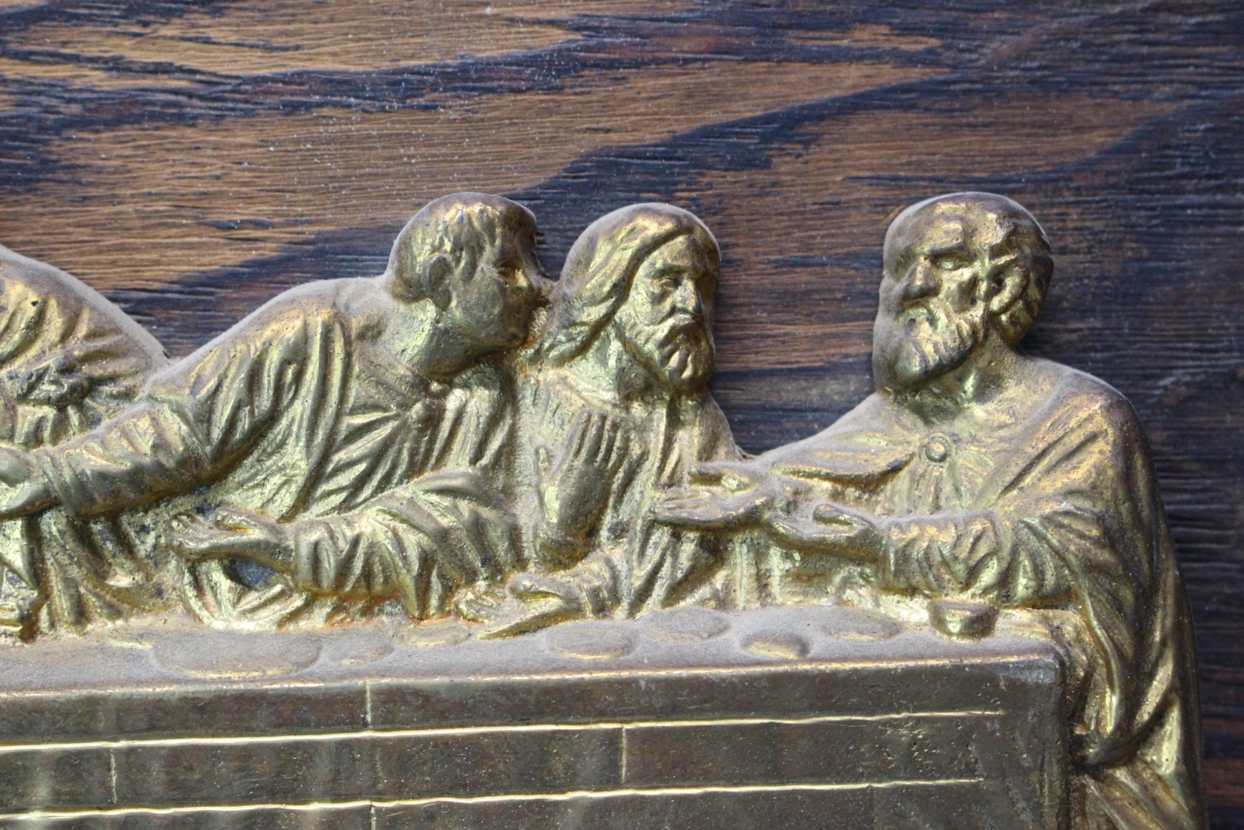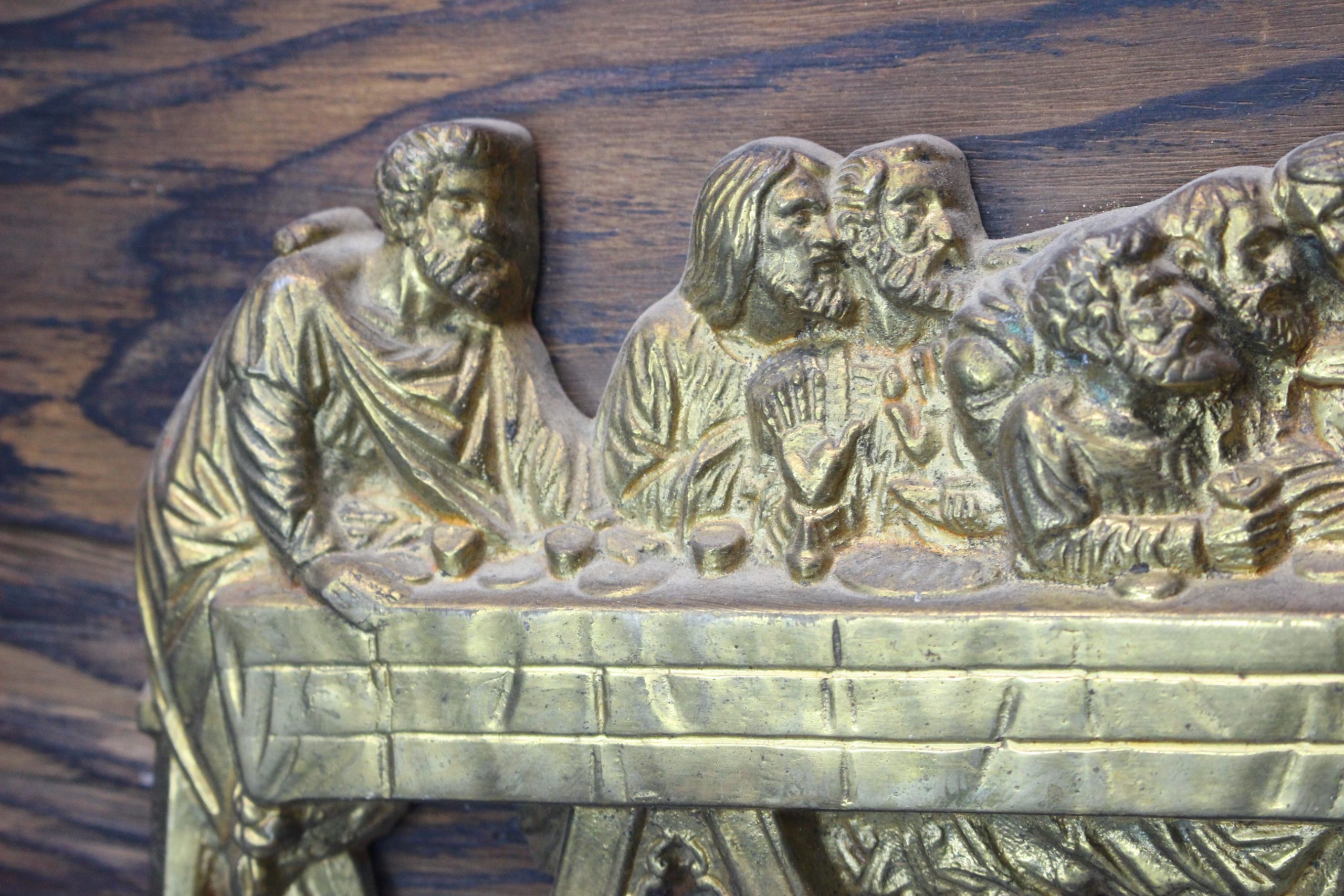 La última cena. Tablón con alto relieve en bronce de la obra de Da Vinci.