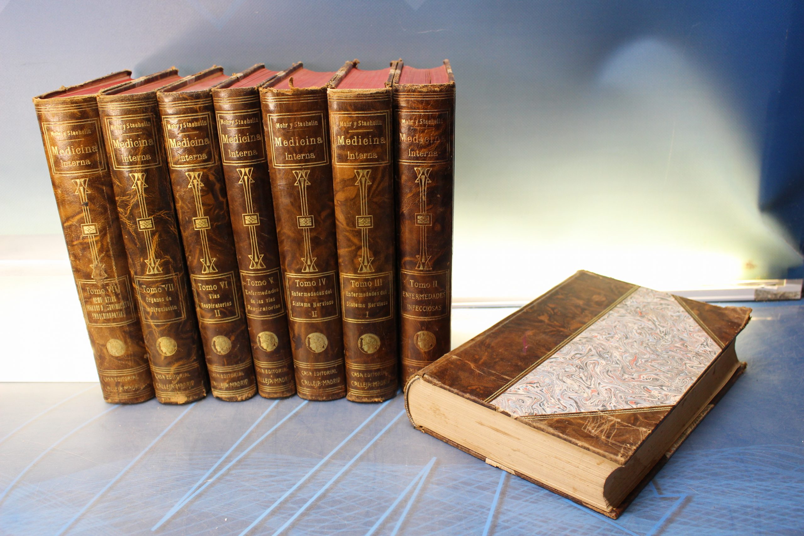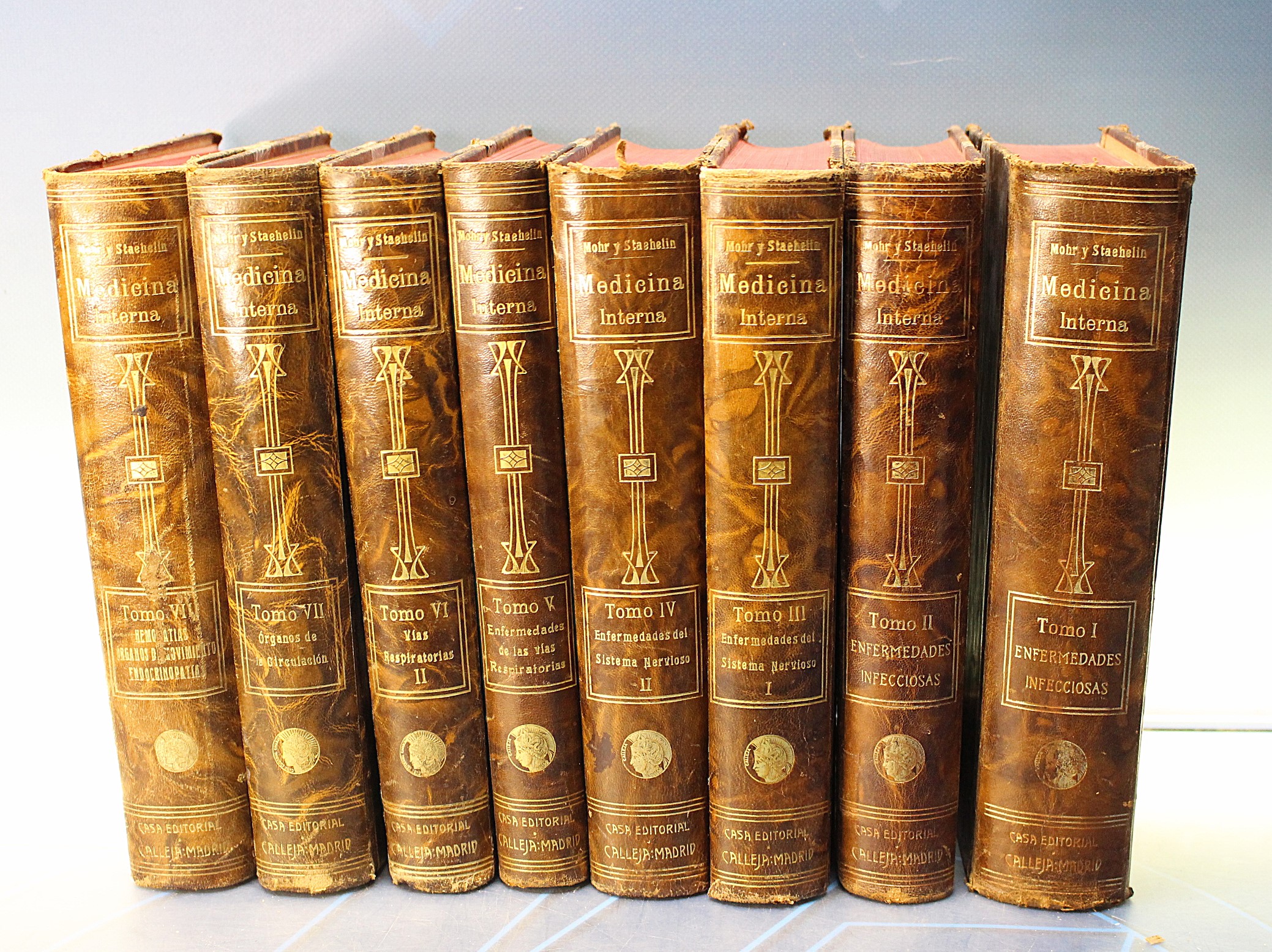 Libro antiguo. Medicina Interna _ Mohr y Staehelin. Tomos I al VIII. Calleja, 1915.