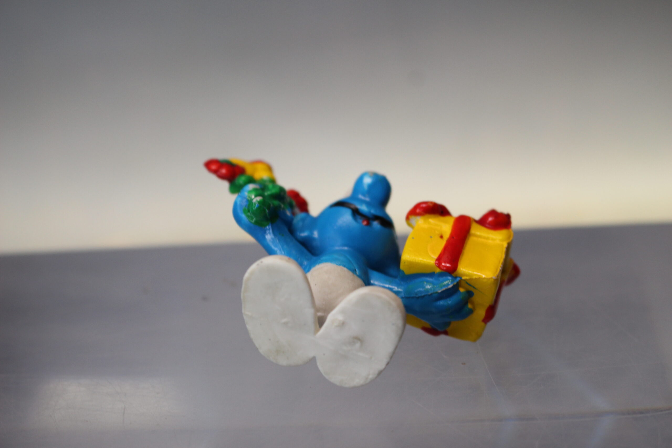 Los Pitufos: Pitufo Regalo. Figura de PVC. Sin marca, bootleg, vintage.