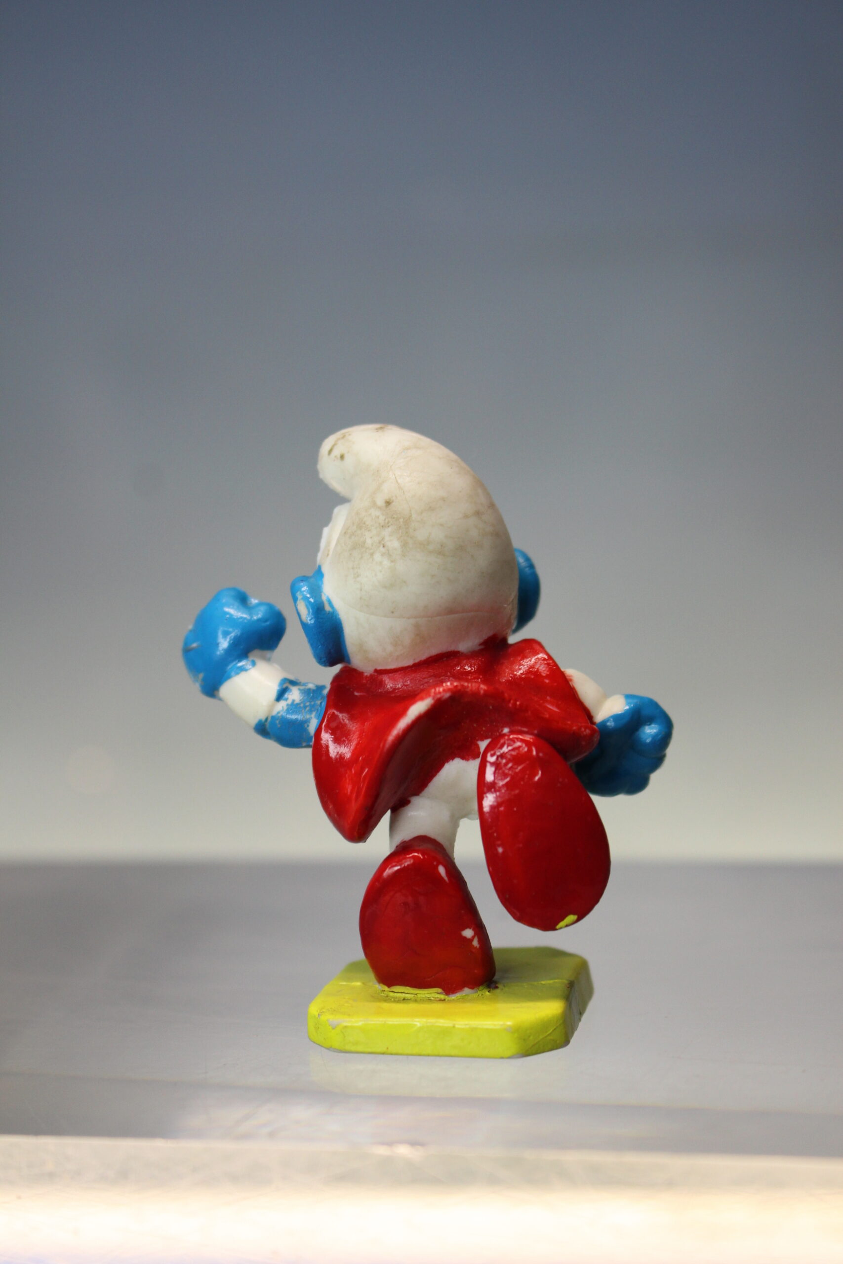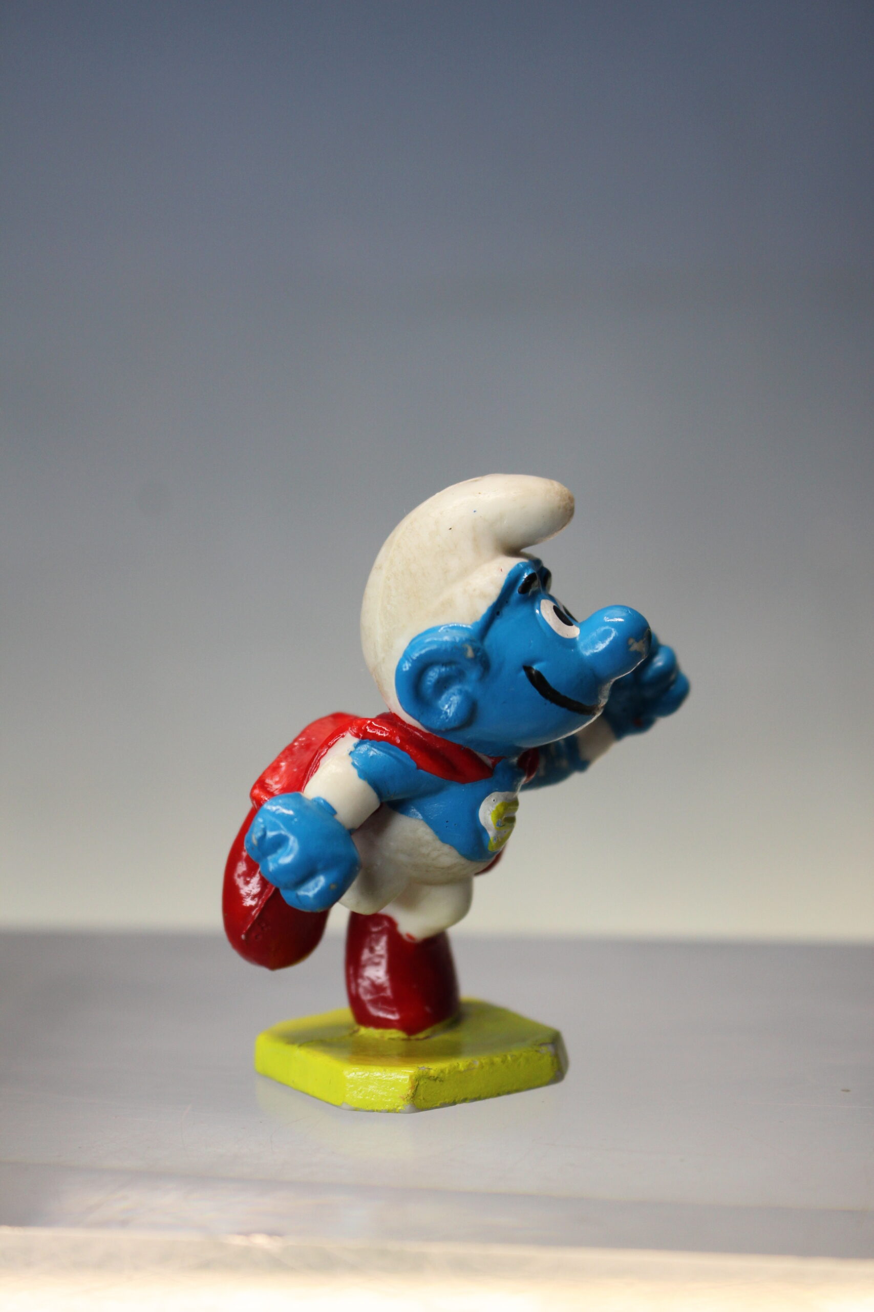 Los Pitufos: SuperPitufo Superman. Figura de PVC. Sin marca, bootleg, vintage.