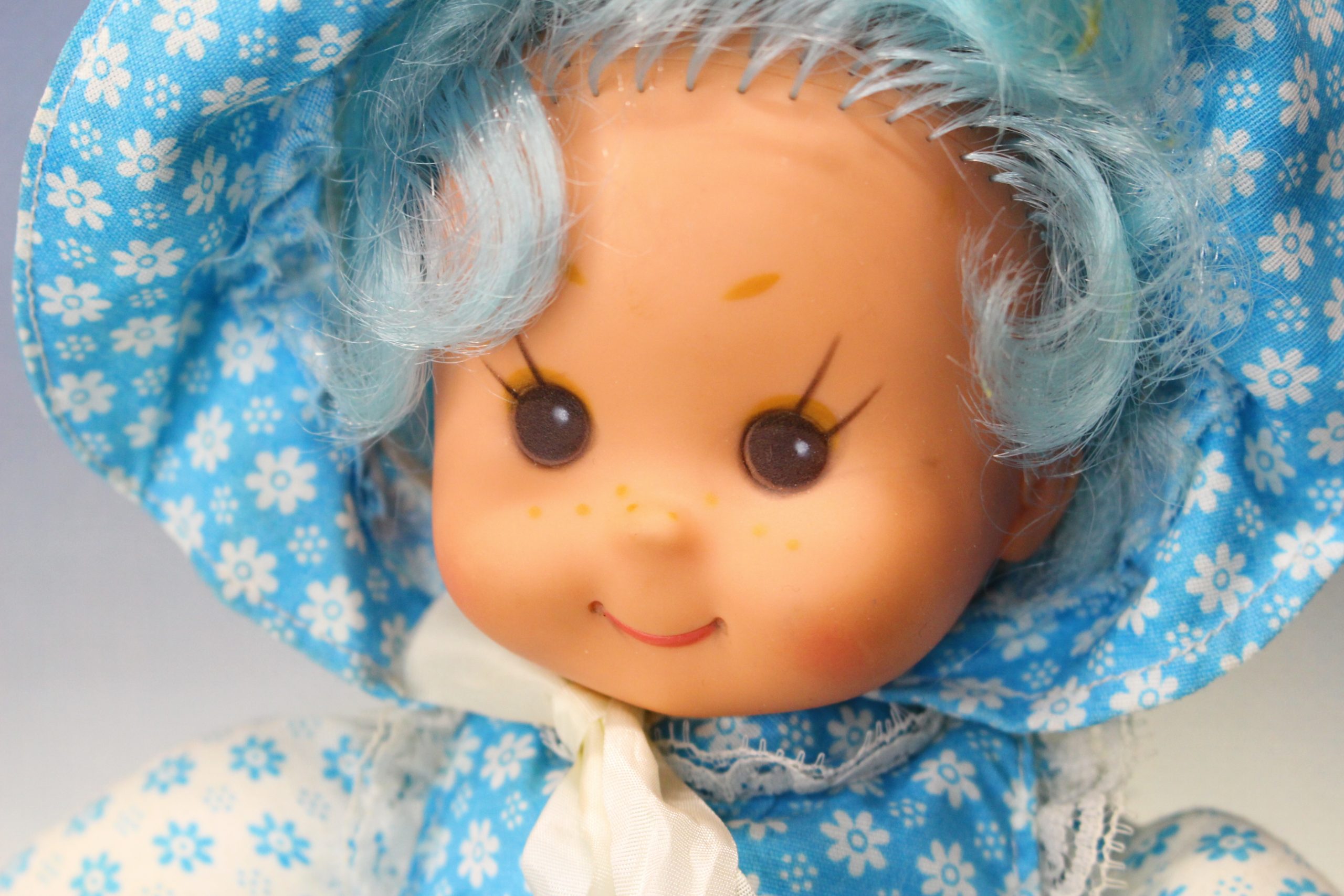 Cuerpo blando, ropa original, 80’s, 25 cm. Rara, parecida a Baby Azul de Famosa.