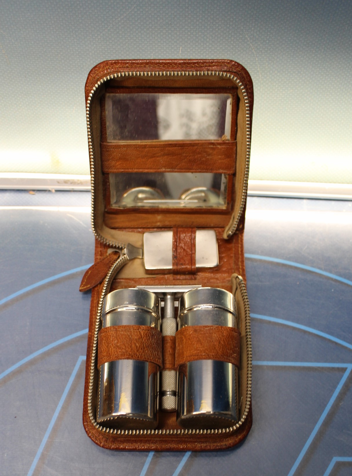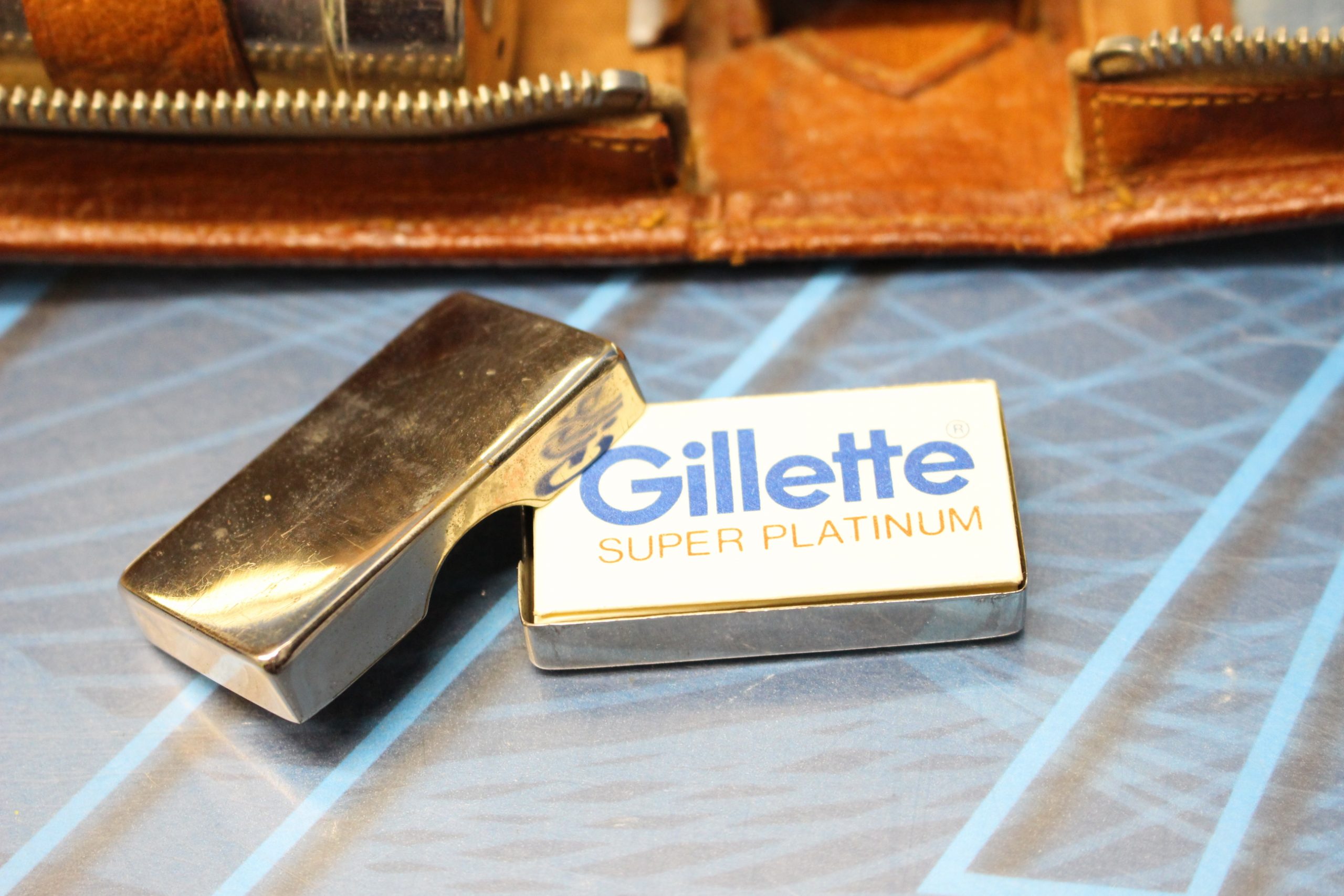 Neceser de cuero años 60. Cuchillas Gillette, maquinilla beter.
