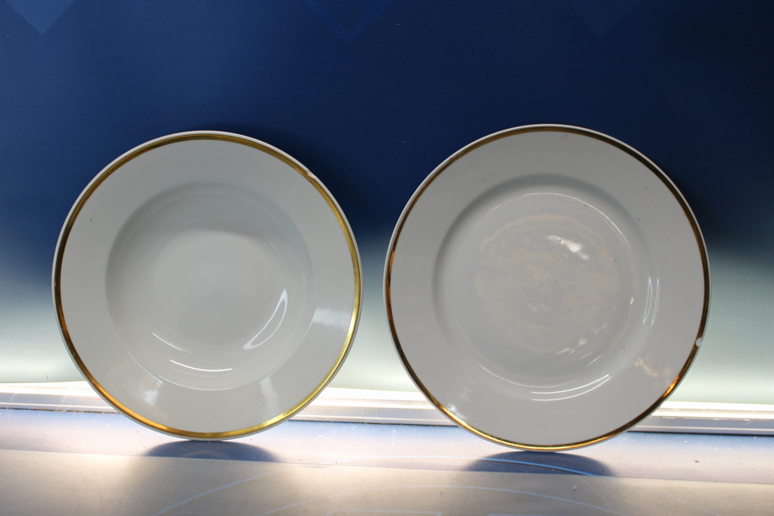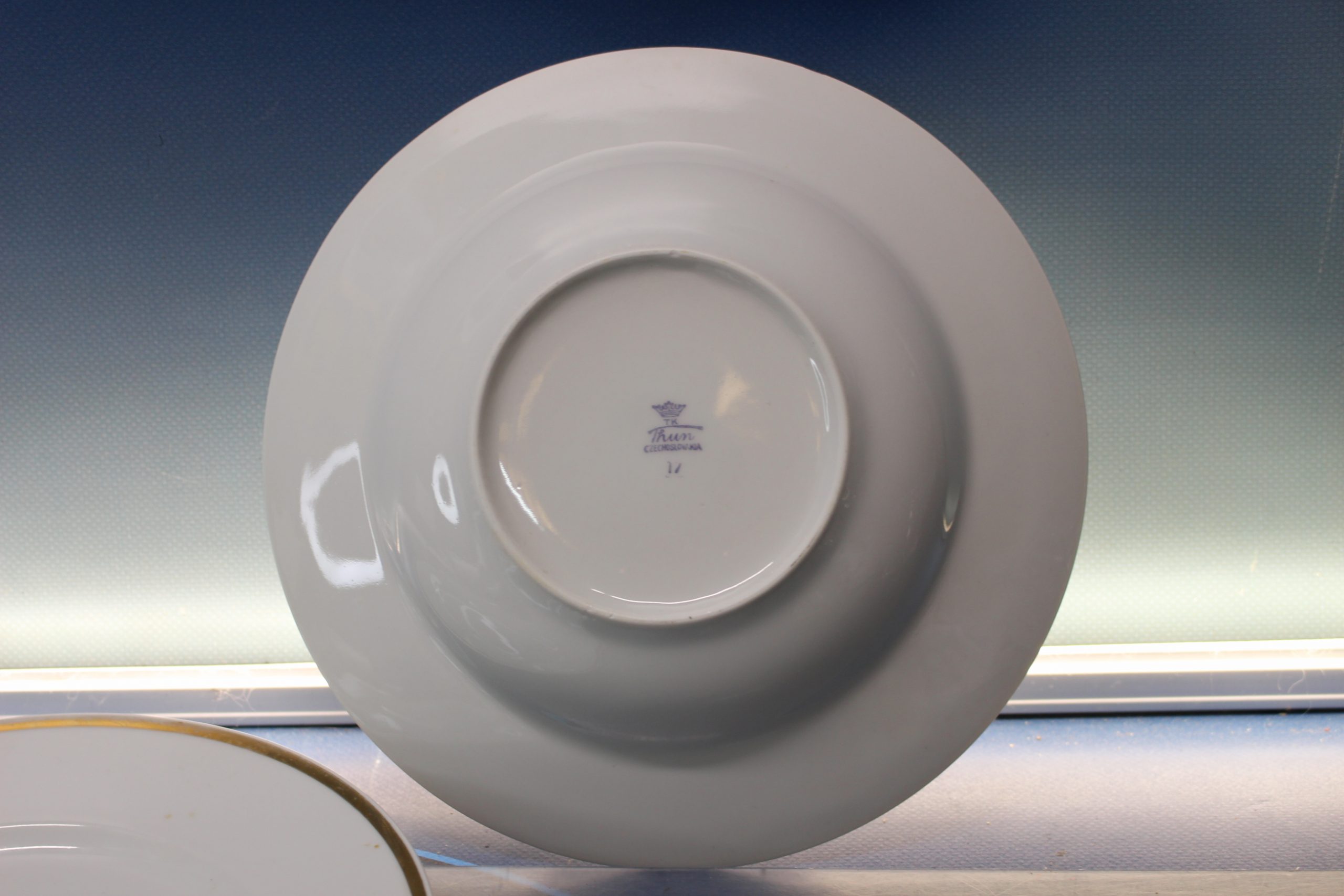 Plato llano y hondo Thun, República Checa. Blanco y oro.