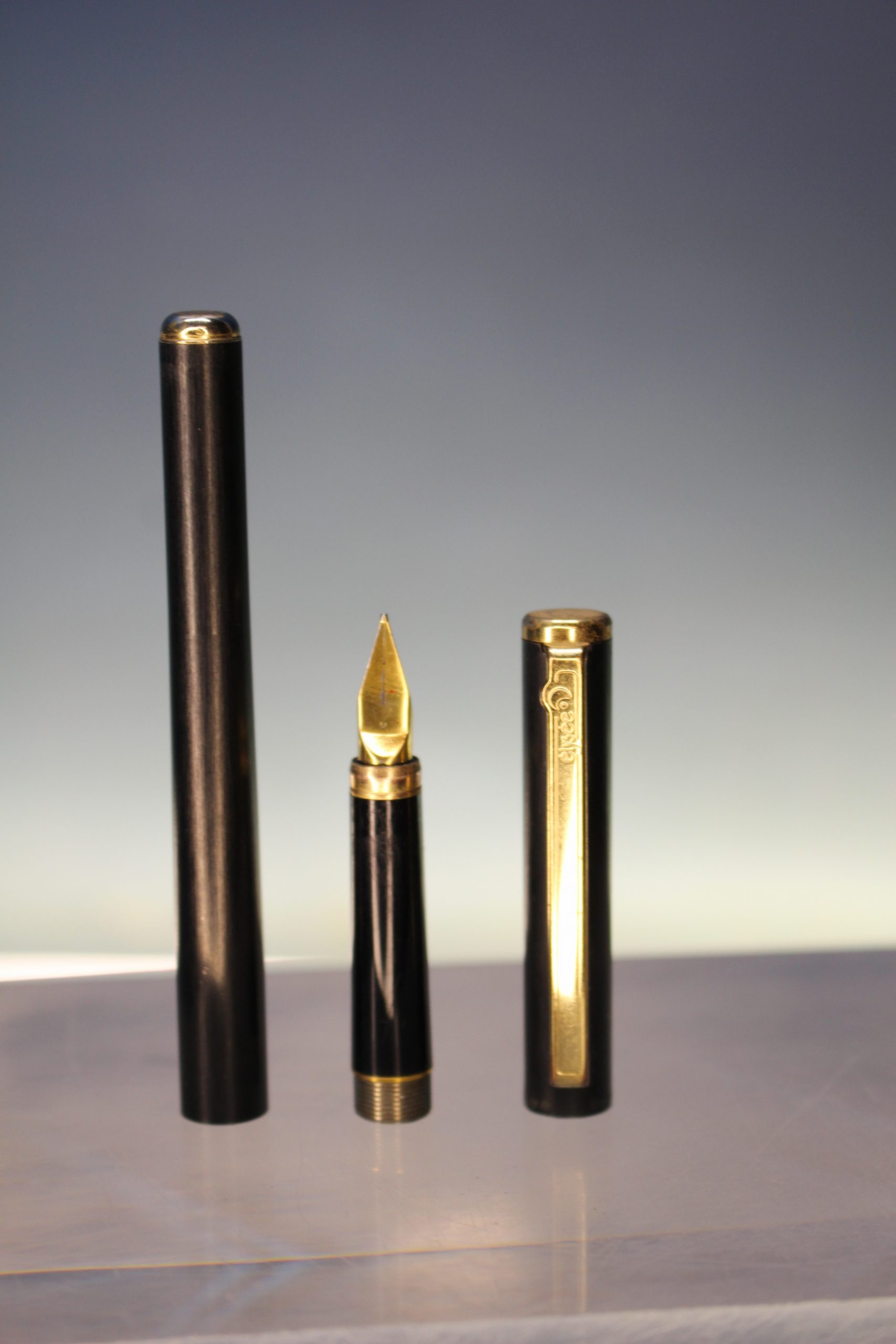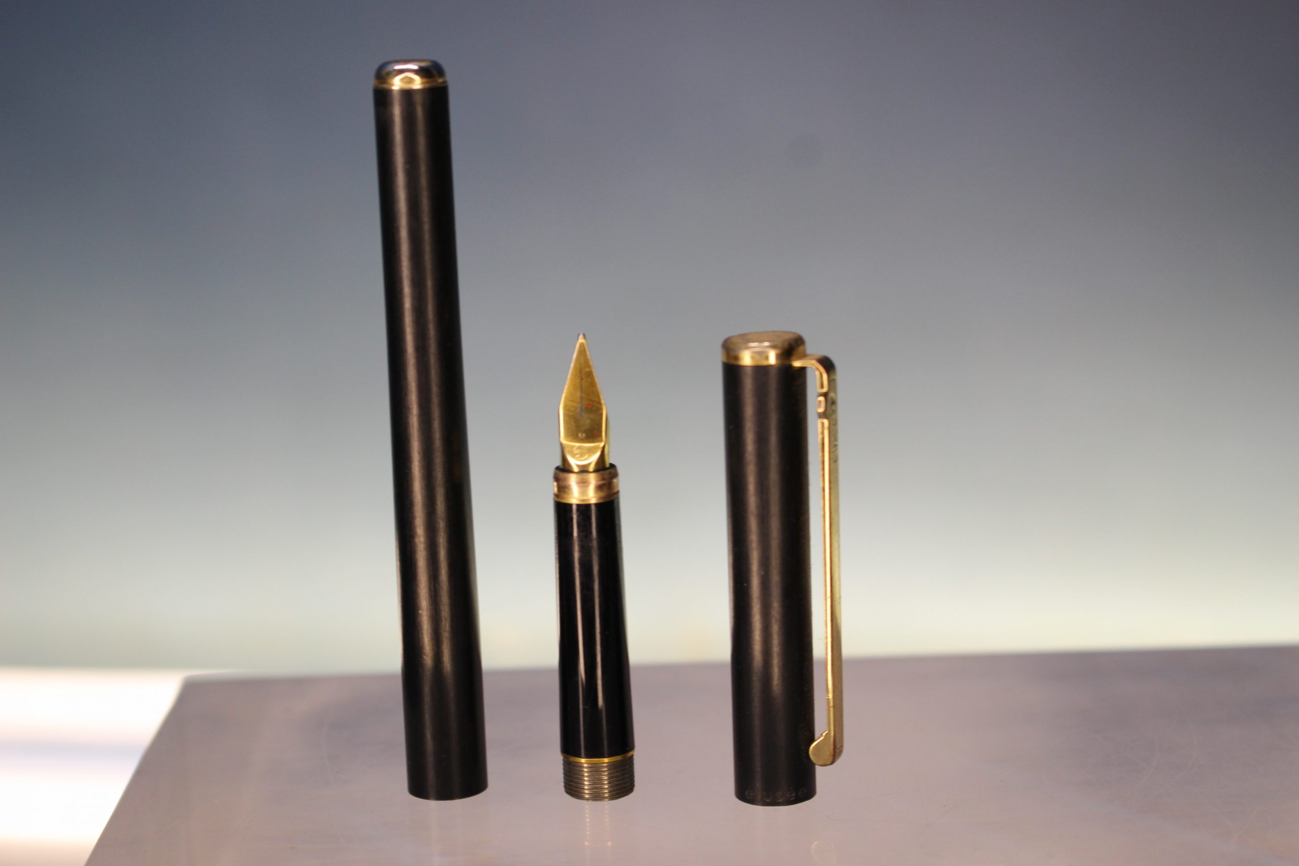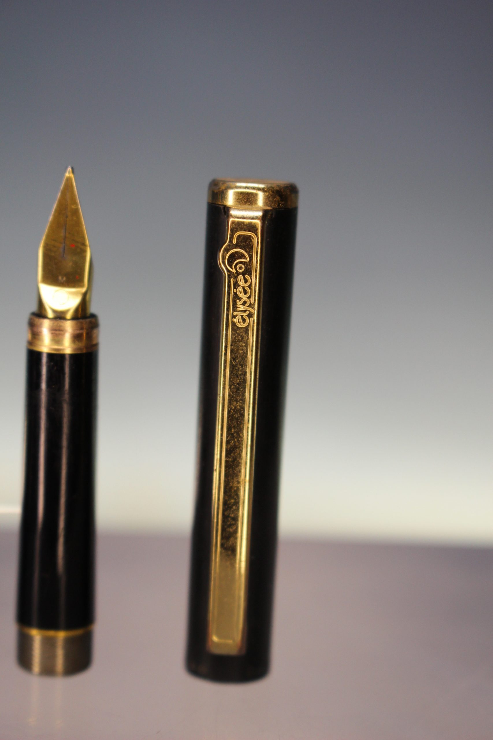 Pluma estilográfica Elysee, Alemania. Negro y oro.
