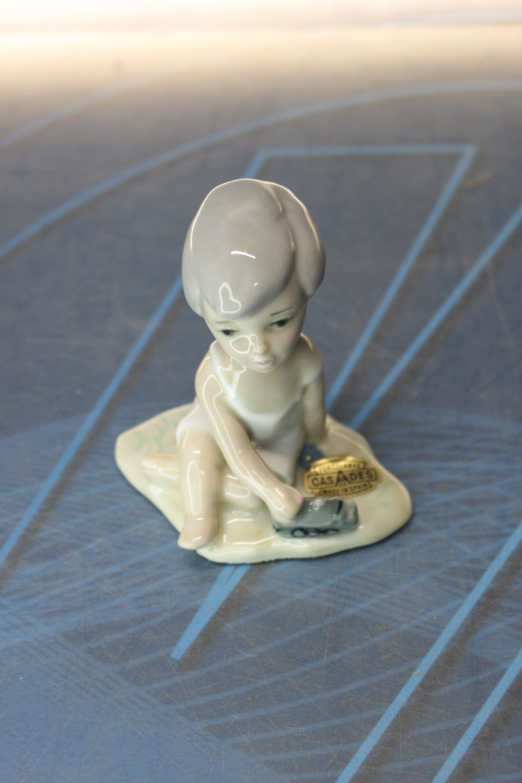 Porcelana Casades: Figura de bebé con tren. Vintage.