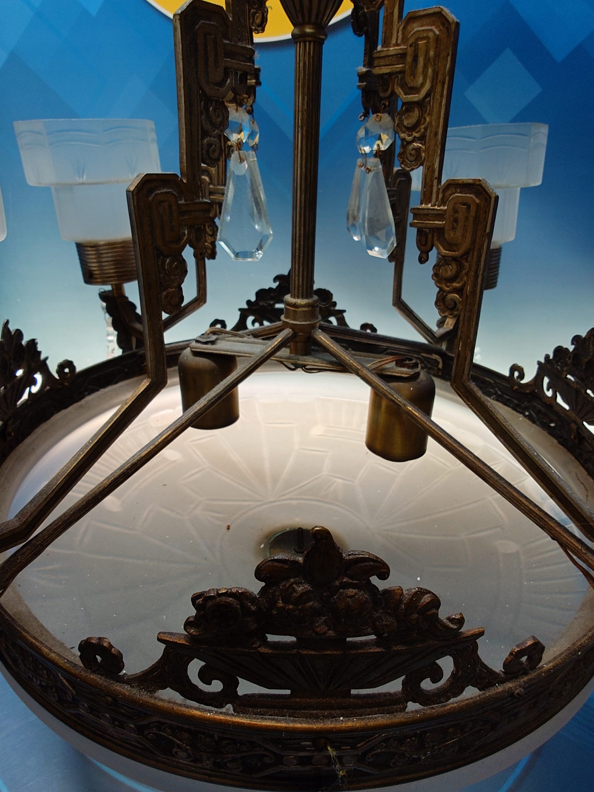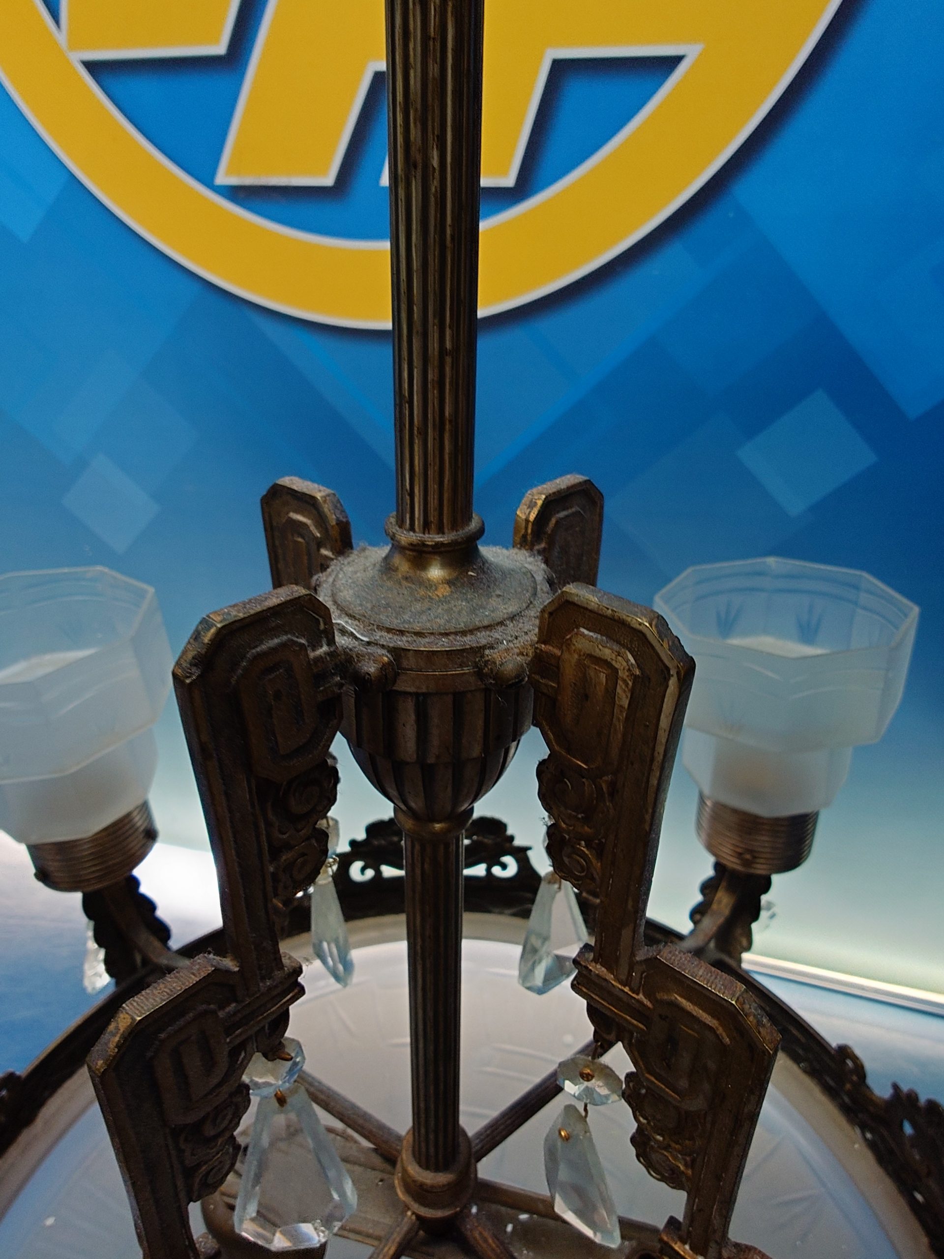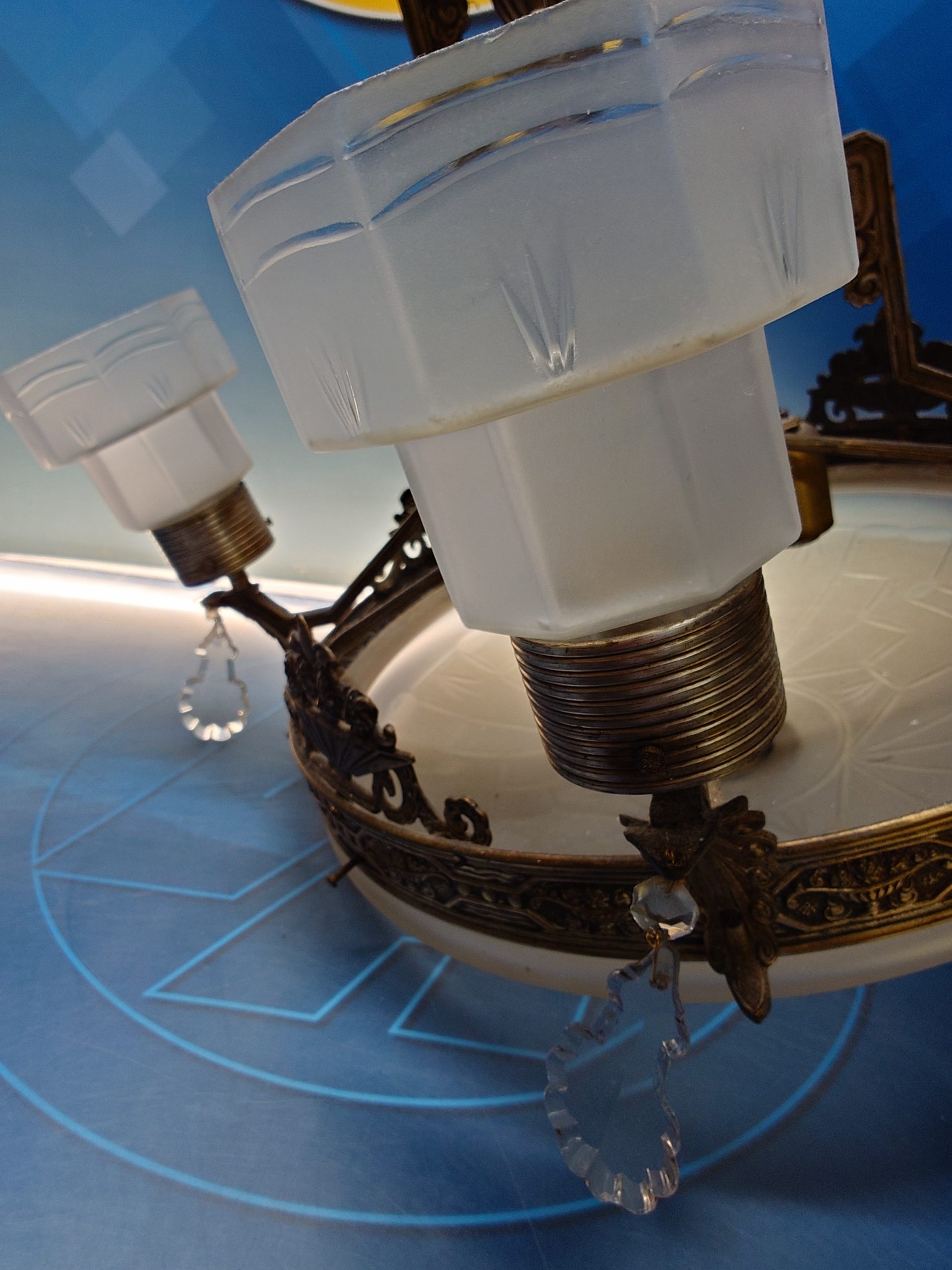 Lámpara Art Decó de cristal y bronce de los años 30 aproximadamente