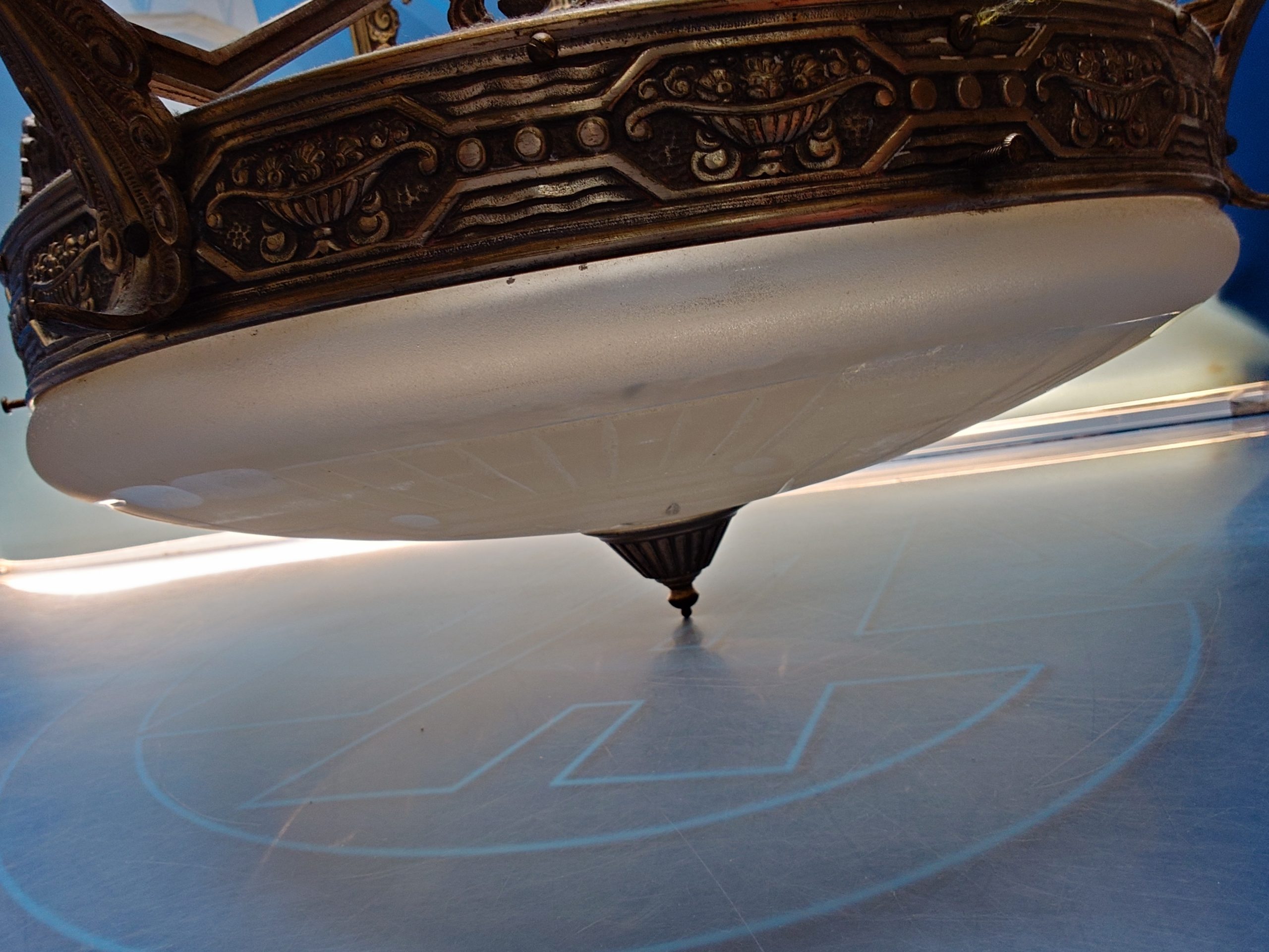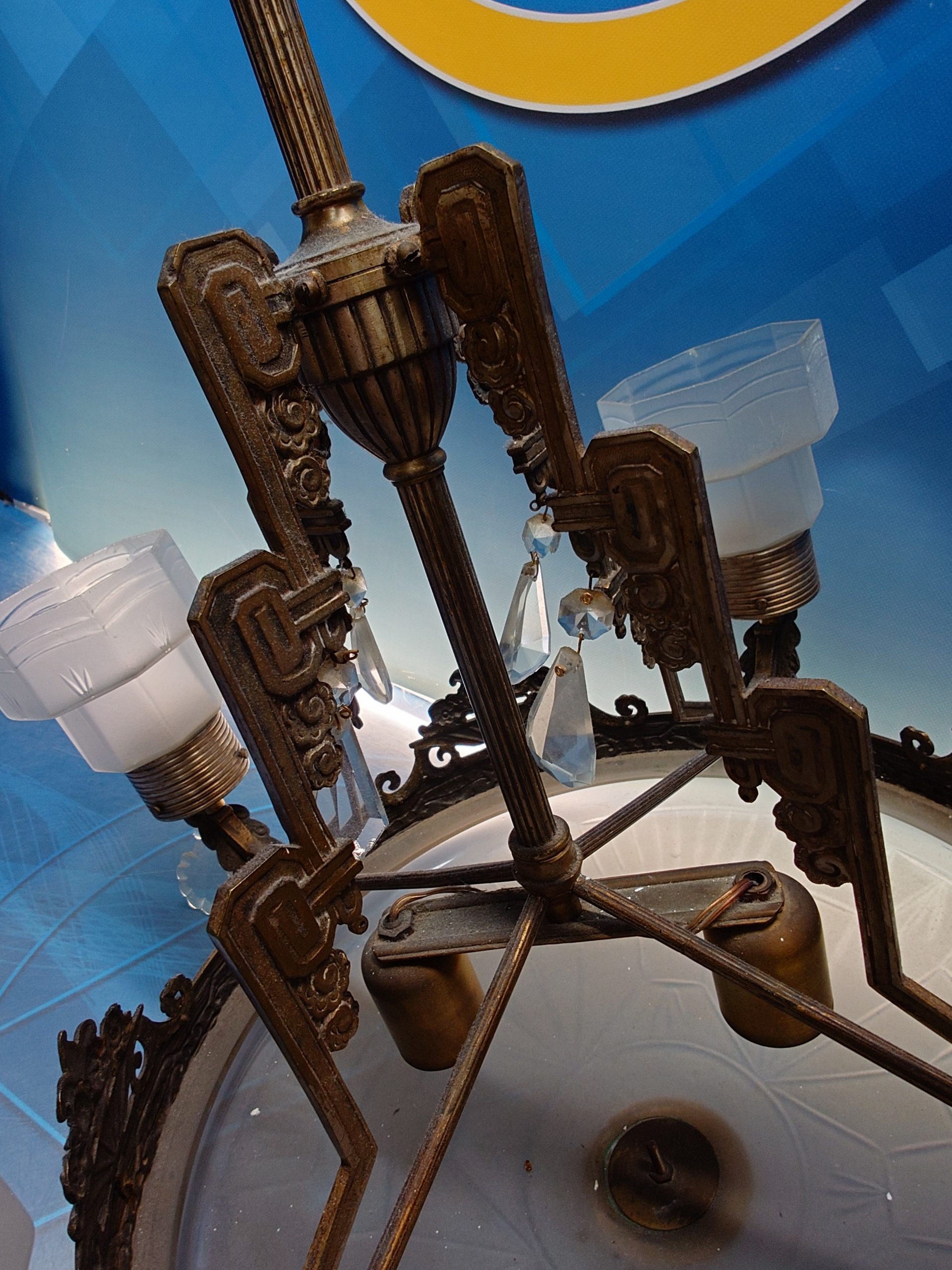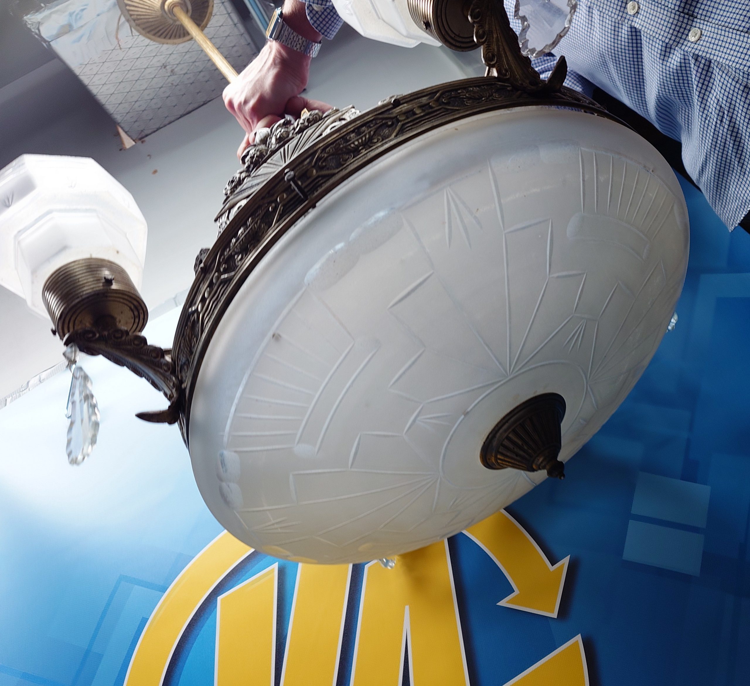 Lámpara Art Decó de cristal y bronce de los años 30 aproximadamente