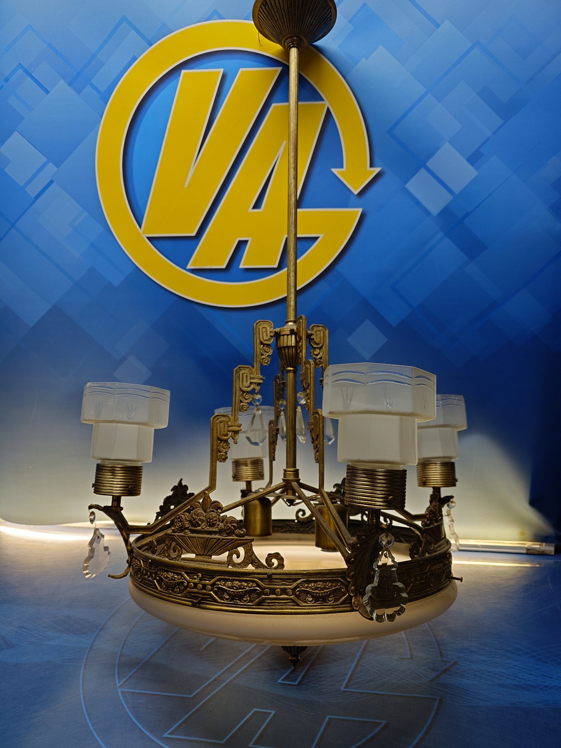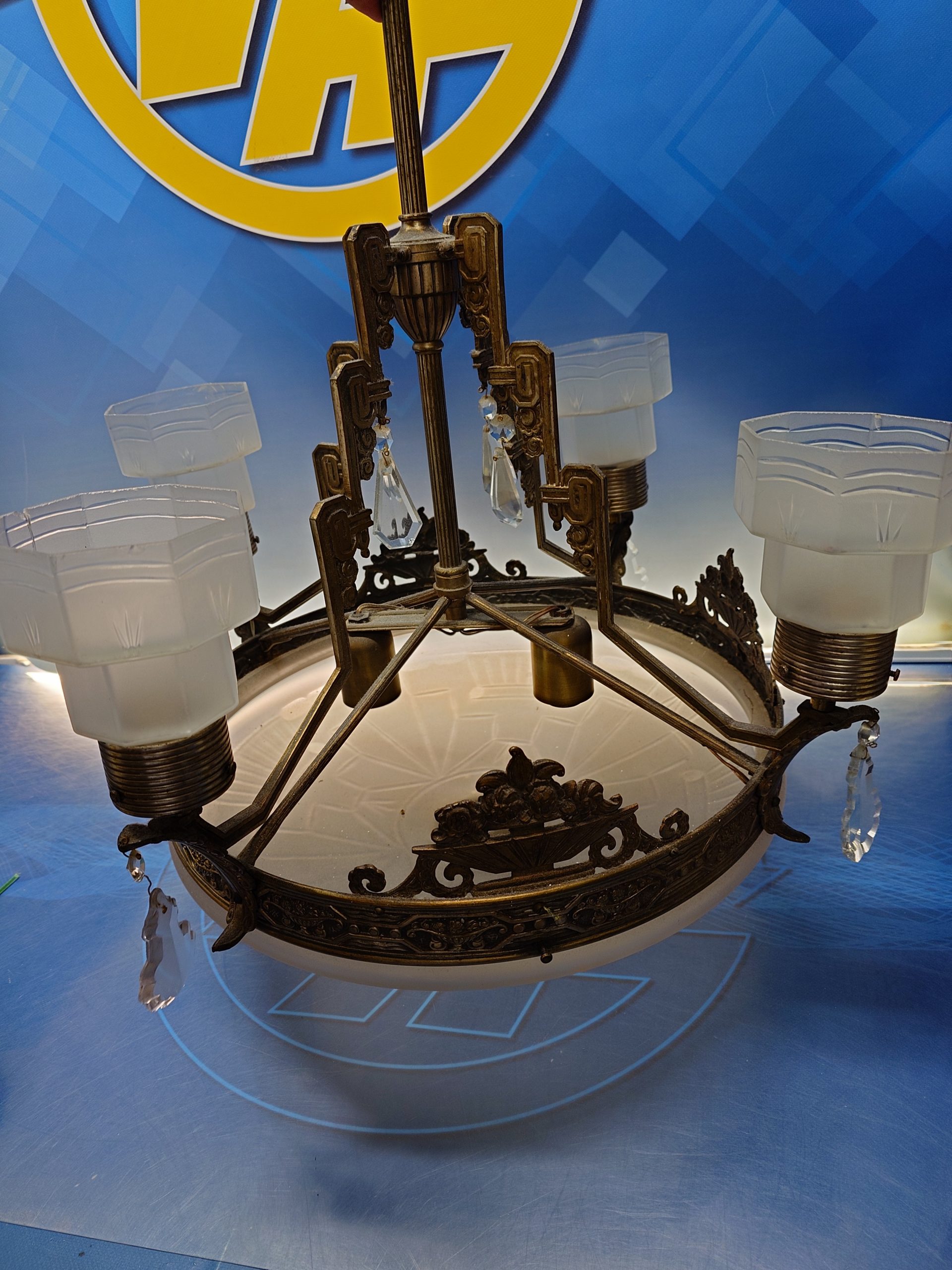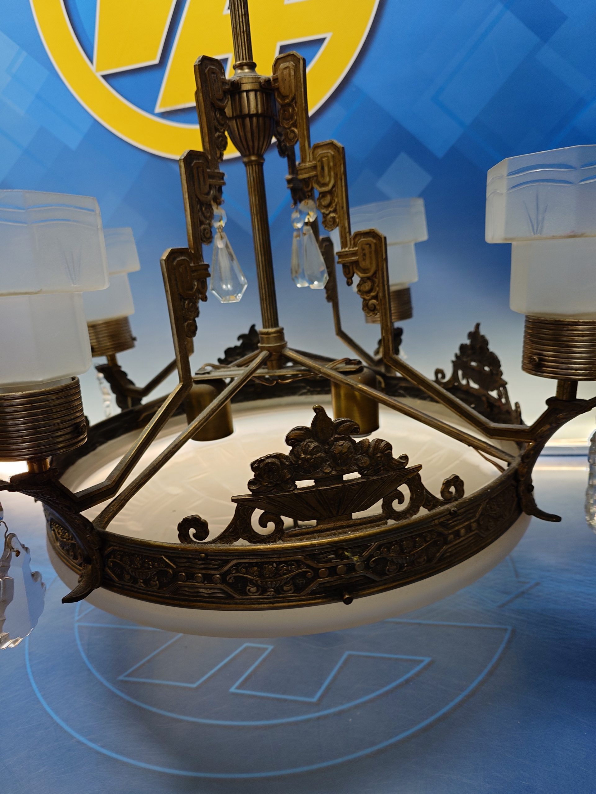 Preciosa LÁMPARA ART-DECÓ EN BRONCE Y CRISTAL 60 cm. diametro x 105 cm. de altura