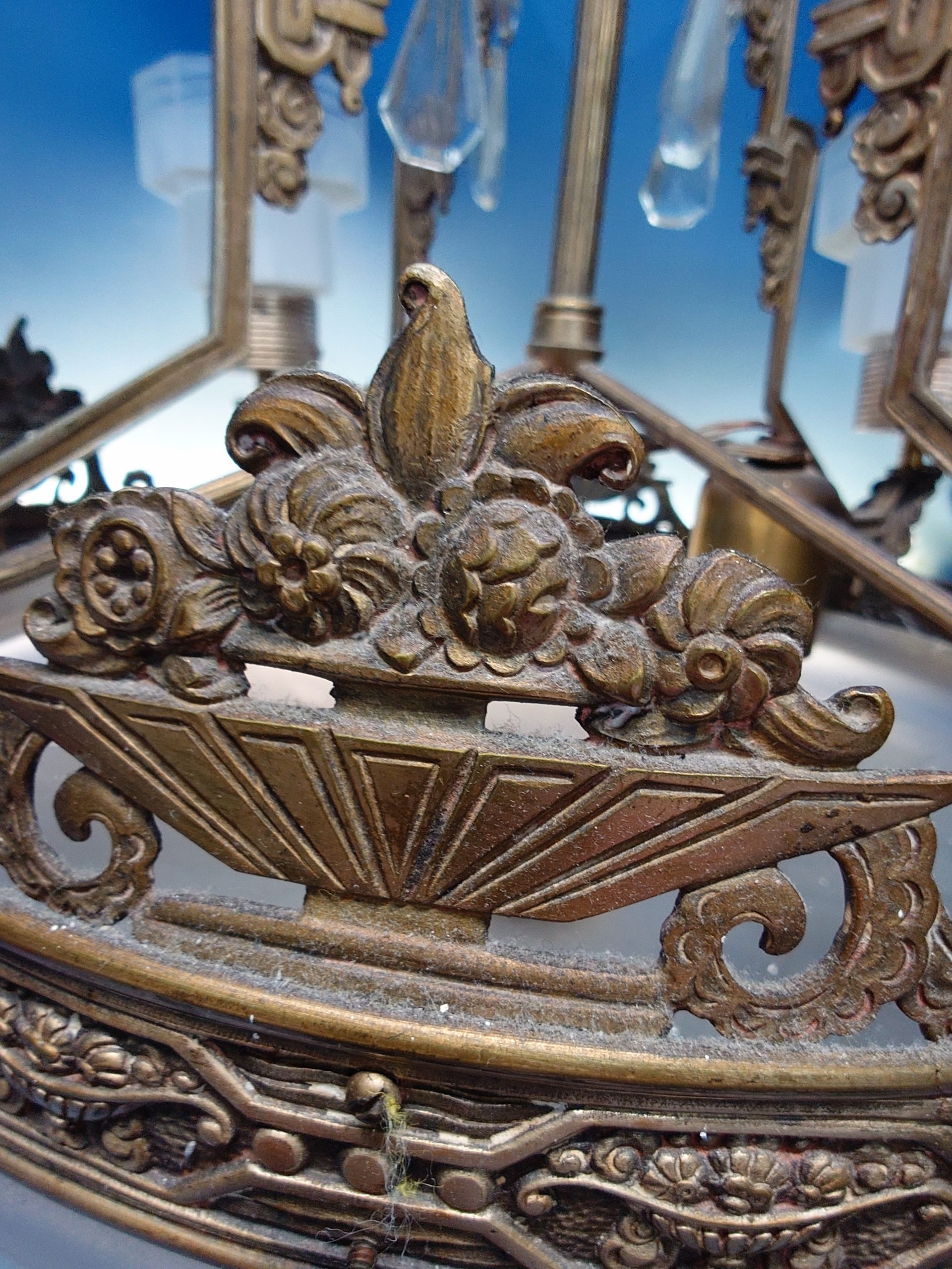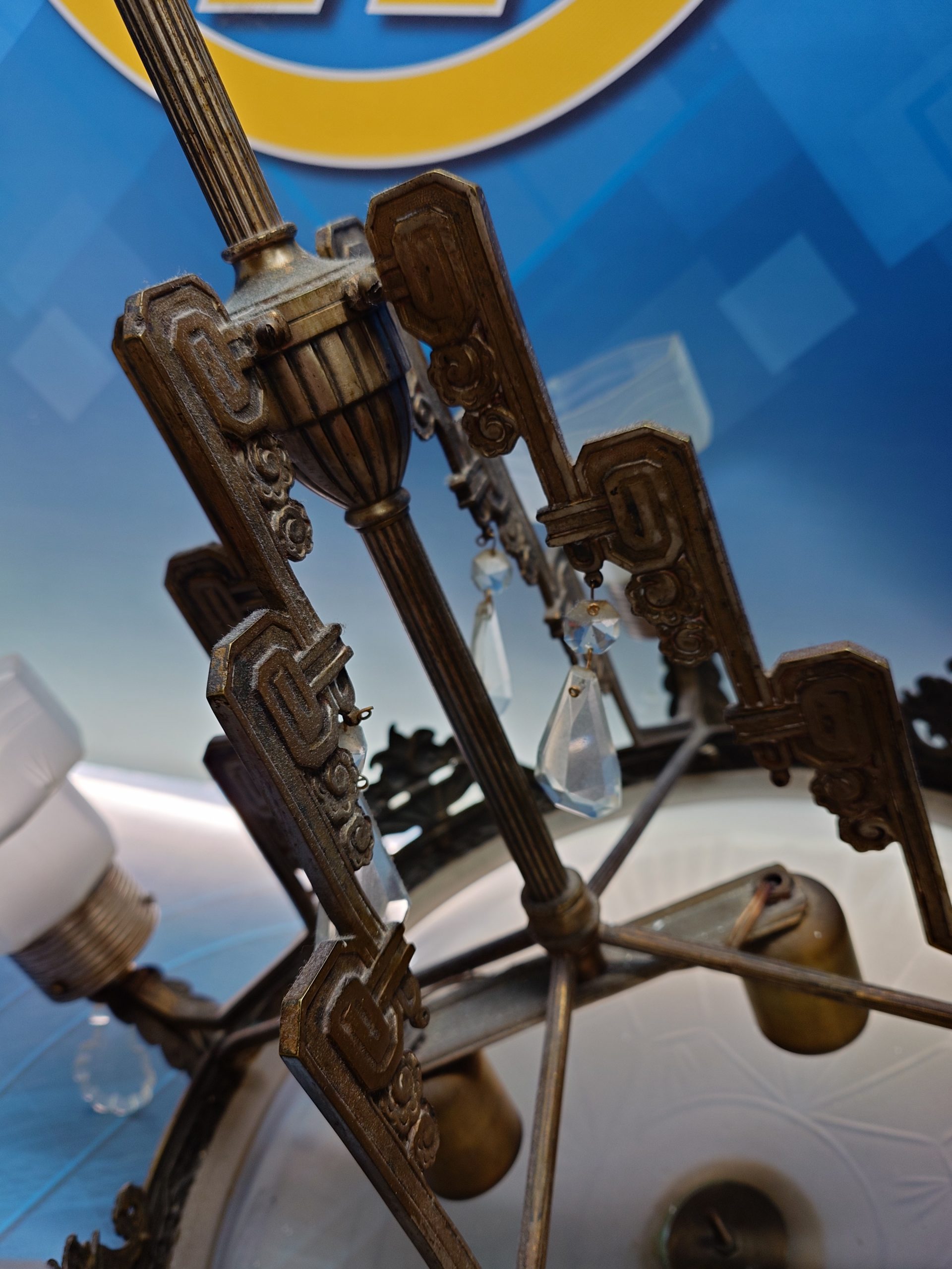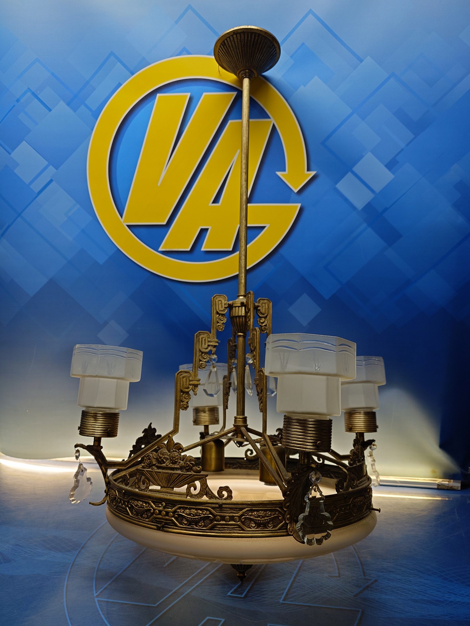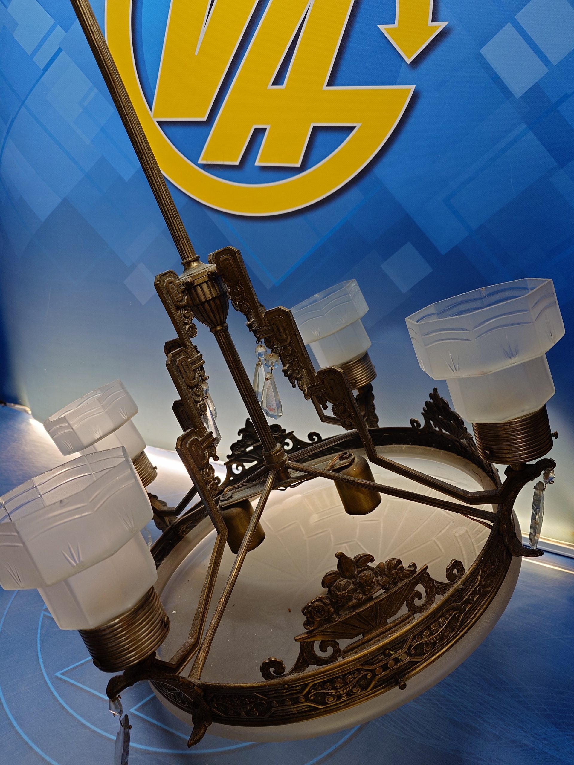 Preciosa LÁMPARA ART-DECÓ EN BRONCE Y CRISTAL 60 cm. diametro x 105 cm. de altura